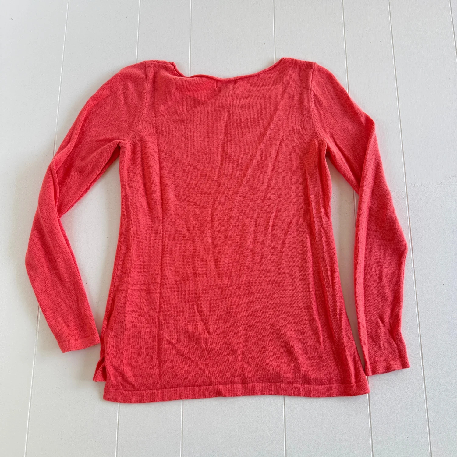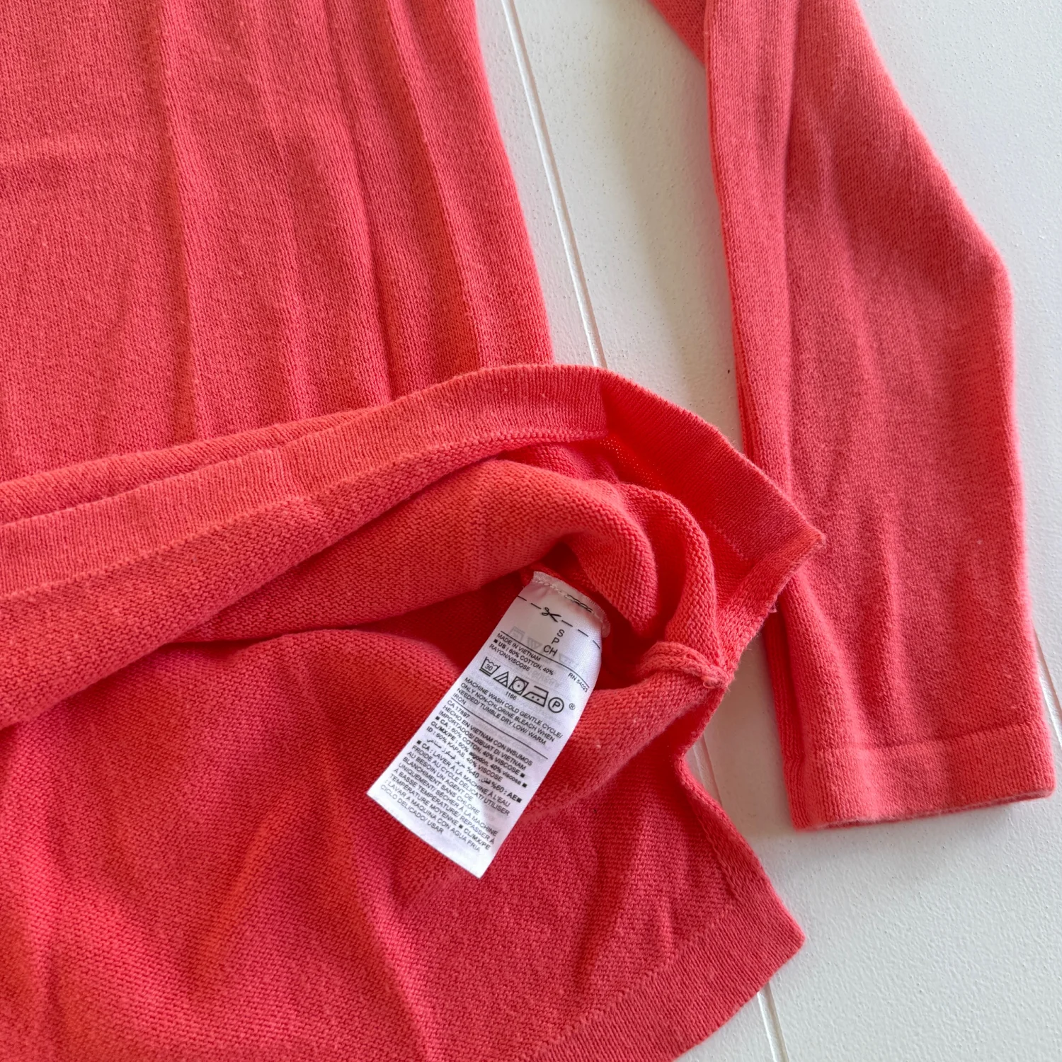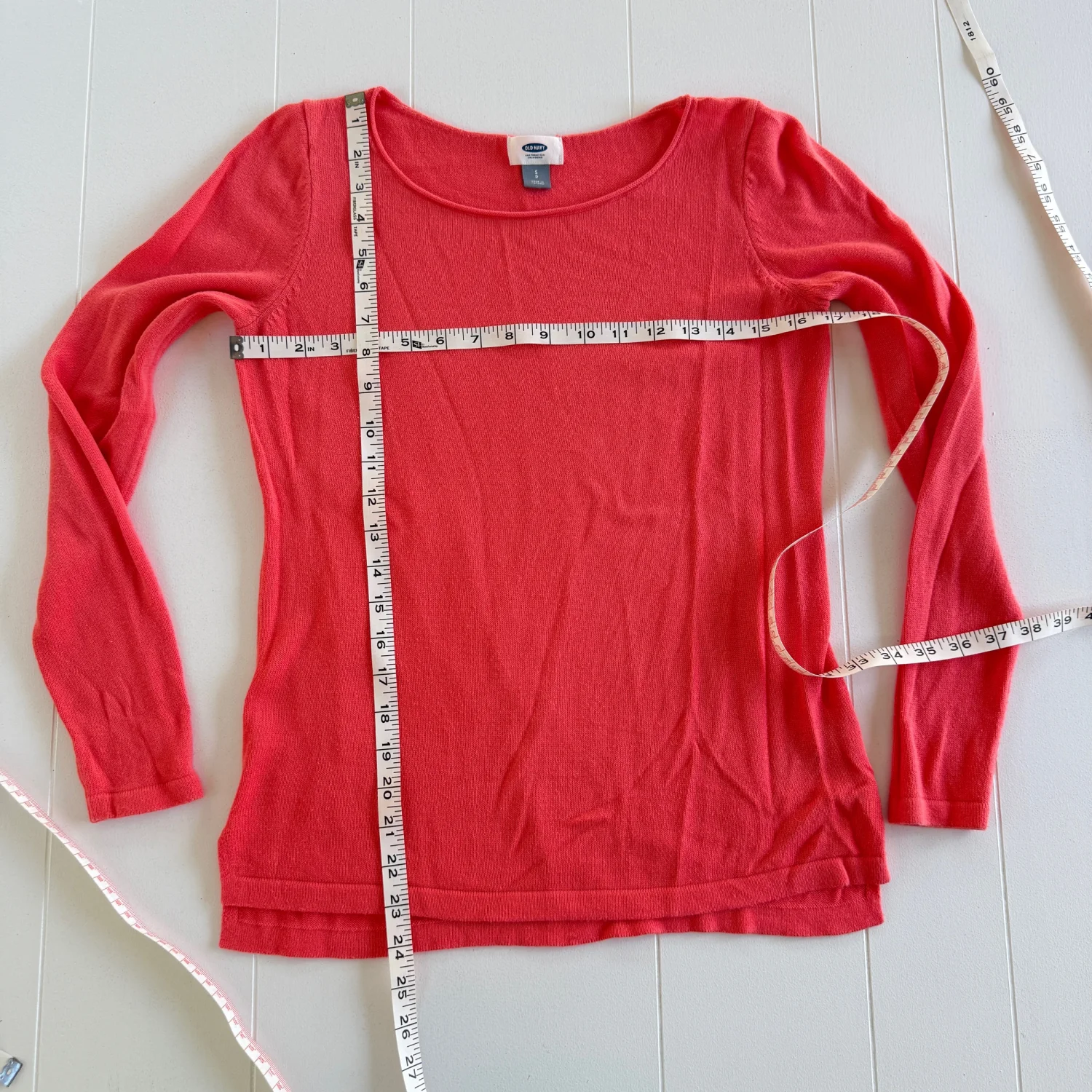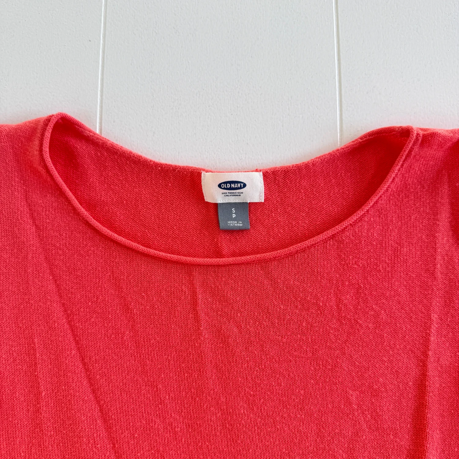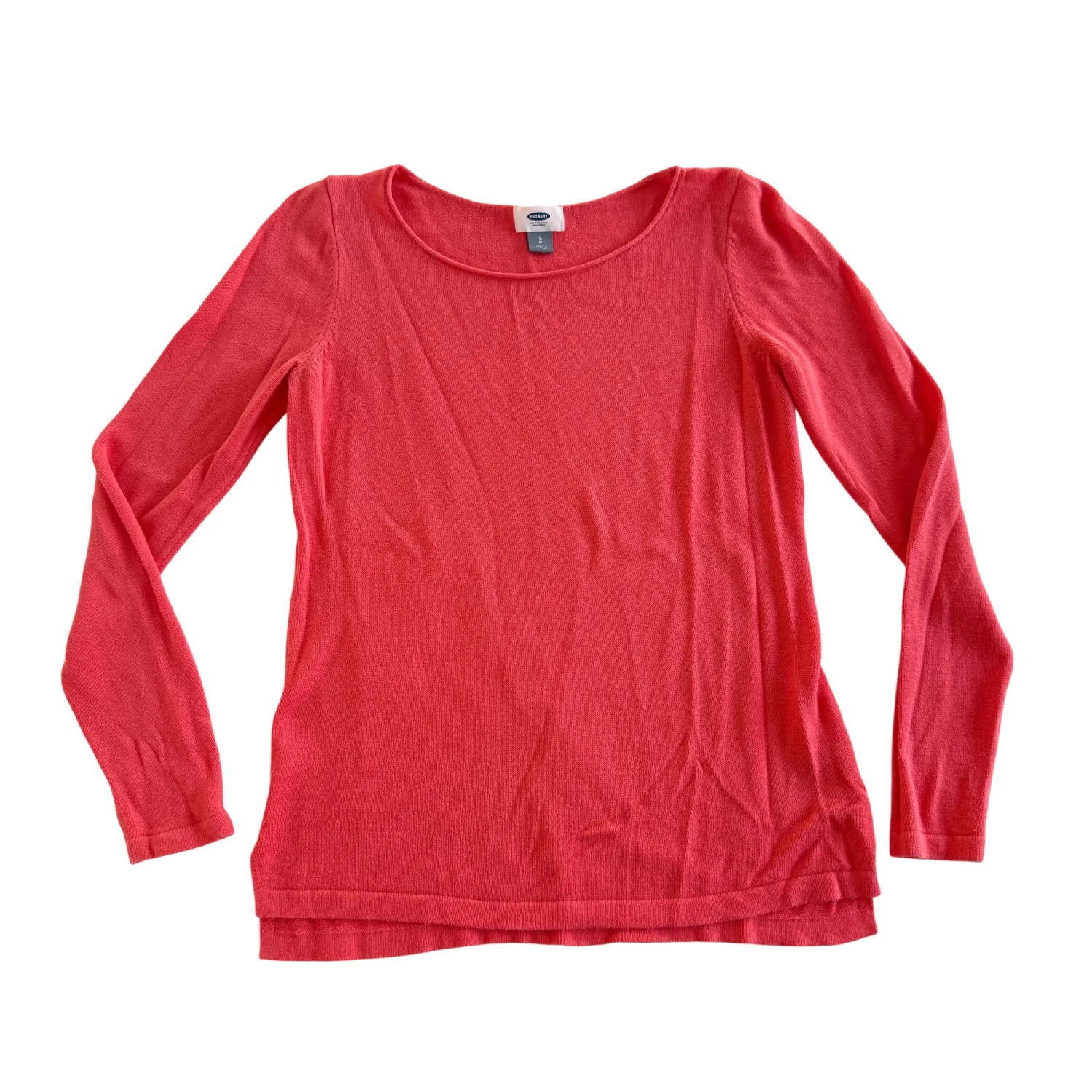 Preowned and in good condition with normal wear. No major flaws noticed. Please see all pictures for full details. Details: • Brand: Old Navy • Size: Women’s Small • Color: Coral • Style: Crew Neck Sweater • Sleeve Length: Long sleeve • Style Number: 496843–02 • Made in Vietnam Material: • 60% Cotton • 40% Rayon / Viscose Care Instructions: • Machine wash cold • Gentle cycle • Use only non-chlorine bleach if needed • Tumble dry low • Warm iron if needed Stored in a smoke-free, pet-free home. Ships same day if purchased before 12 PM EST.