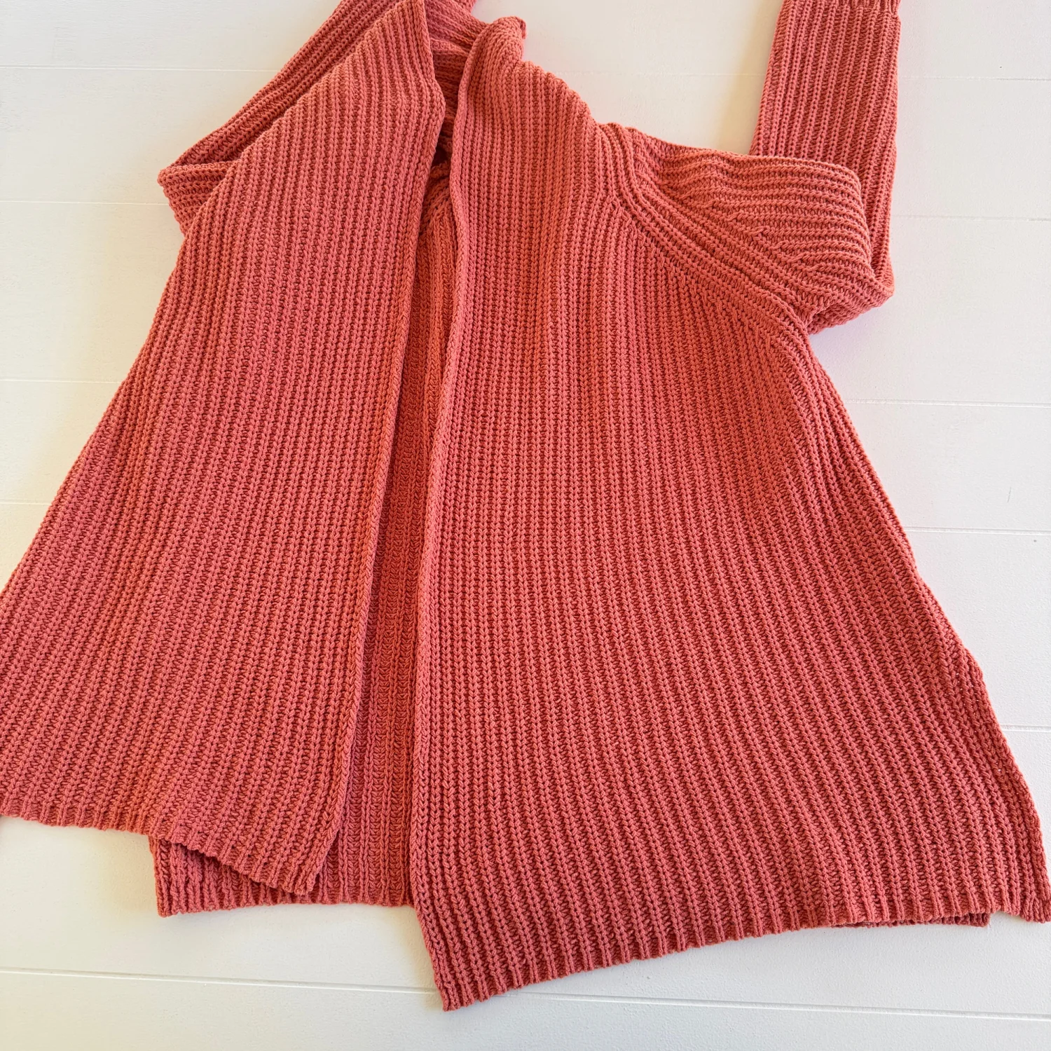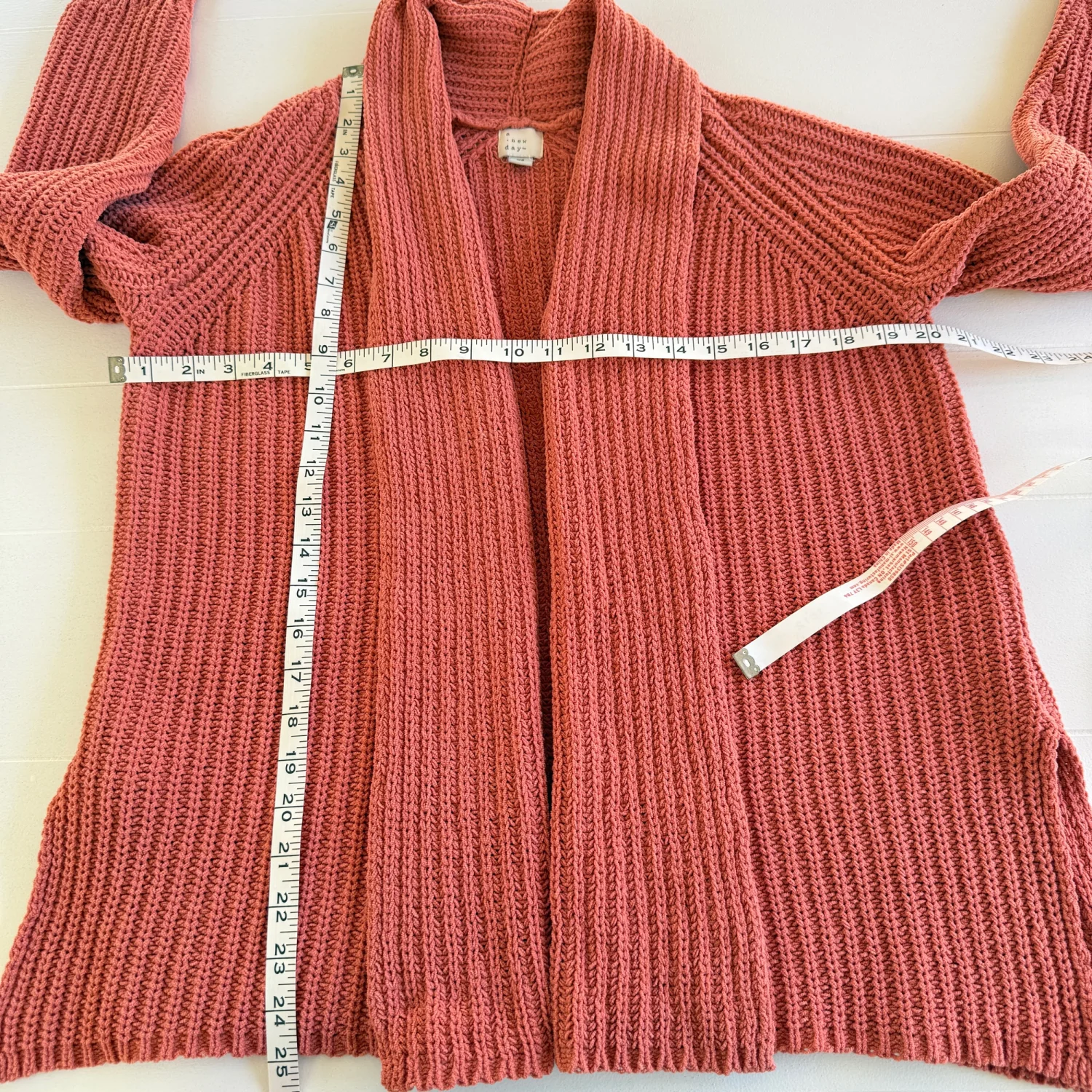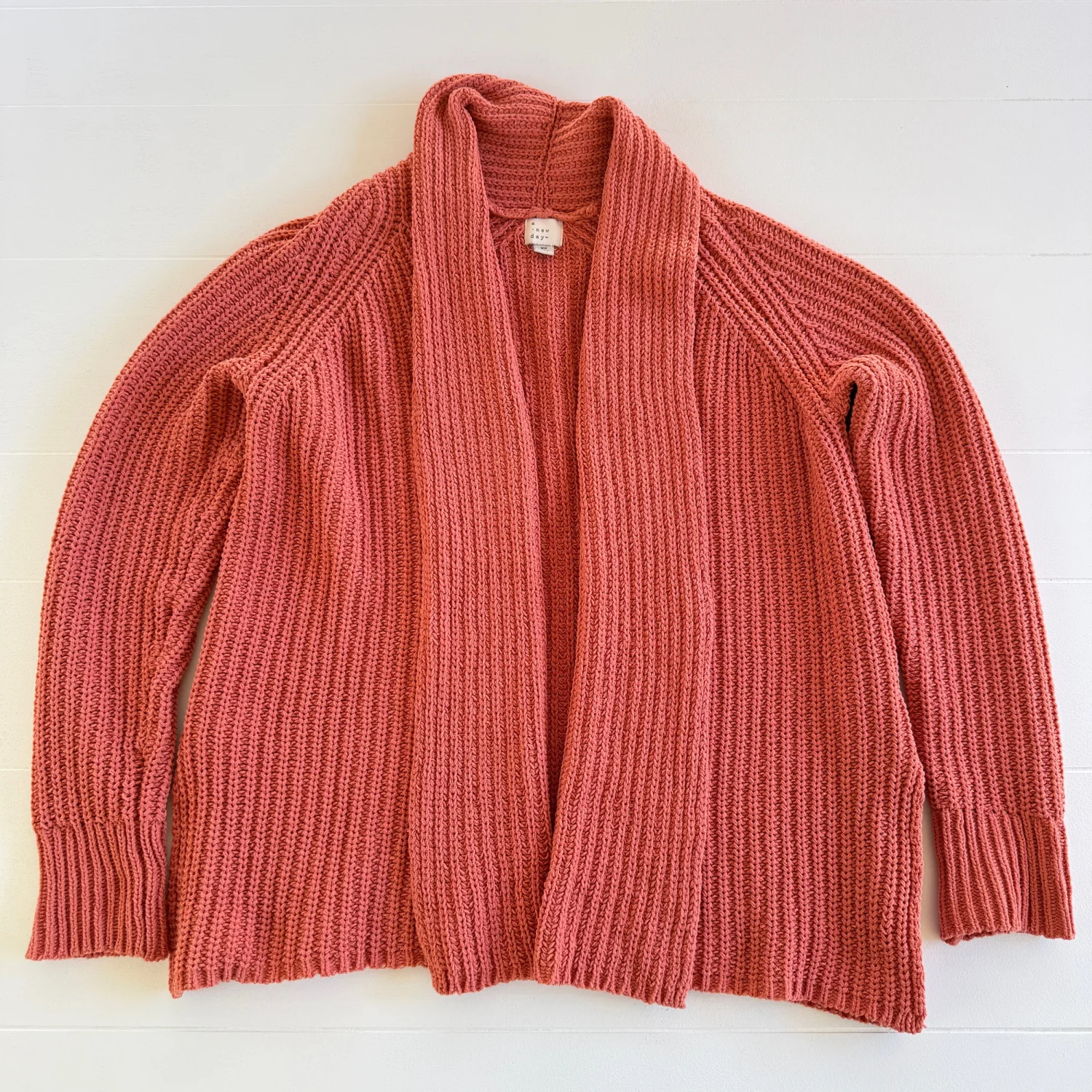 Soft pink chunky knit cardigan from "A New Day" brand. Made from 100% polyester with a cozy, open-front design. Perfect for layering during cooler months. Material is crafted from 100% recycled plastic, emphasizing sustainability. Care involves machine wash cold, lay flat to dry. Ideal for casual wear. Details: • Brand: A New Day • Style: Open front knit cardigan • Size: Women’s XS • Color: Peach (tone may vary by lighting) • Material: 100% Polyester • Made In: China • Season: Fall / Spring / Layering Preowned — good condition with normal light wear. Knit texture intact. No major flaws observed. Please review all photos for full details. Stored in a smoke-free, pet-free home. Ships same day if purchased before 12 PM EST. #sustainable #eco-friendly #cozy