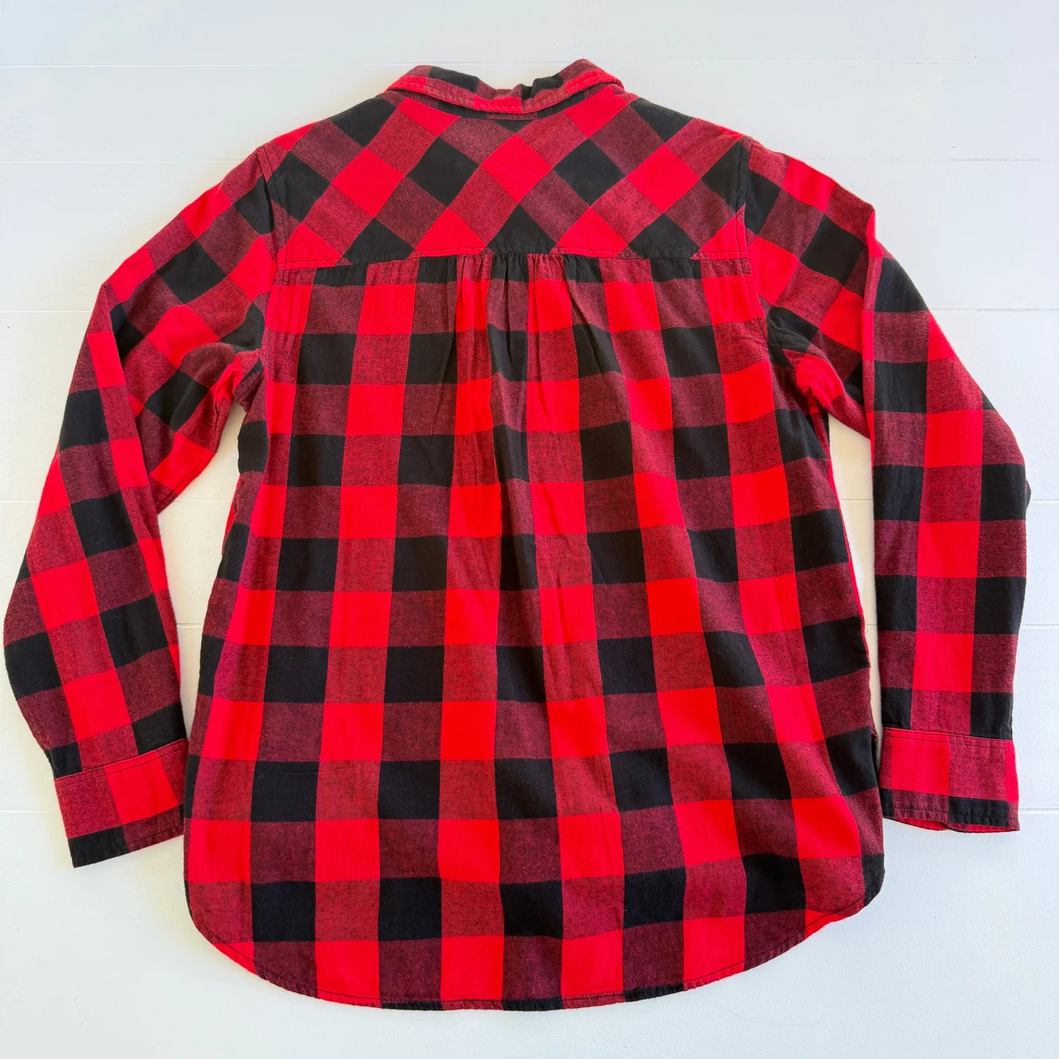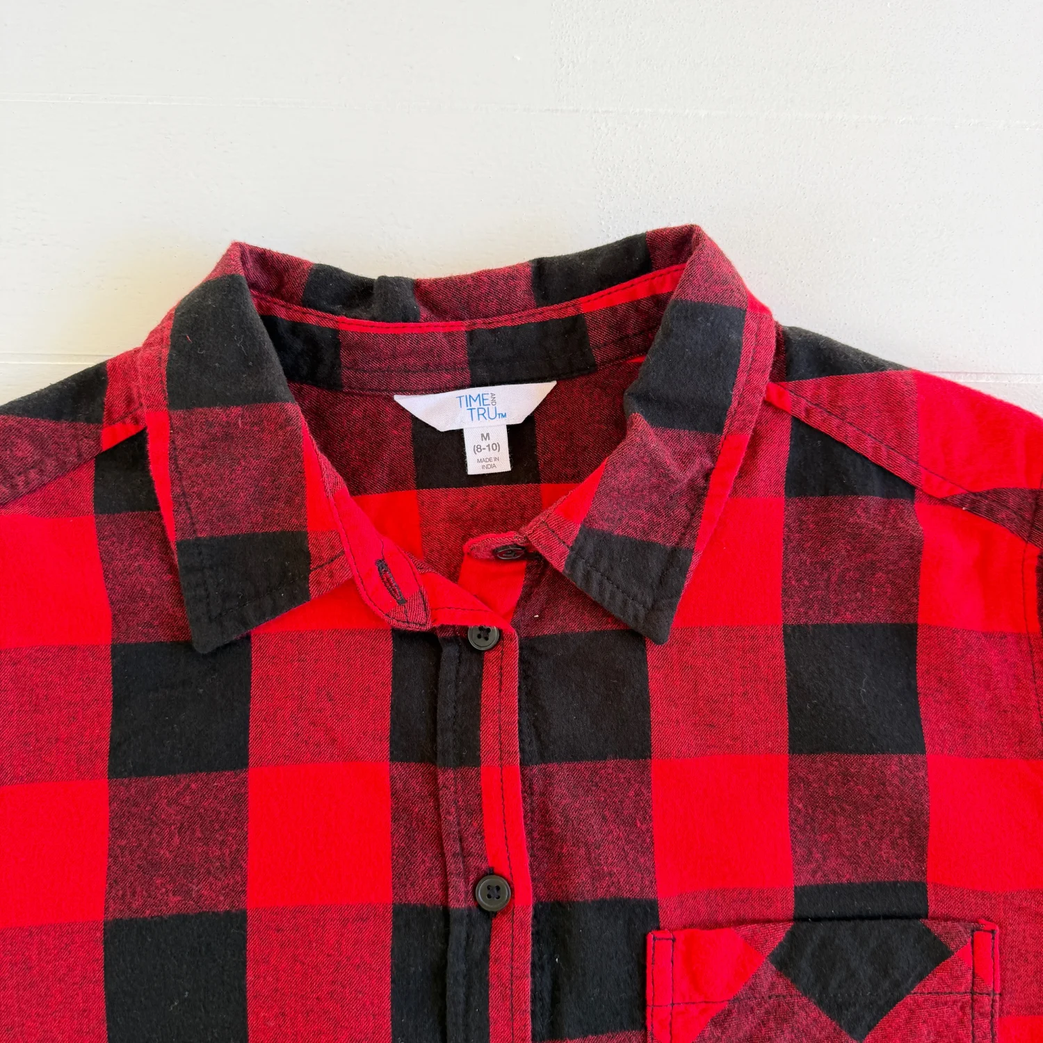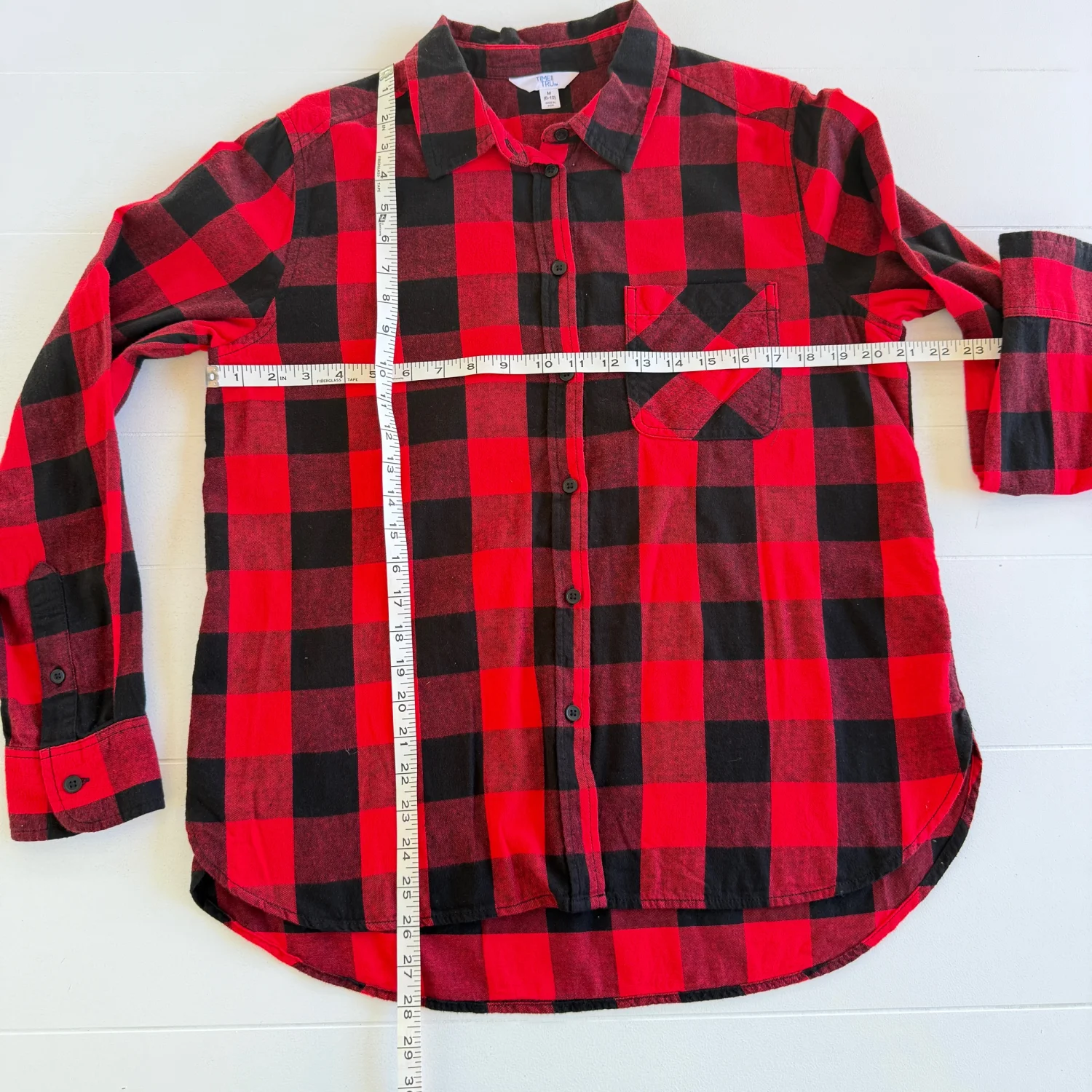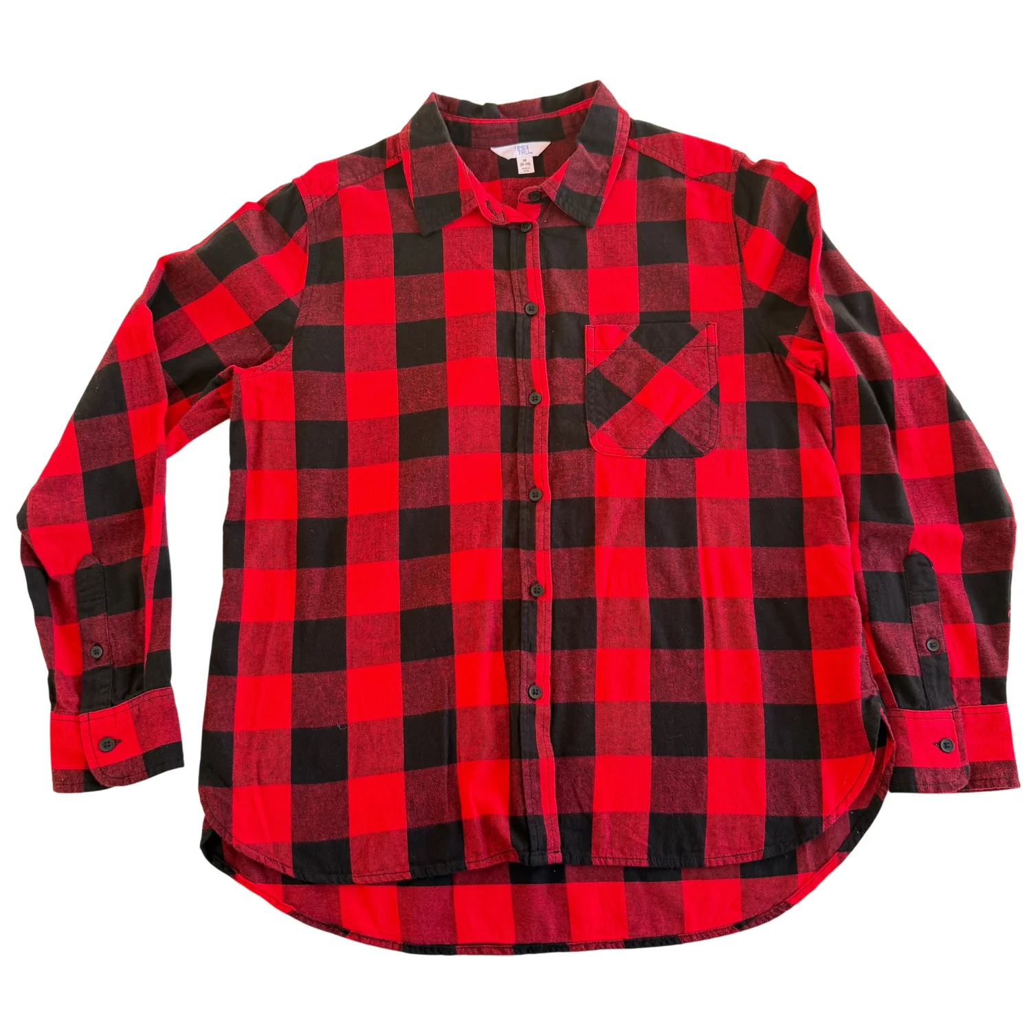 Details: • Brand: Time and Tru • Style: Button-down flannel shirt • Size: Women’s Medium (8–10) • Color: Black & Red • Material: 100% Cotton Care Instructions: Machine wash cold with like colors. Only non-chlorine bleach when needed. Tumble dry low. Cool iron if needed. Condition: Preowned. No flaws noticed. Please see all pictures for full details. Stored in a smoke-free, pet-free home. Ships same day if purchased before 12 PM EST.