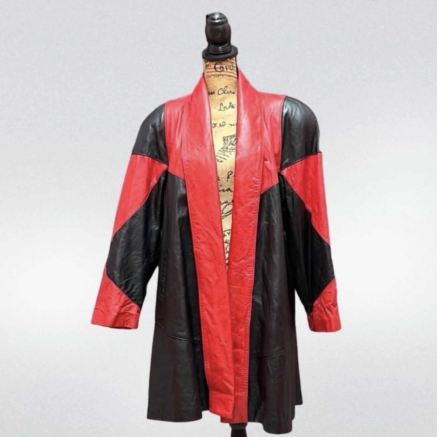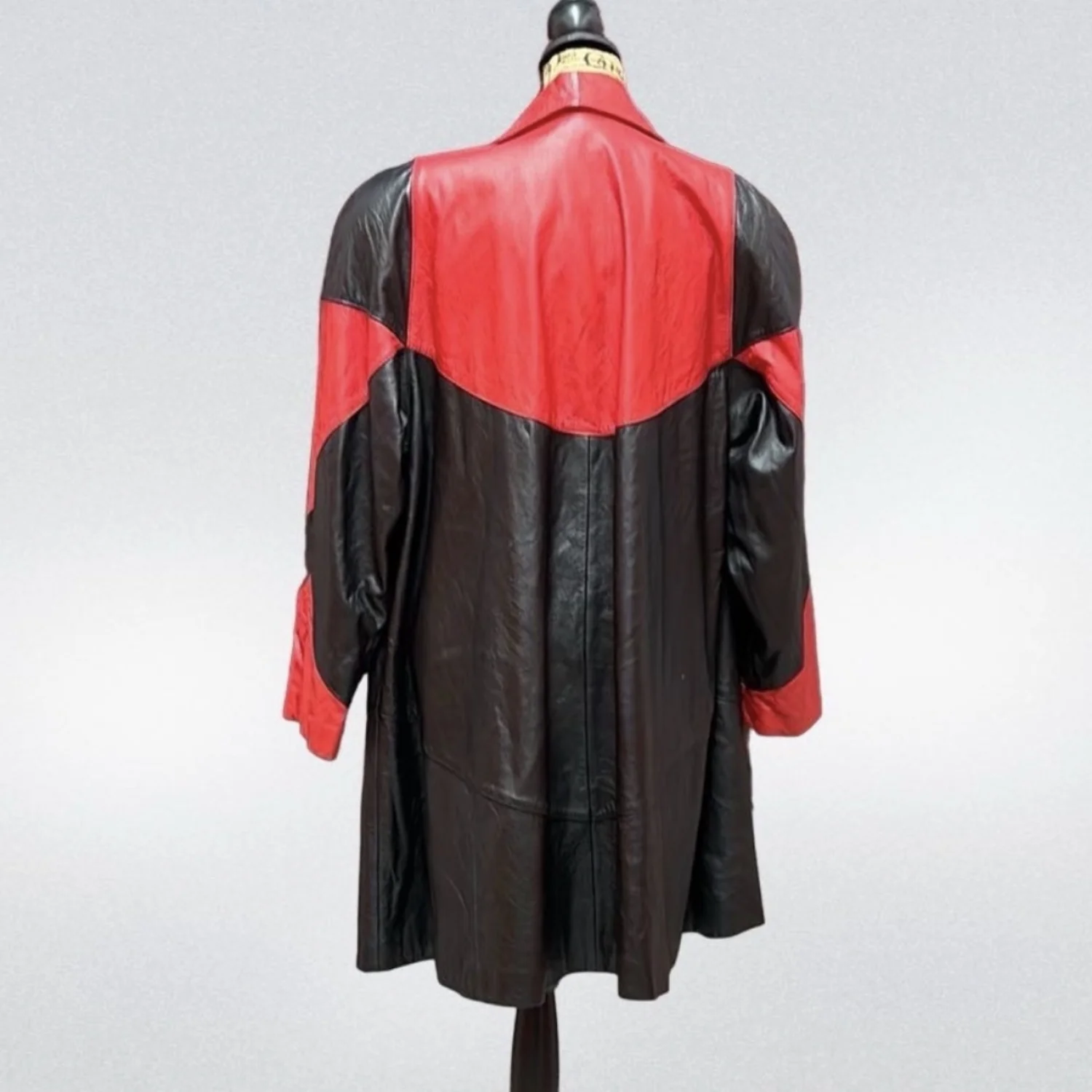 Beautiful vintage 1980s Butter soft red and black leather coat Fully lined Front pockets Size Large. Oversized