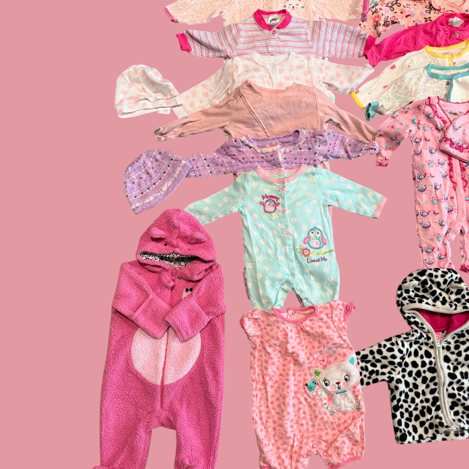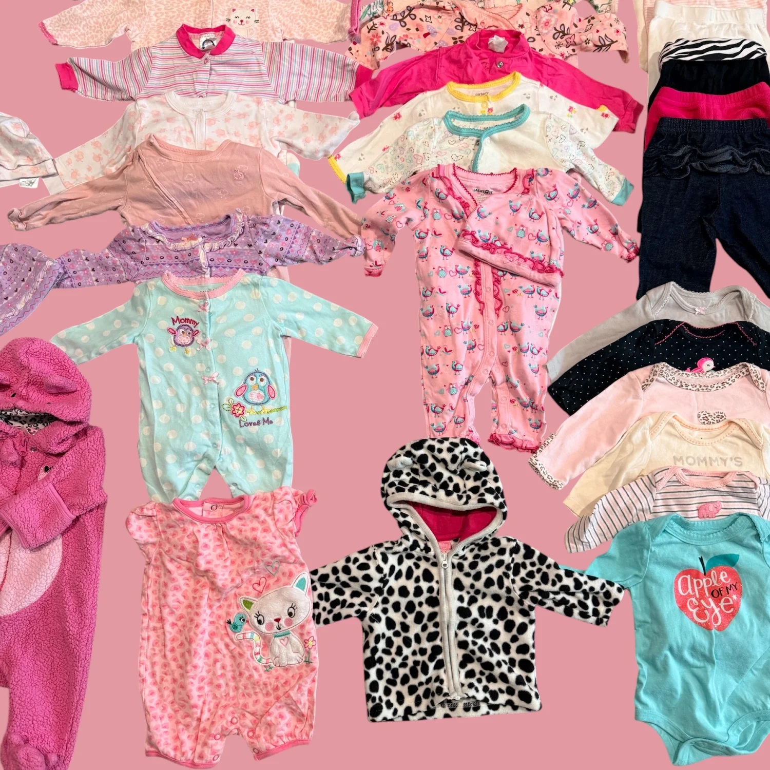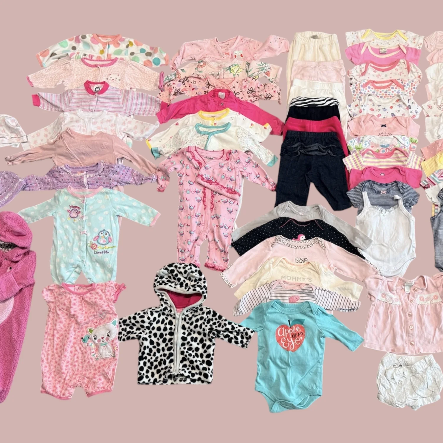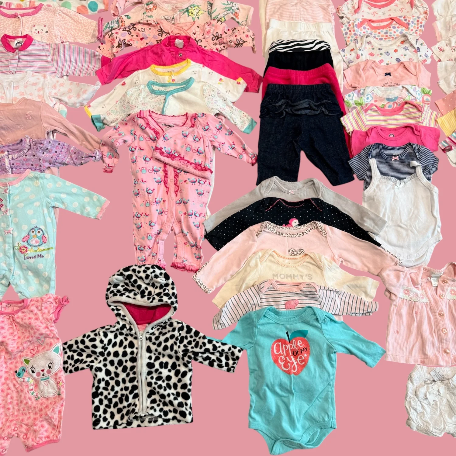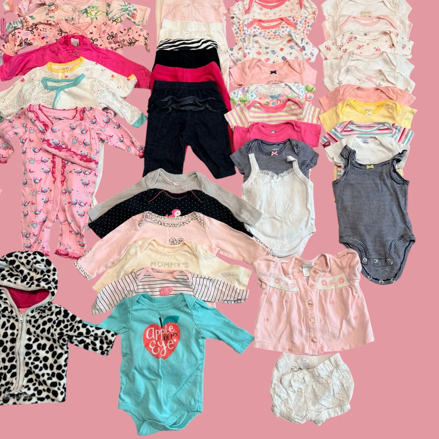 Brand: Mixed (Carter’s, Baby Gap, Gerber, Babies R Us, The Children’s Place) Size: 0–3 Months Era: Modern Color: Pink, white, pastel, multicolor Material: Mixed fabrics (cotton blends) Description: Large bundle of baby girl clothing in size 0–3 months. Includes a mix of sleepers, onesies, tops, pants, hats, and a few outerwear pieces. Variety of prints and colors. Mixed brands including Carter’s, Baby Gap, Gerber, Babies R Us, and The Children’s Place. Good gently used condition overall. please message me if you require more photos or measurements. Condition: Gently used. May show light wash wear consistent with normal use. No major flaws noted. Additional Notes: Color may vary slightly due to lighting and screen resolution. Shipping from the US. SEO Keywords: baby girl clothes 0-3 months bundle, newborn clothing lot, infant girl outfits, carters baby gap gerber bundle, baby clothes lot pink, newborn essentials bundle, infant clothing set