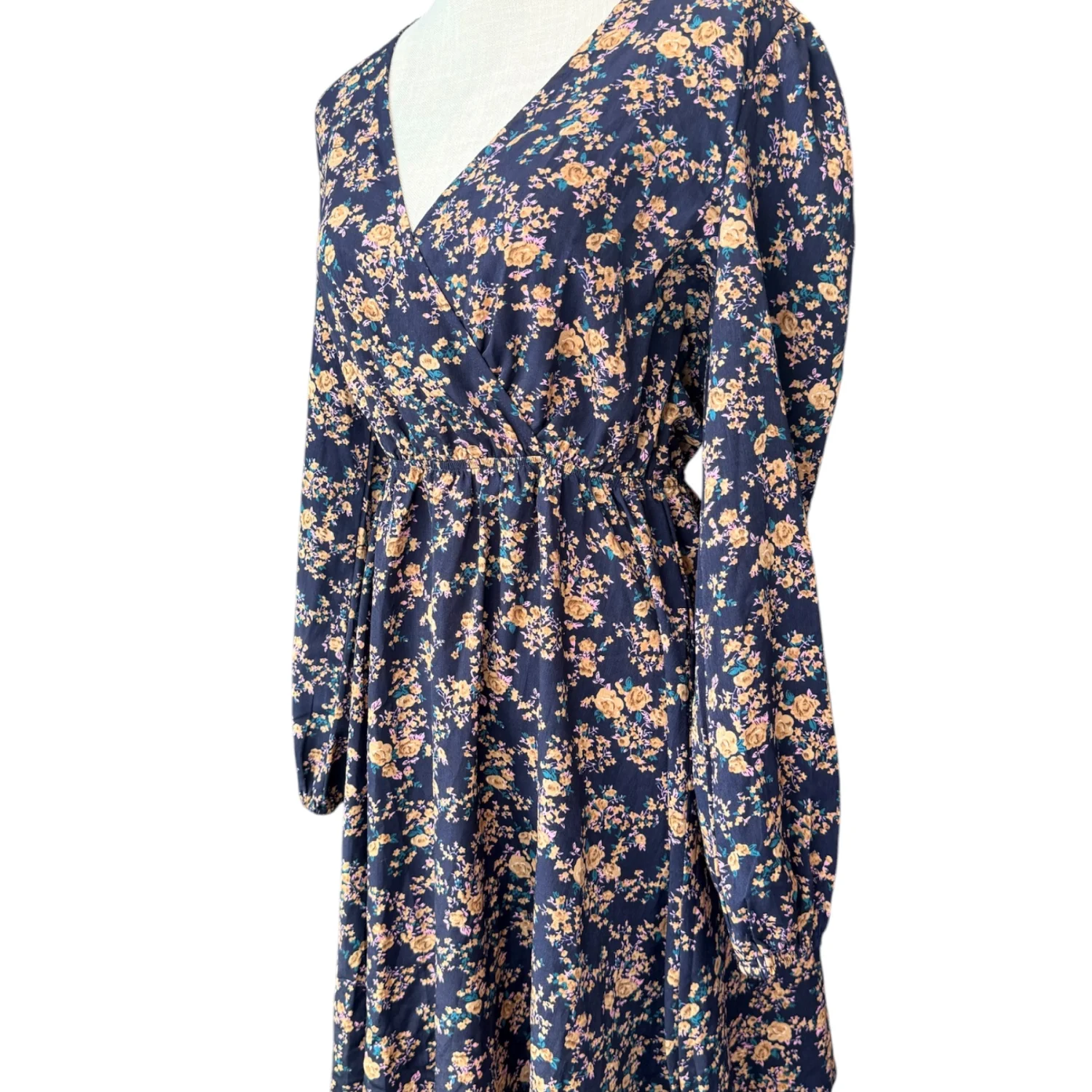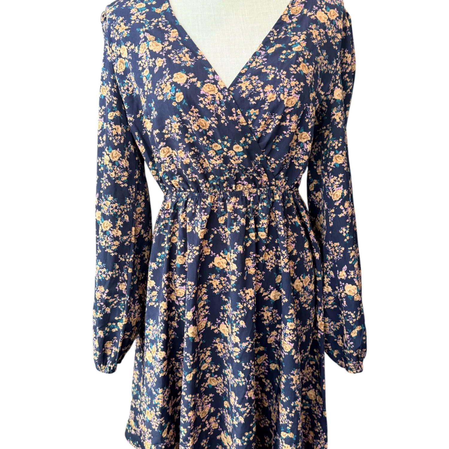 Cupshe Floral Long Sleeve Mini Dress Navy Yellow Size M NWT