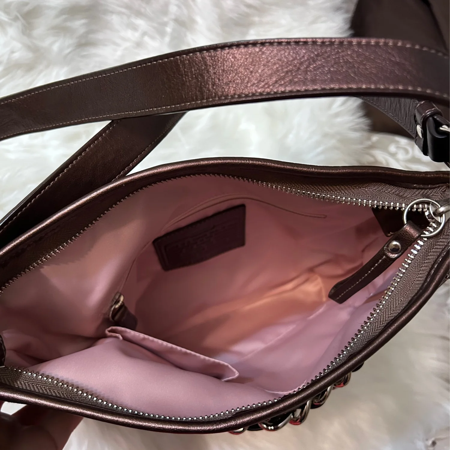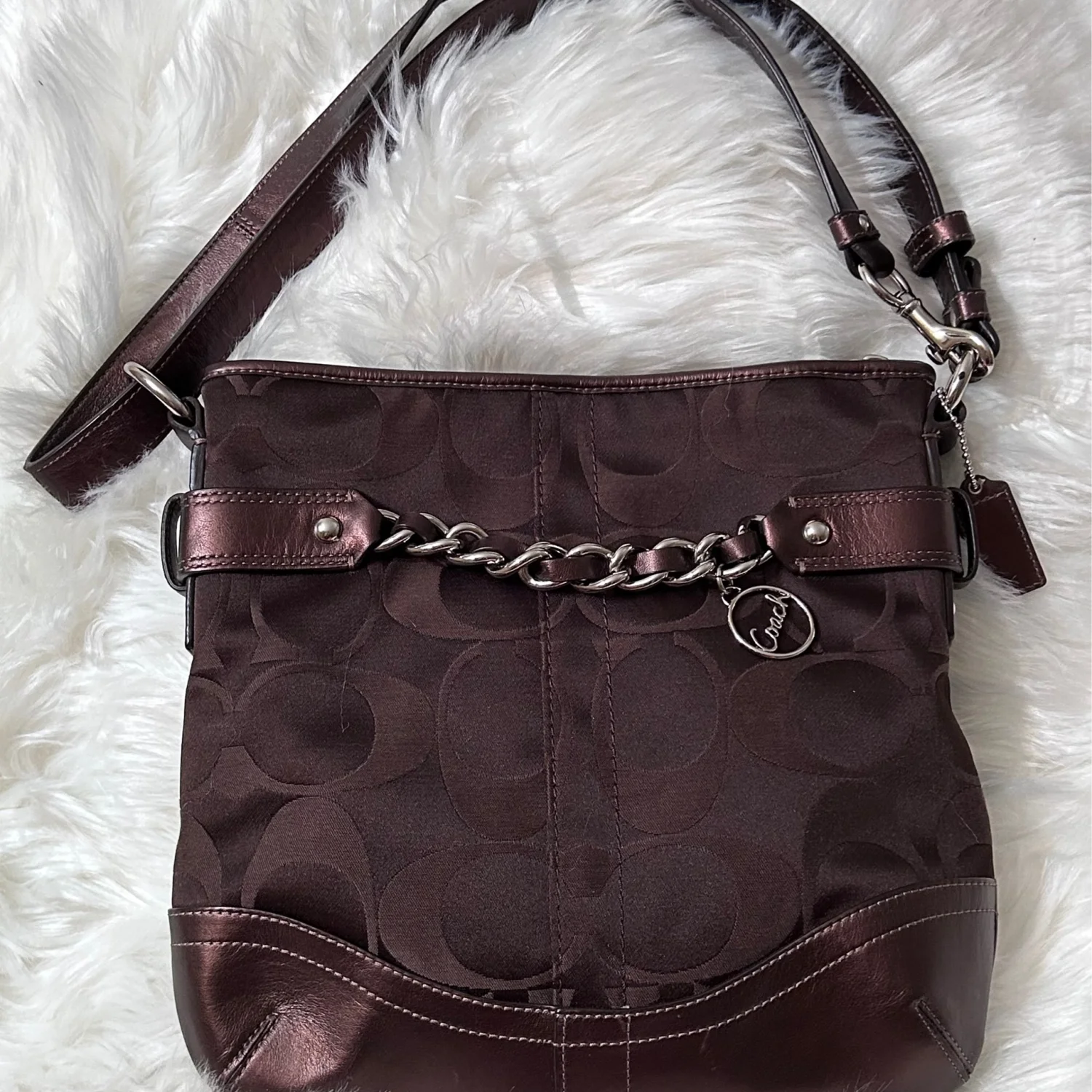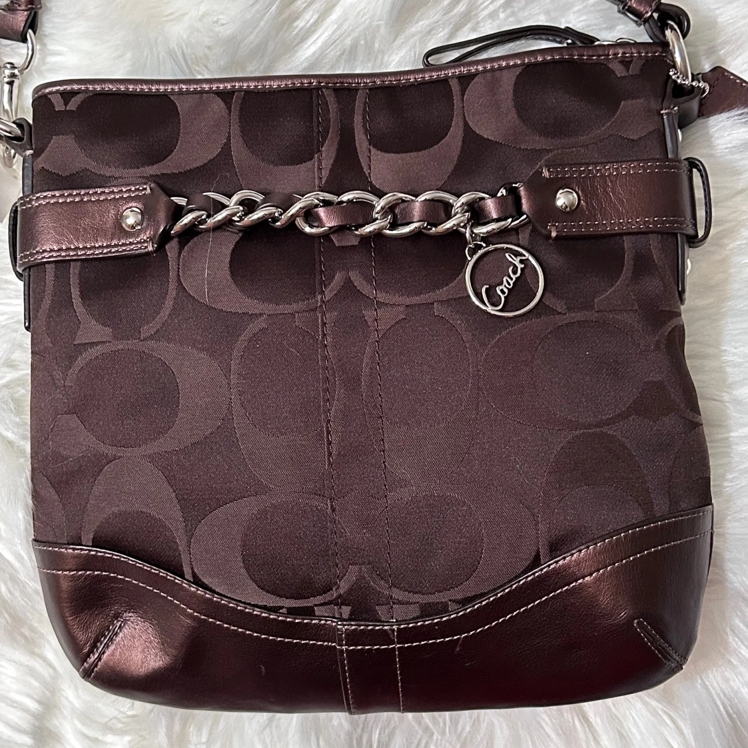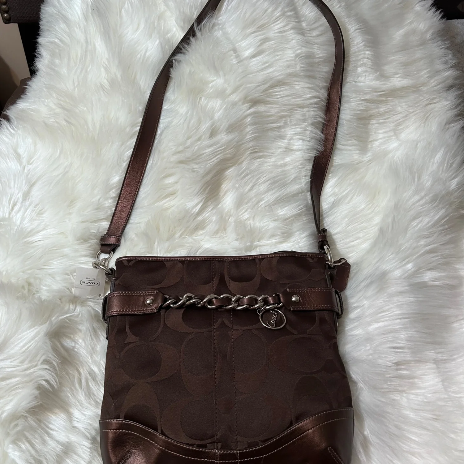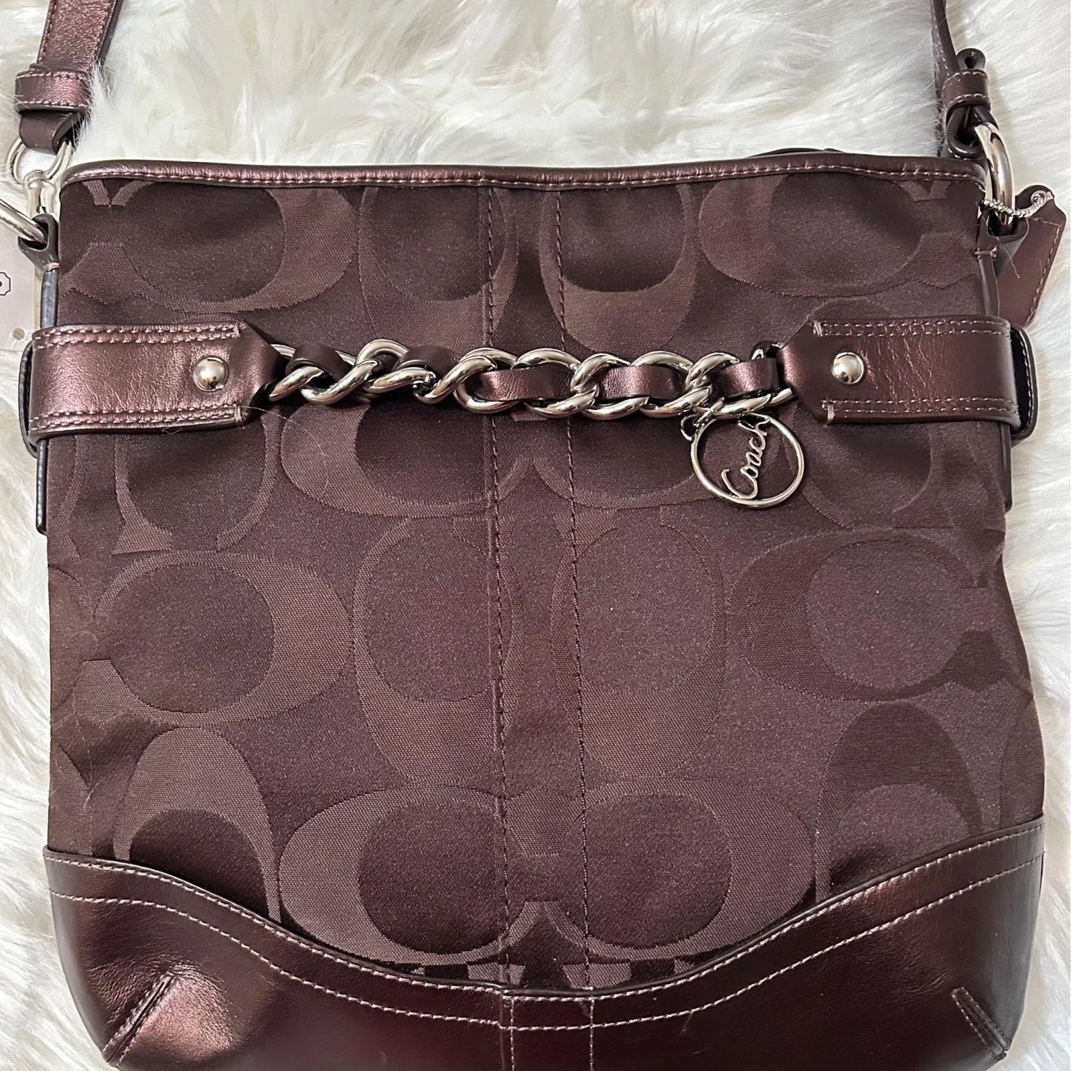 Beautiful Rich Brown Coach Signature Optic Chain bag