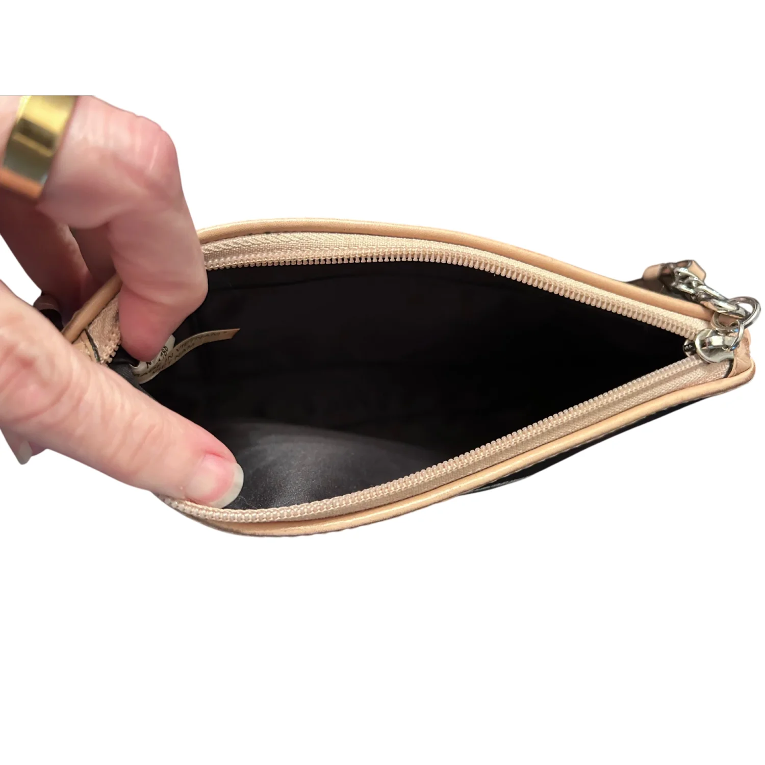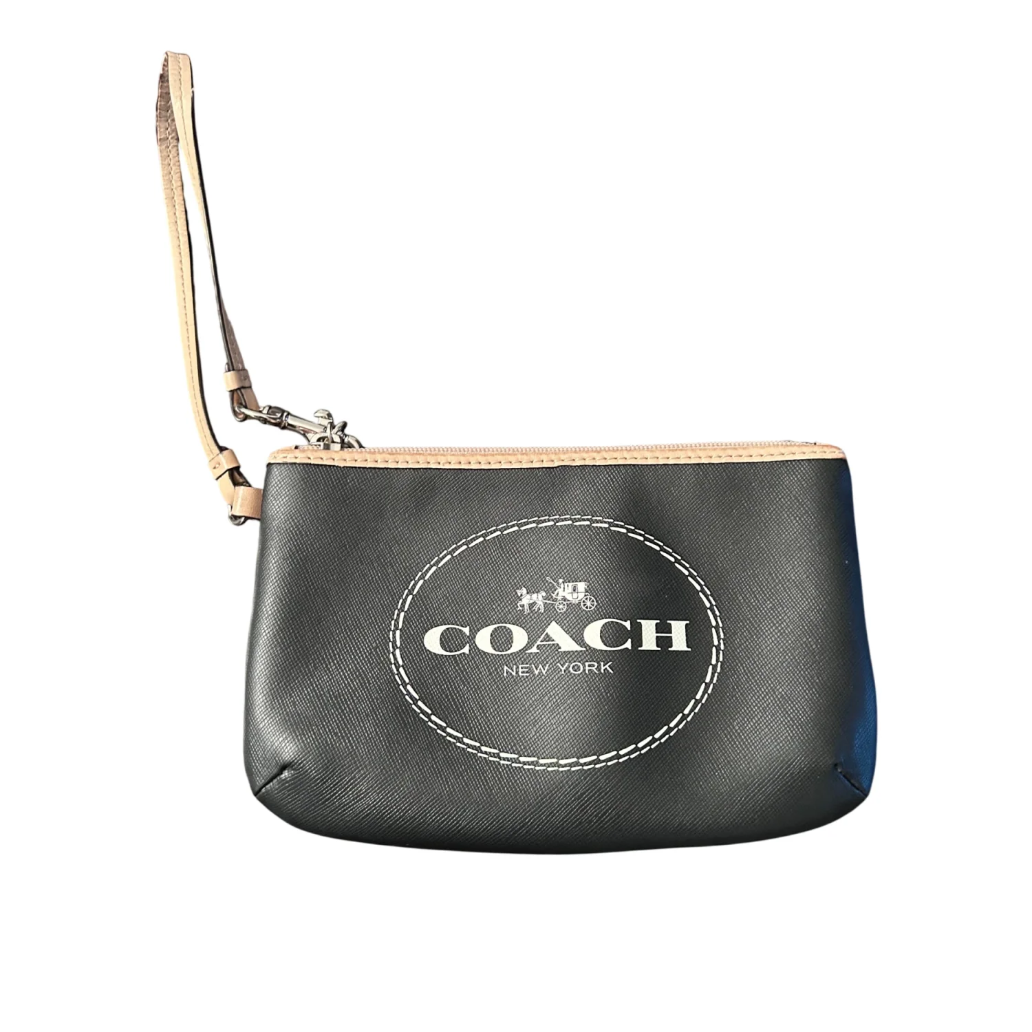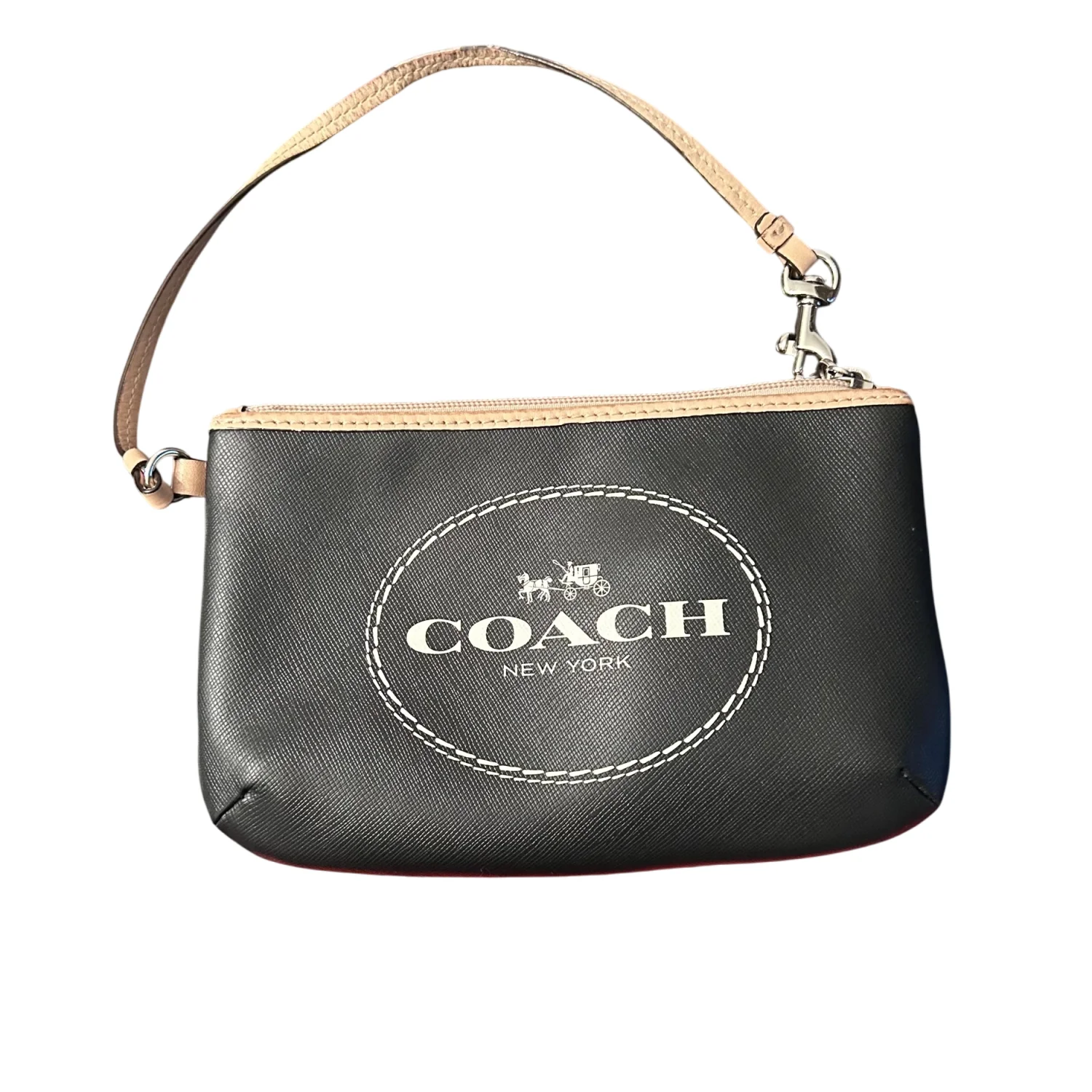 This is a black Coach F51788 Horse and Carriage Leather Medium Khaki Wristlet. Features iconic logo design. Slight wear on part of the handle. Please see the pictures for signs of as this is preloved. Approximately 7.5 “ x 5” with a 6.5” strap drop. Wristlet released around 2013-2014
