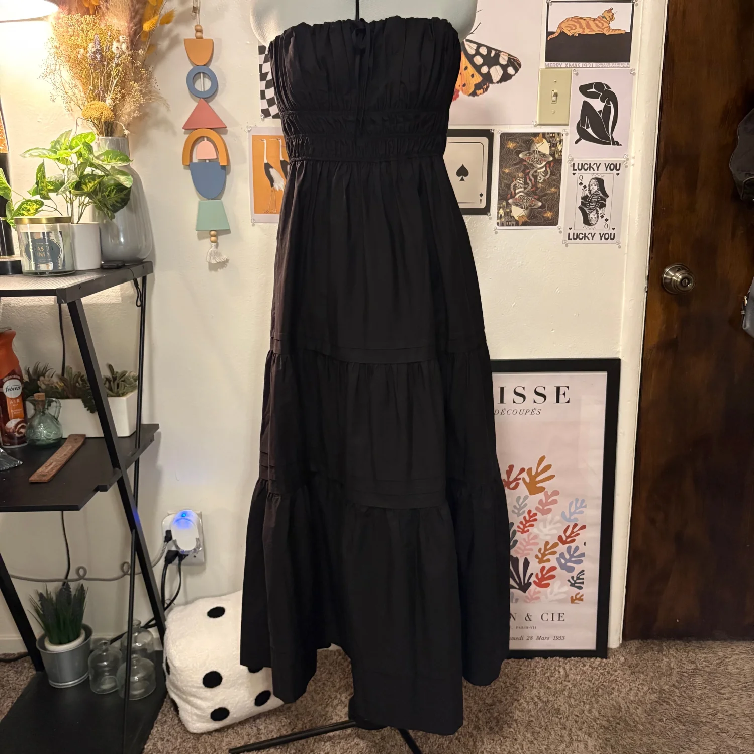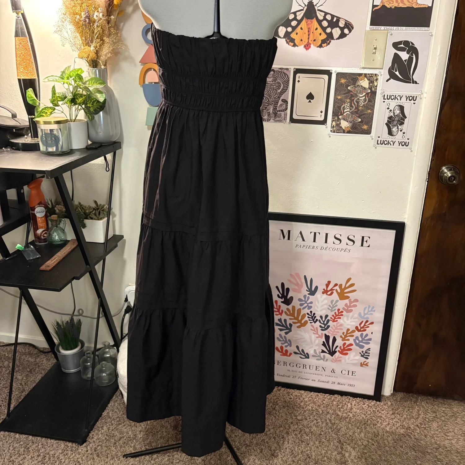 Brand new with tags. The iconic Somerset silhouette—loved for its effortless fit and universally flattering shape. This strapless maxi features a soft A-line skirt, smocked waist, and elegant tiered construction. Hidden side pockets add everyday ease. Details: • Strapless neckline • Smocked waist for a comfortable, flexible fit • Tiered maxi silhouette with pintucked hem • Side slant pockets • Pullover style • Cotton shell with viscose lining • Retail $168 A timeless, easy-to-style piece perfect for vacations, events, or elevated everyday wear.