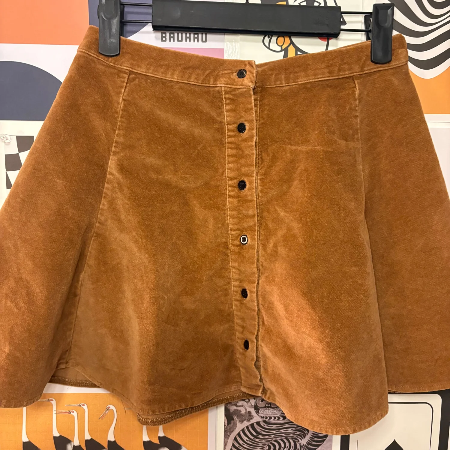Brandy Melville Vintage Corduroy Button‑Front Skirt Classic Brandy corduroy in a warm brown tone with a flattering A‑line silhouette and full button‑down front. Soft texture, great structure, and that early‑2010s Brandy look everyone still hunts for. Easy to pair with sweaters, tees, or tights for year‑round wear. Waist: 11.5” flat Length: 14.5” Fit: Best for an XS / approx. 23–24” waist Condition: Excellent vintage condition A great staple for anyone who loves Brandy classics or vintage‑inspired basics.