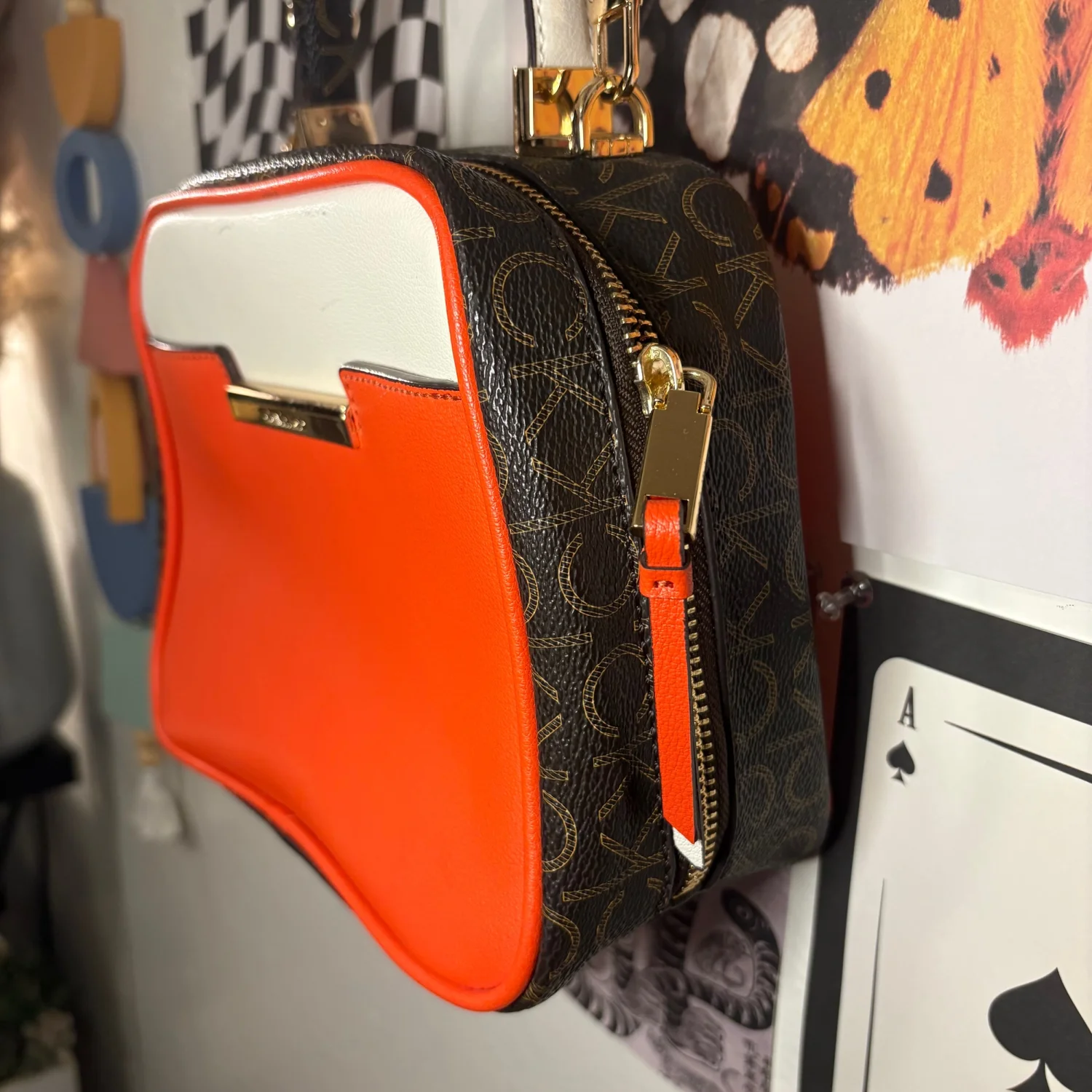 Calvin Klein Orange Colorblock Satchel