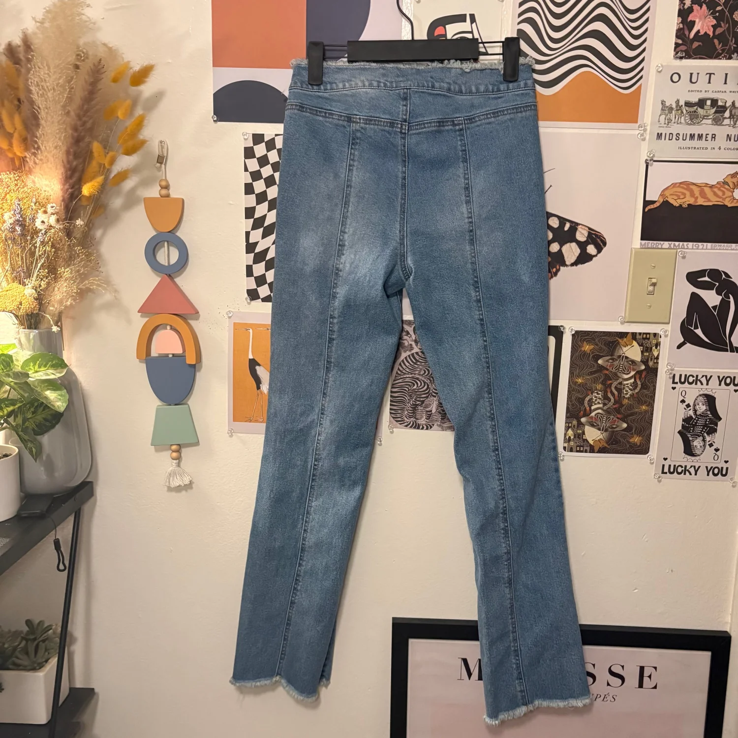 ๐ซ Celebrity Pink High-Rise Seam Jeans ๐ซ Light wash denim with a frayed waistband and hem, plus vertical seam detailing for a sleek, elongating look. High-rise fit with soft stretch โ perfect with cropped knits, basics, or graphic tees. ๐งต Tag: Celebrity Pink ๐ Size: 7/28 โ approx. 13โ waist, 29โ inseam ๐จ Condition: Excellent, no flaws Soft, sculpted, and ready for everyday styling.