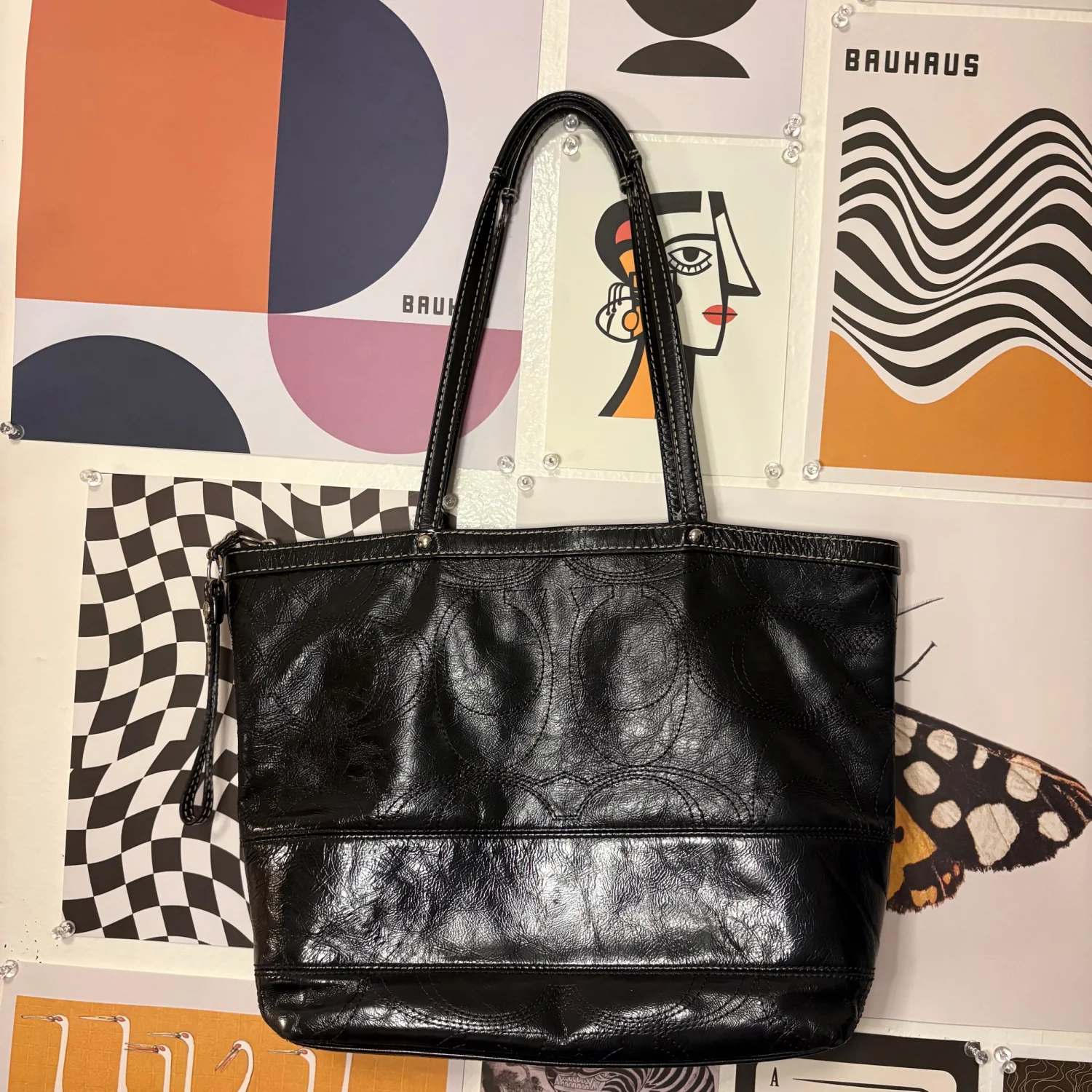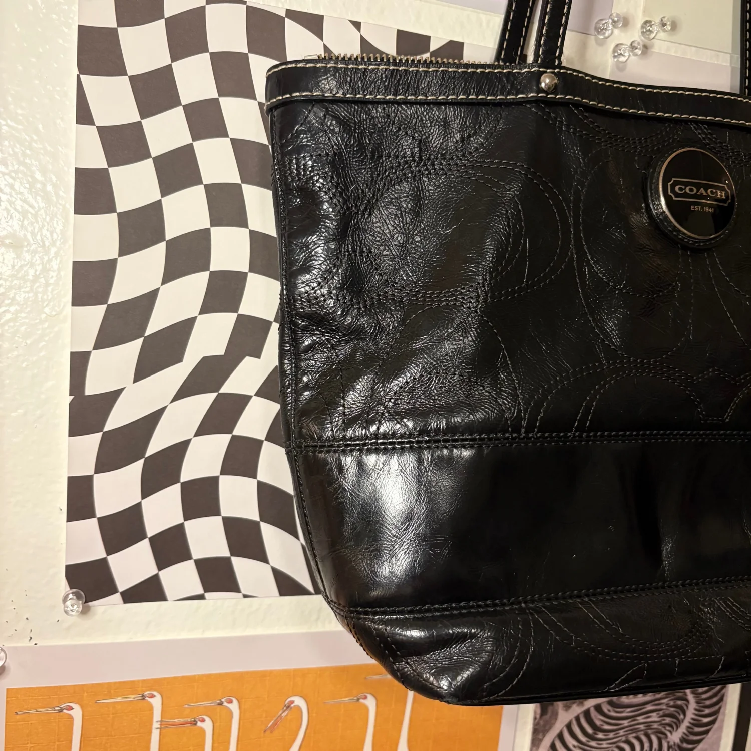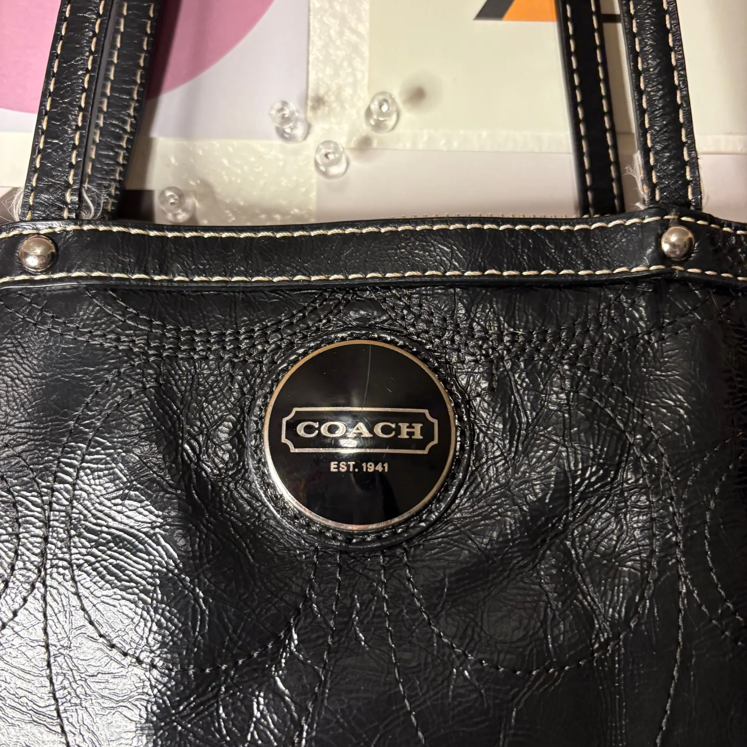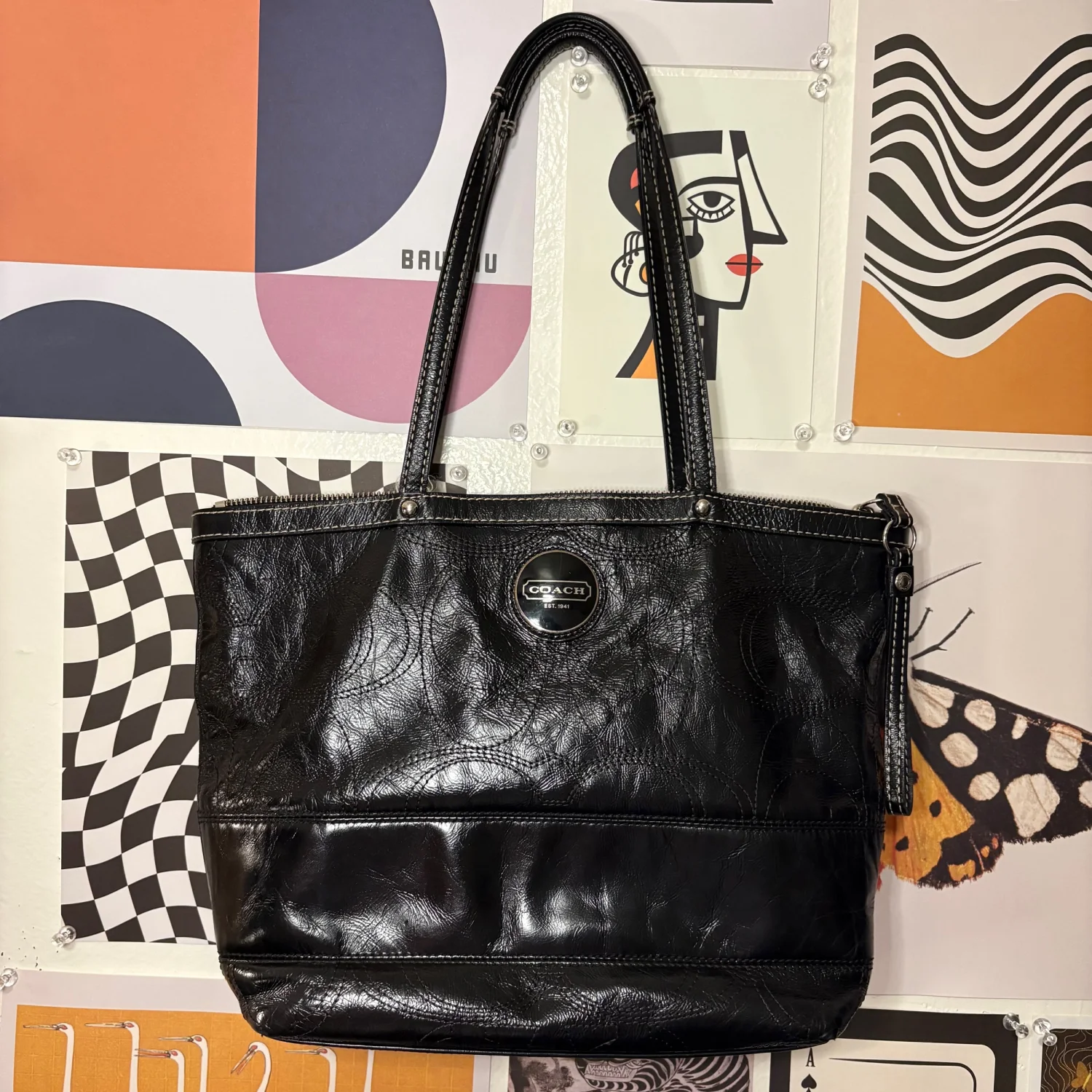 Coach Black Leather Shoulder Bag — Style F15142 Classic black Coach shoulder bag crafted in full‑grain leather with the signature circle detailing and silver‑tone round logo plaque. A structured, easy‑to‑style silhouette from the early 2010s—durable, timeless, and perfect for everyday wear. Condition Gently loved and well maintained. Interior shows light wear from age, but remains clean overall and free of stains. Exterior leather is in great condition with no peeling or cracking. Hardware and stitching are strong. Features • Authentic Coach, style F15142 • Black full‑grain leather • Embroidered circle pattern • Silver‑tone logo emblem • Zip‑top closure • Interior pockets for organization • Comfortable double‑strap carry A chic, long‑lasting Coach staple with plenty of life left.