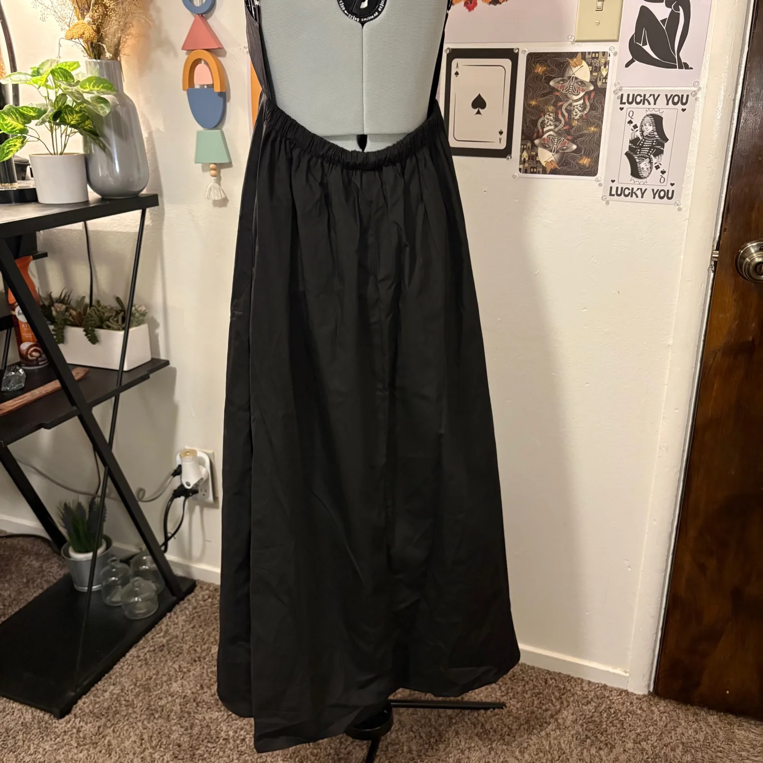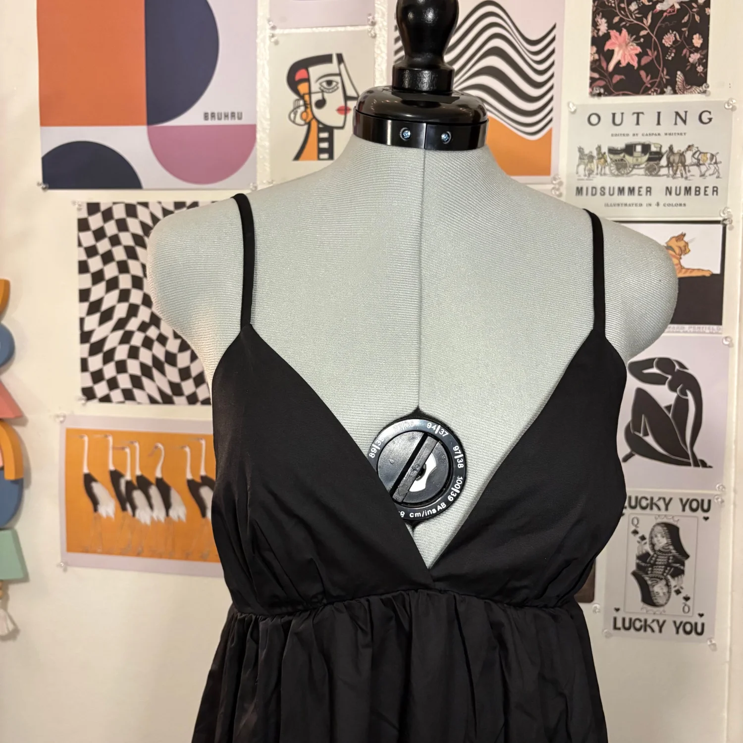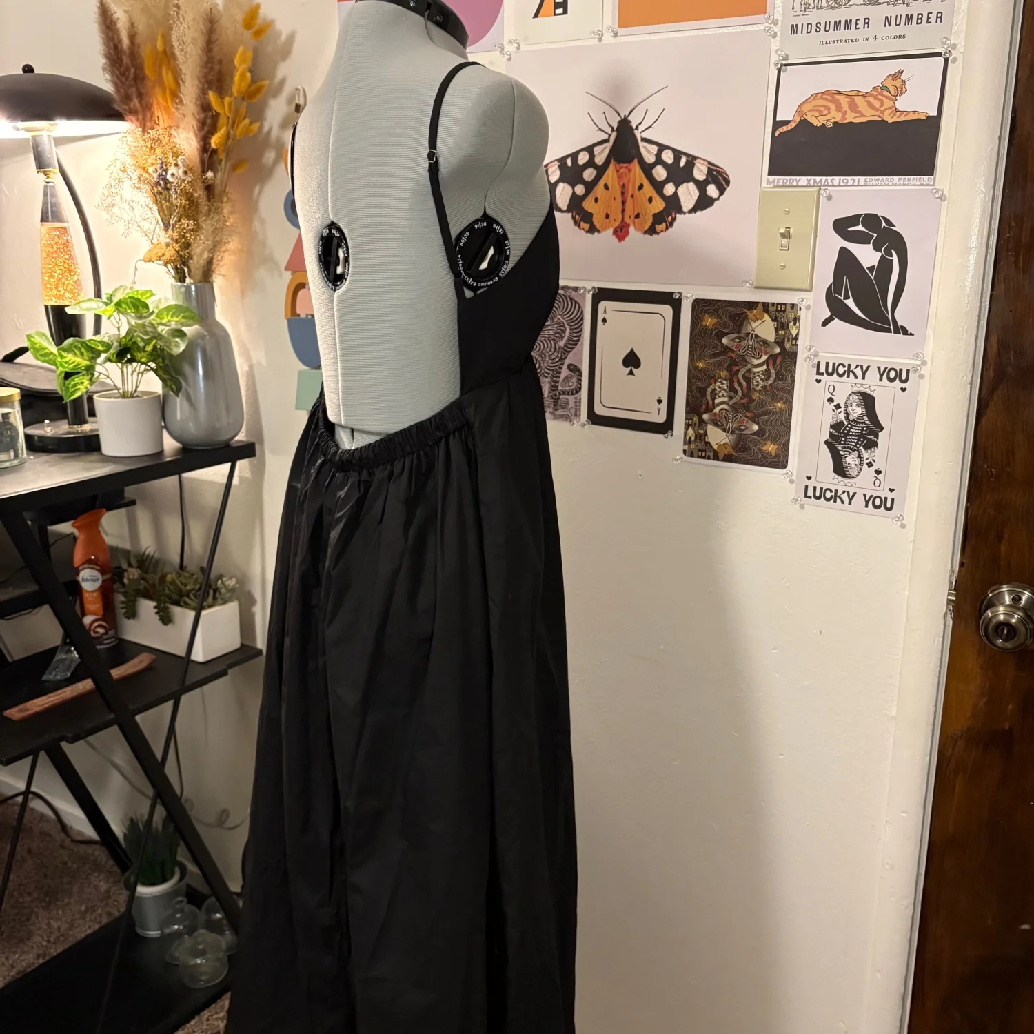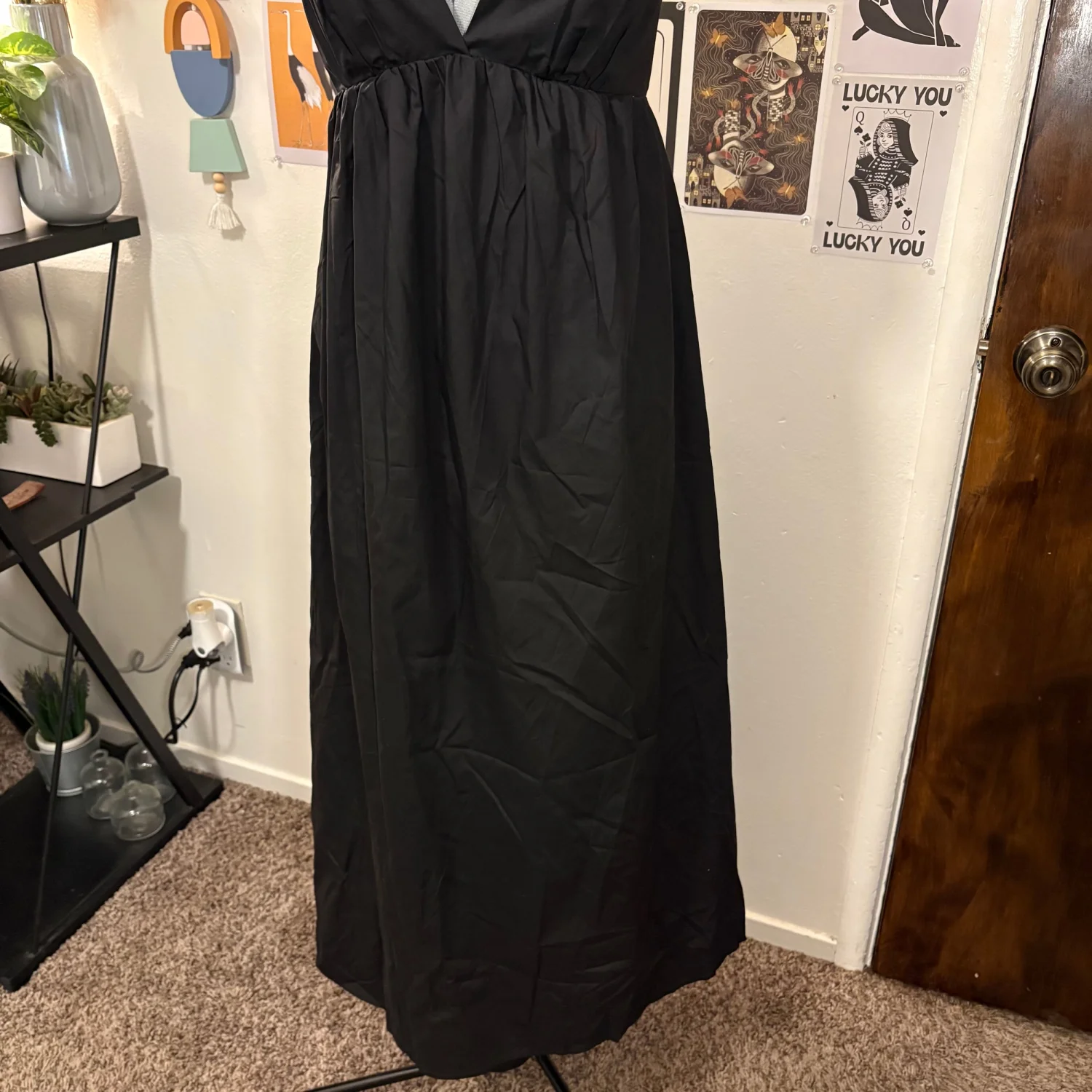 🖤 COMMENSE black maxi dress 🖤 Modern minimalism meets editorial drama in this flowing black maxi by Commense. Features a deep V neckline, adjustable straps with metal ring detail, and a gathered seam that adds subtle volume to the skirt. Lightweight and fluid—perfect for layering or wearing solo with statement accessories. 💌 Tagged size M — best for S-M depending on desired fit 🌙 NWT 🎀 For the I-Feel-Good-ism (brand tag quote)