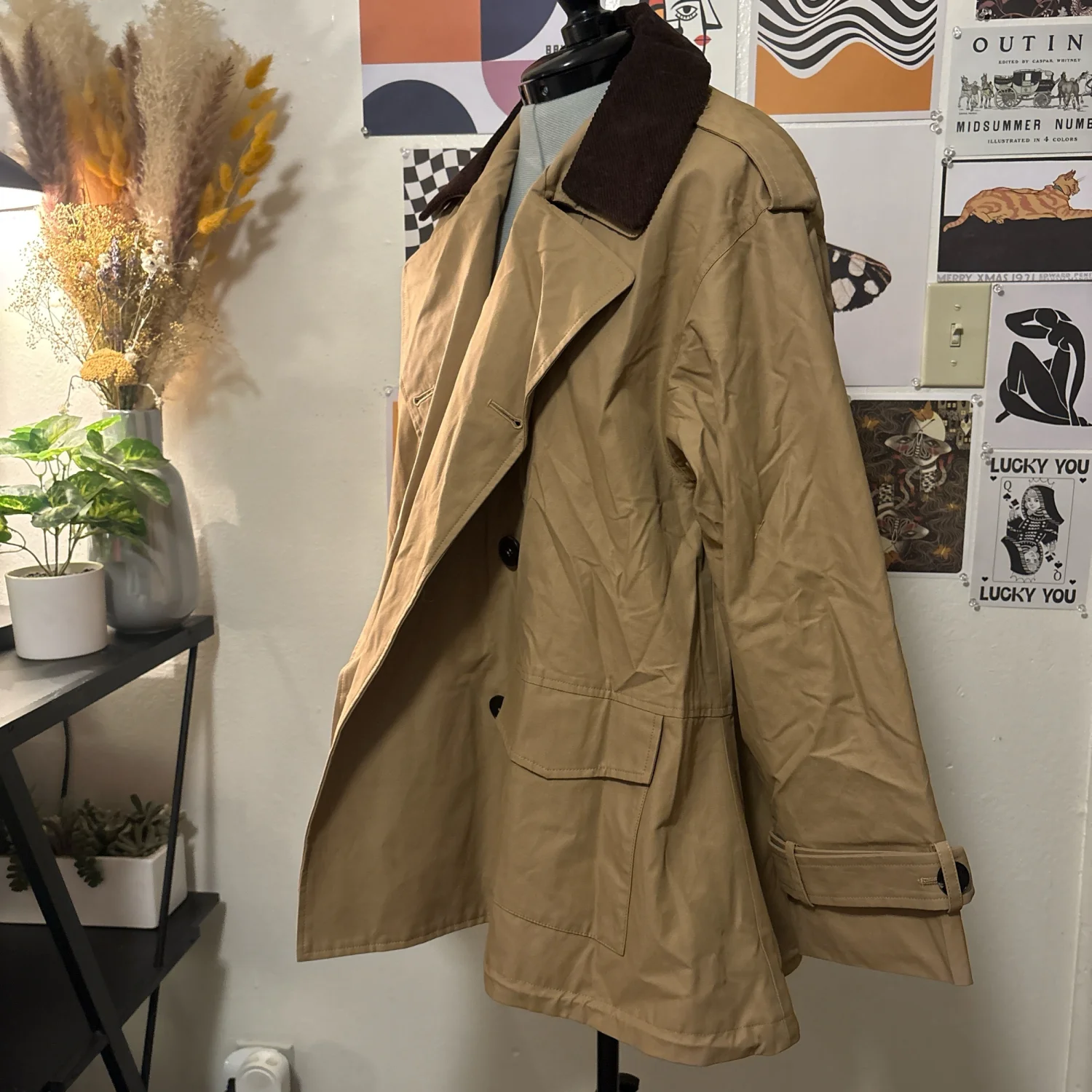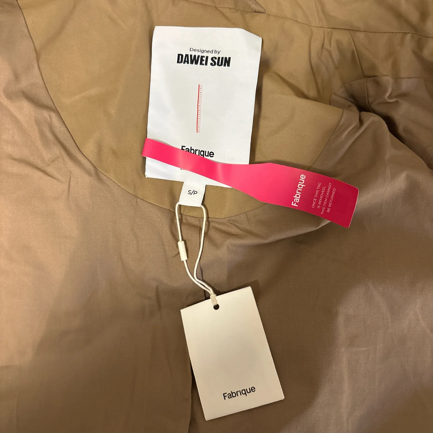 NWT Dawei with Fabrique Limited Edition Cassian Short Trench Coat in Cotton Blend #trenchcoat #fabrique #nwt #fall #winter #outerwear Weather-defying chic in khaki. This short trench plays with proportions – cropped front, flowing back. Detachable corduroy collar adds edge. Your go-to for unpredictable skies and impromptu adventures in style. Normally $368 Brand New on the website beige, oversized, utility, minimalist, neutral tones, structured, lightweight, fall winter, designer-inspired, coat