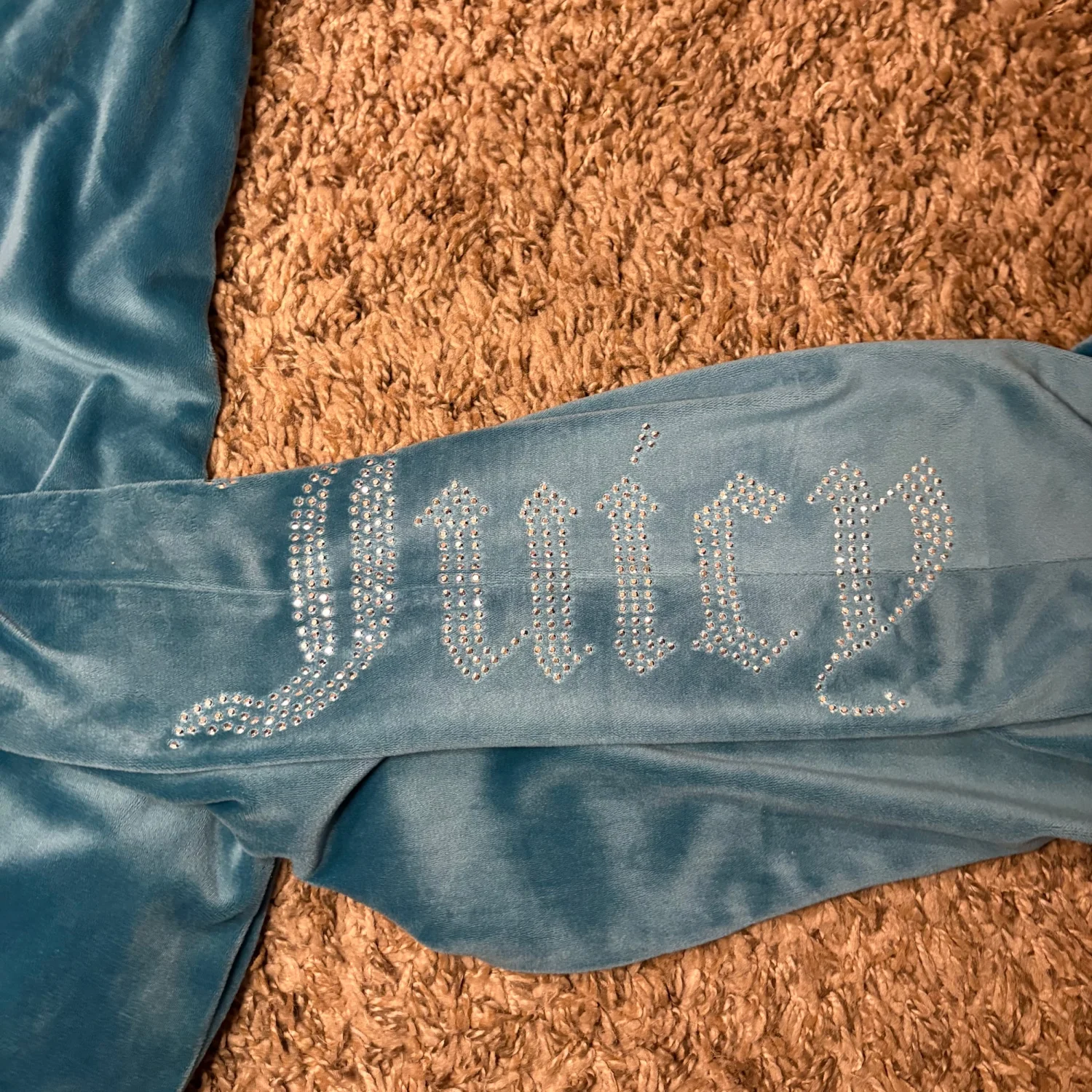 Classic Juicy velour bottoms in a rich blue with rhinestone Juicy detail on the leg. Soft, plush fabric with an elastic waistband for an easy, comfy fit. Size: Medium Waist: 13” flat Inseam: 29” Condition: Great preowned condition with light, normal wear to velour A perfect Y2K staple — great for lounging or styling with tees, hoodies, or UGGs.