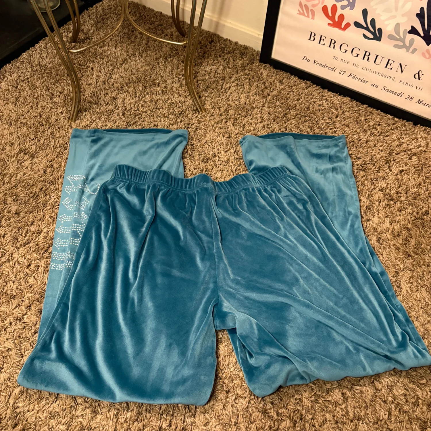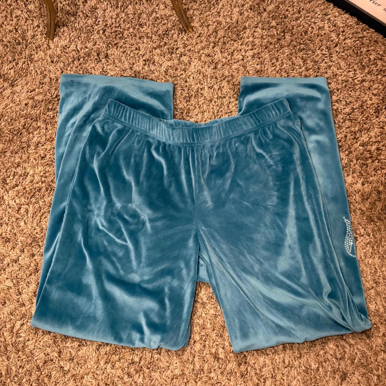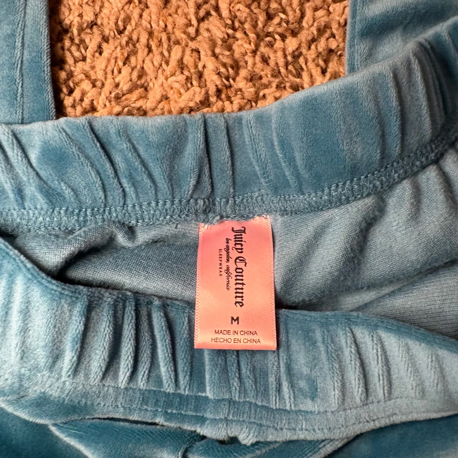 Juicy Couture Blue Velour Pants M Rhinestone Logo