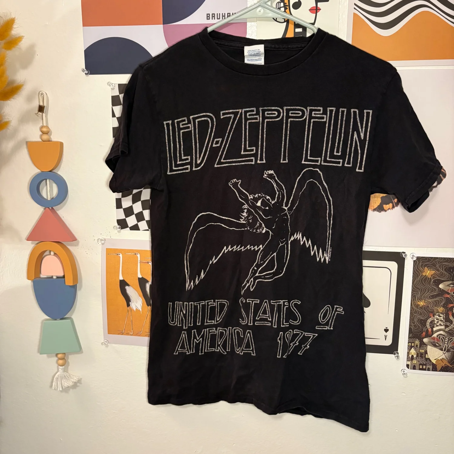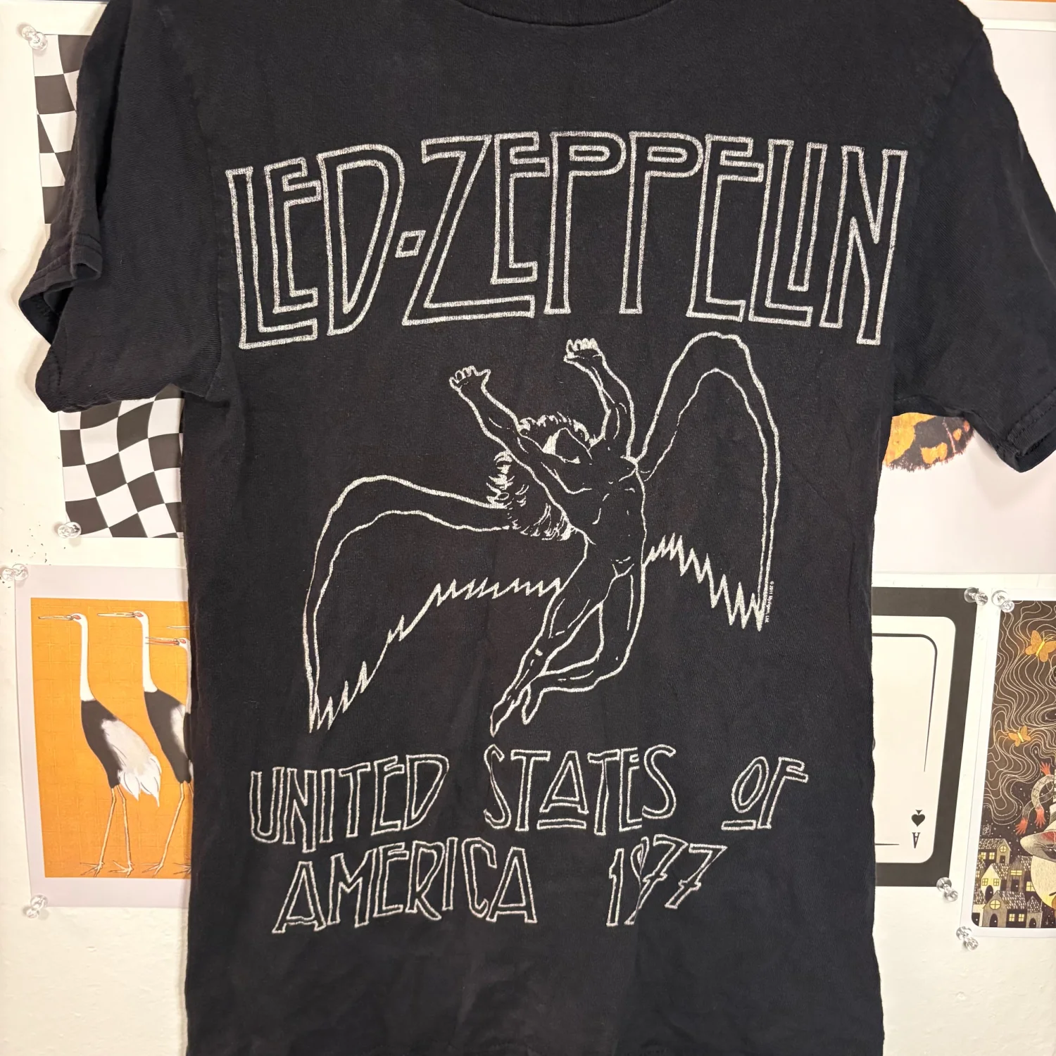 Led Zeppelin Graphic Tee — Black & Cream (Small) Classic Led Zeppelin tee in a black and cream colorway with a naturally worn‑in feel. Soft cotton, easy to style, and perfect for fans or anyone who loves a neutral rock‑tee look. Size: Small Measurements: • Pit to pit: 15” • Length: 25.5” Condition: Gently worn with natural fading. No major flaws noted. A great everyday band tee that pairs effortlessly with denim, cargos, or layered under a flannel.