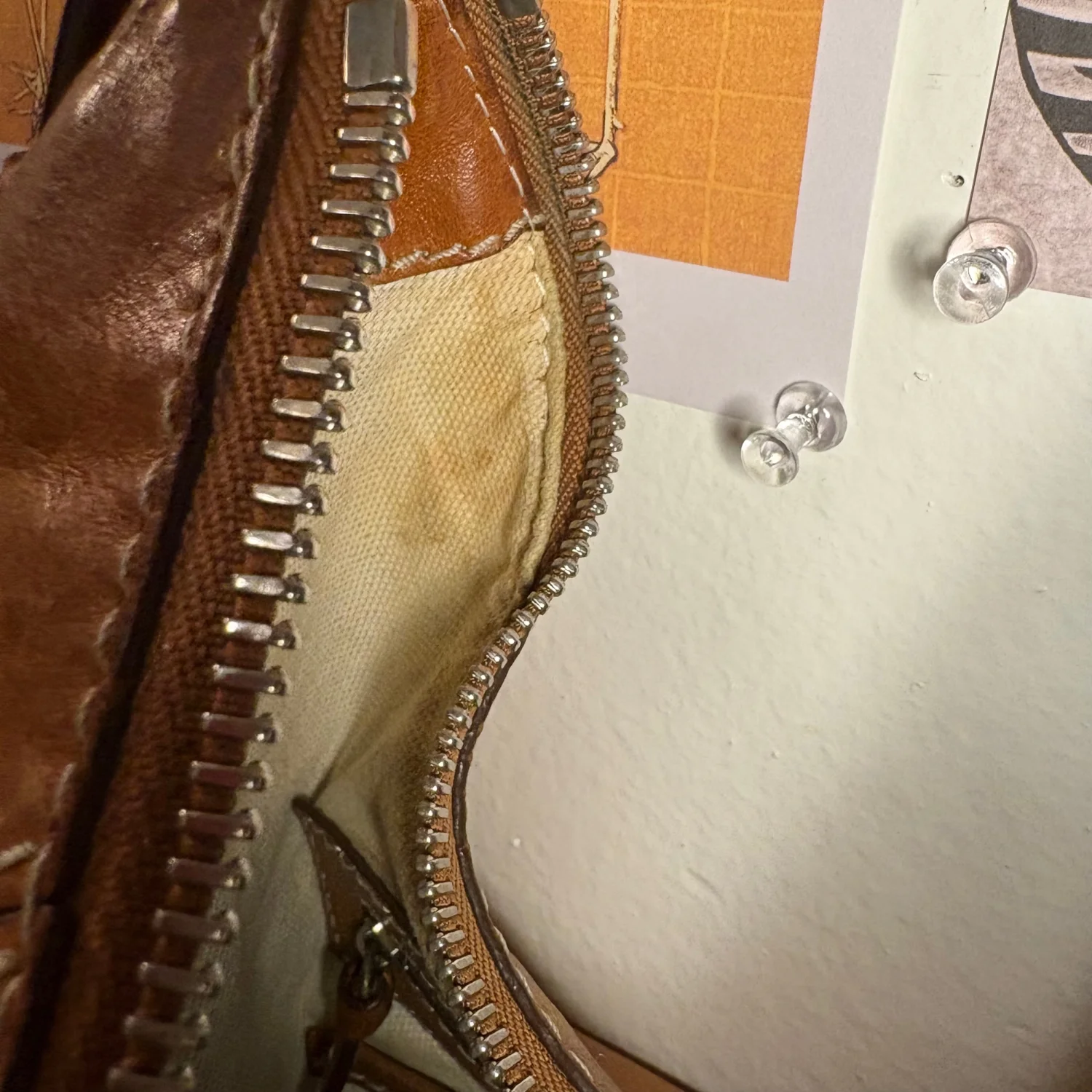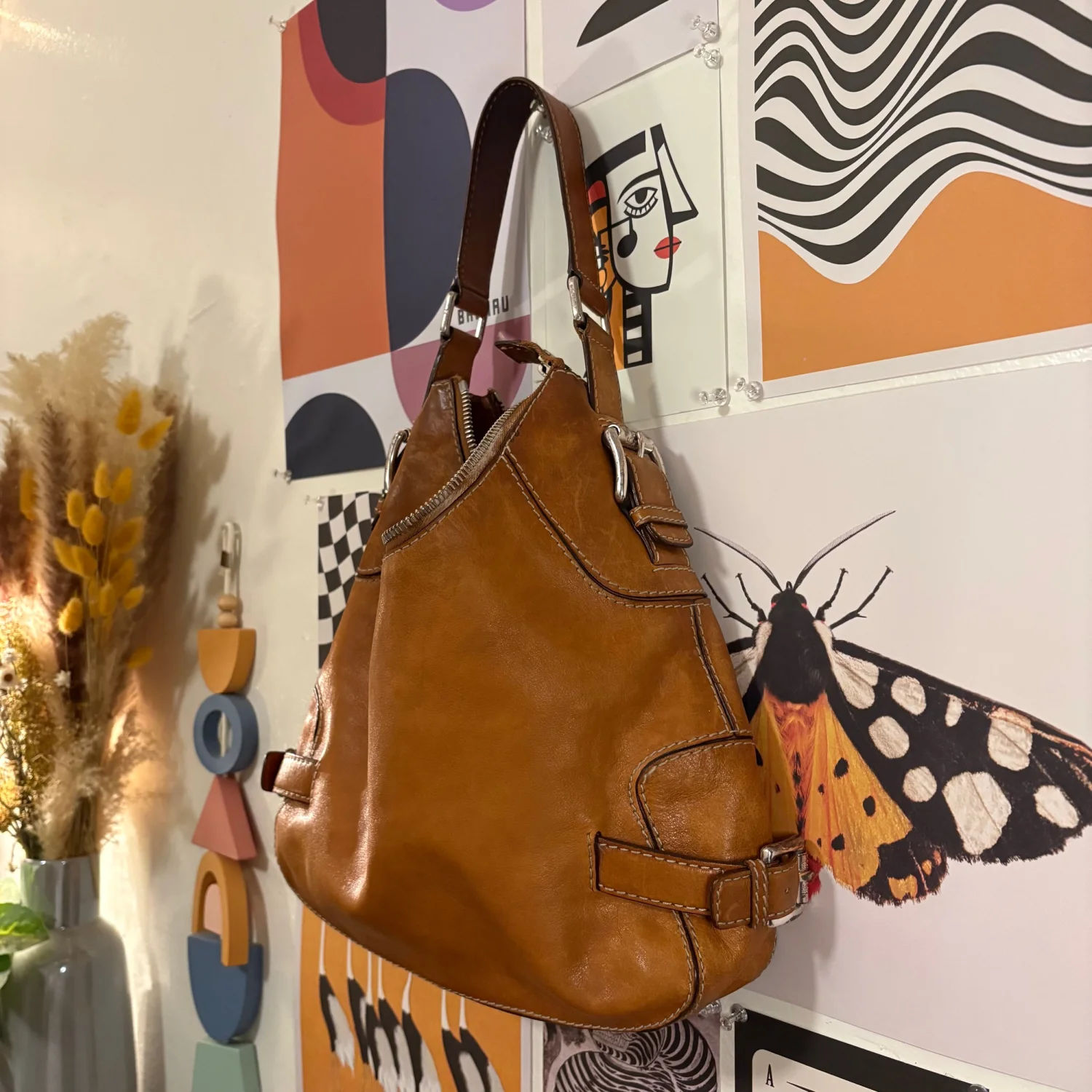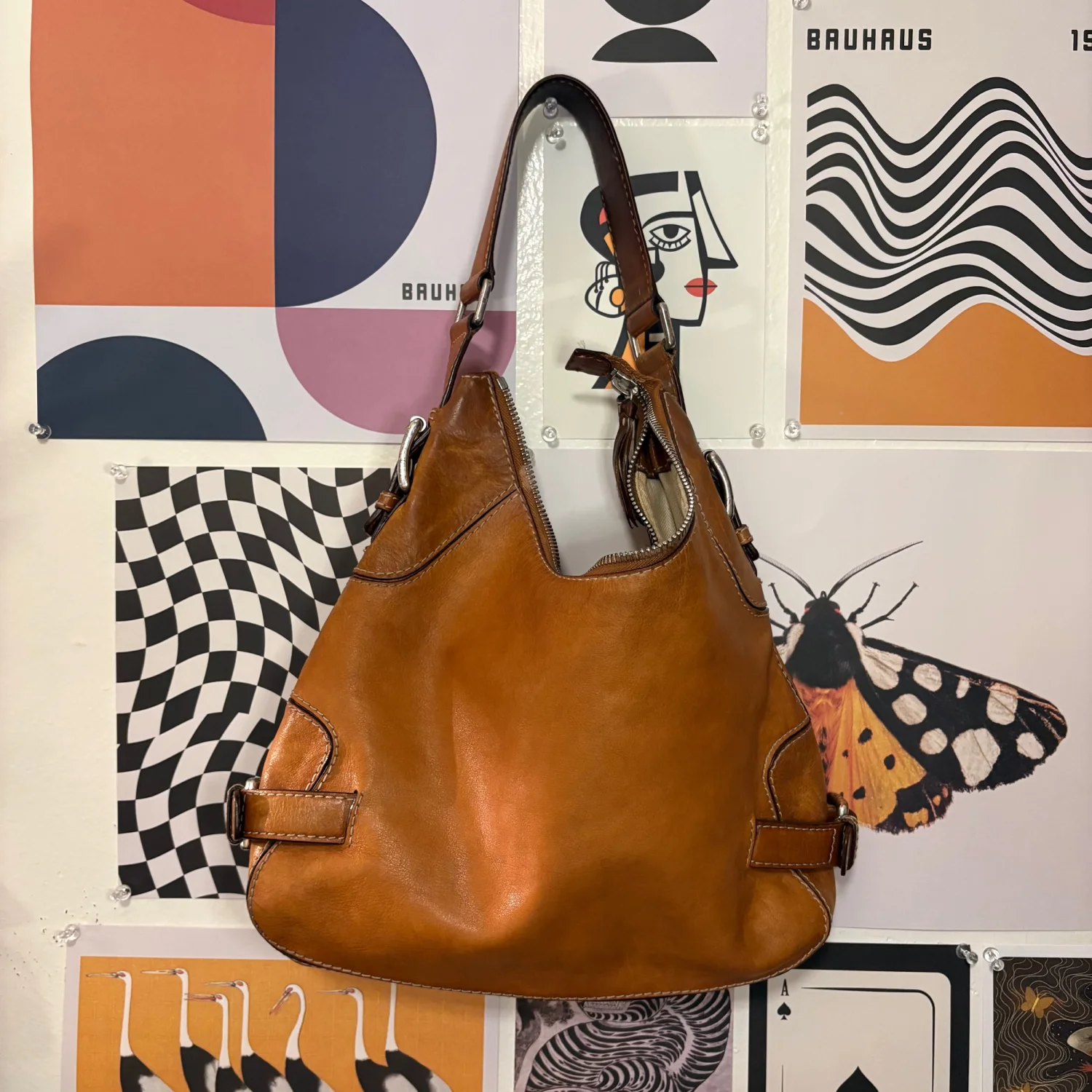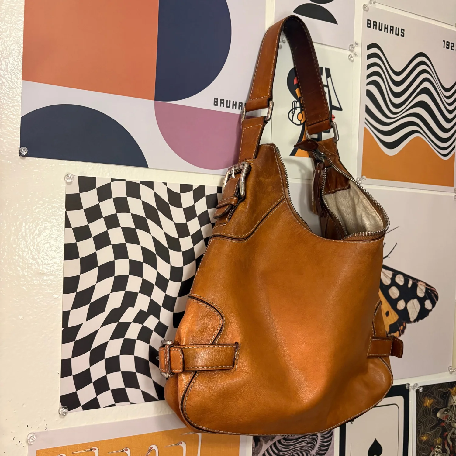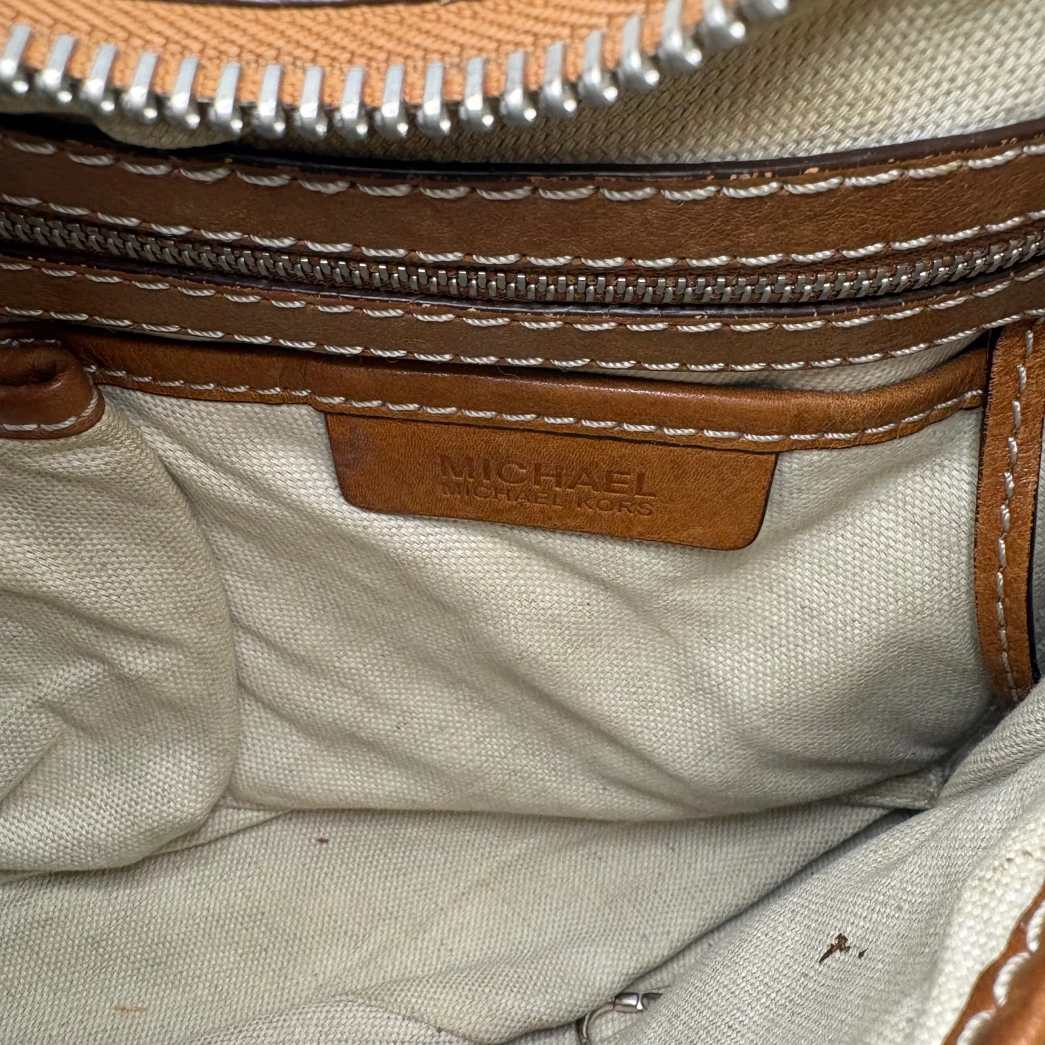 Michael Kors Slouchy Leather Shoulder Bag 👜✨ Classic meets effortless chic. This authentic Michael Michael Kors handbag is crafted from supple tan leather with contrast white stitching and silver-tone hardware. The slightly slouchy silhouette makes it versatile for everyday wear while still feeling luxe. • Brand: Michael Michael Kors • Material: Genuine leather with beige fabric lining • Color: Warm tan 🤎 • Hardware: Silver-tone buckles, rings, and zipper • Interior: Zip pocket + open compartments for easy organization • Condition: Discoloration around zipper from leather bleeding, no other stains. Fraying on zipper charm. Good condition. Perfect for styling with denim, slip dresses, or oversized blazers — a timeless piece that channels early 2000s Y2K vibes while staying modern. ♡ Fast shipping 📦 ♡ A collector-friendly staple with understated luxury ✨ Dimensions strap drop - 10.5 inches length - 12.5 inches depth - approx. 4 inches