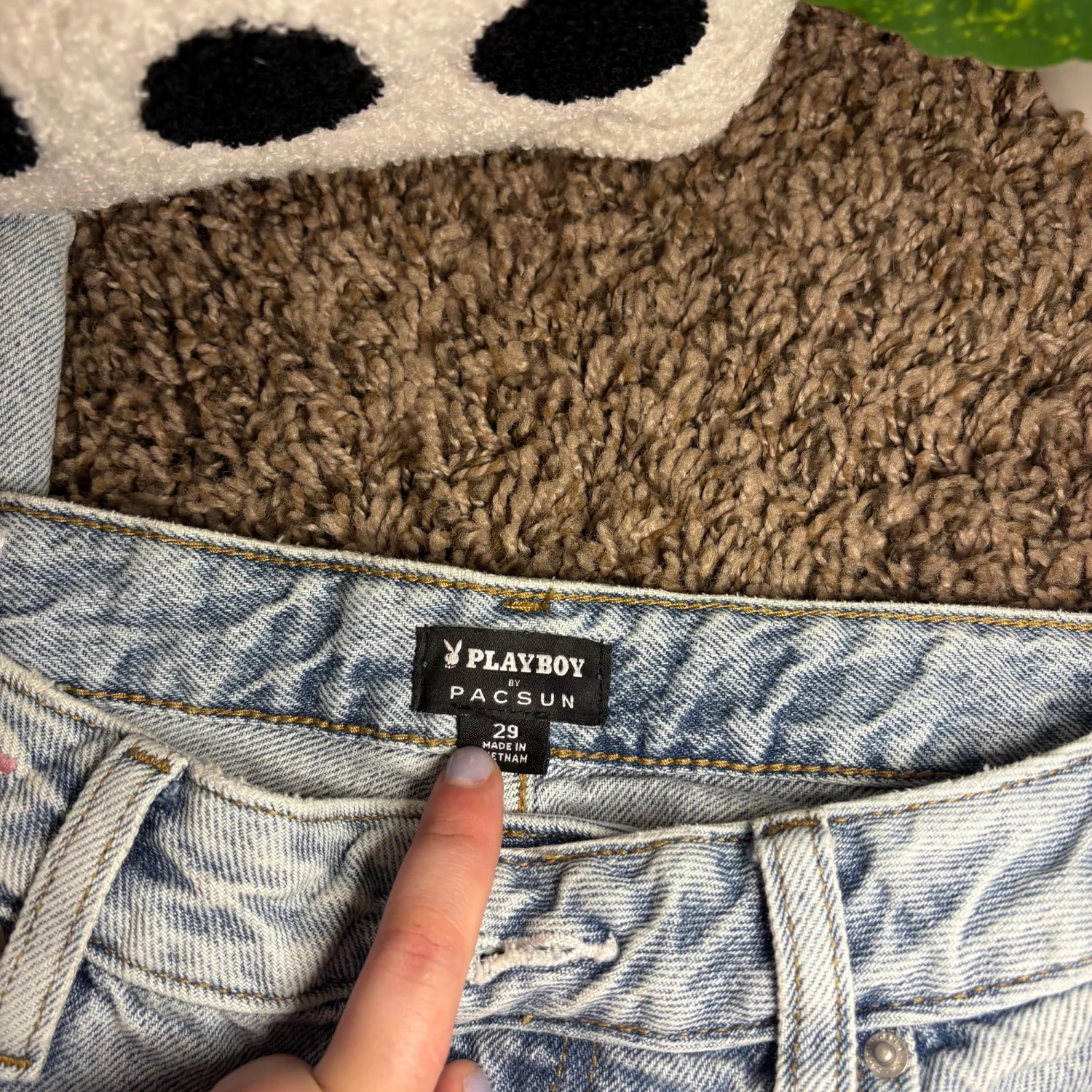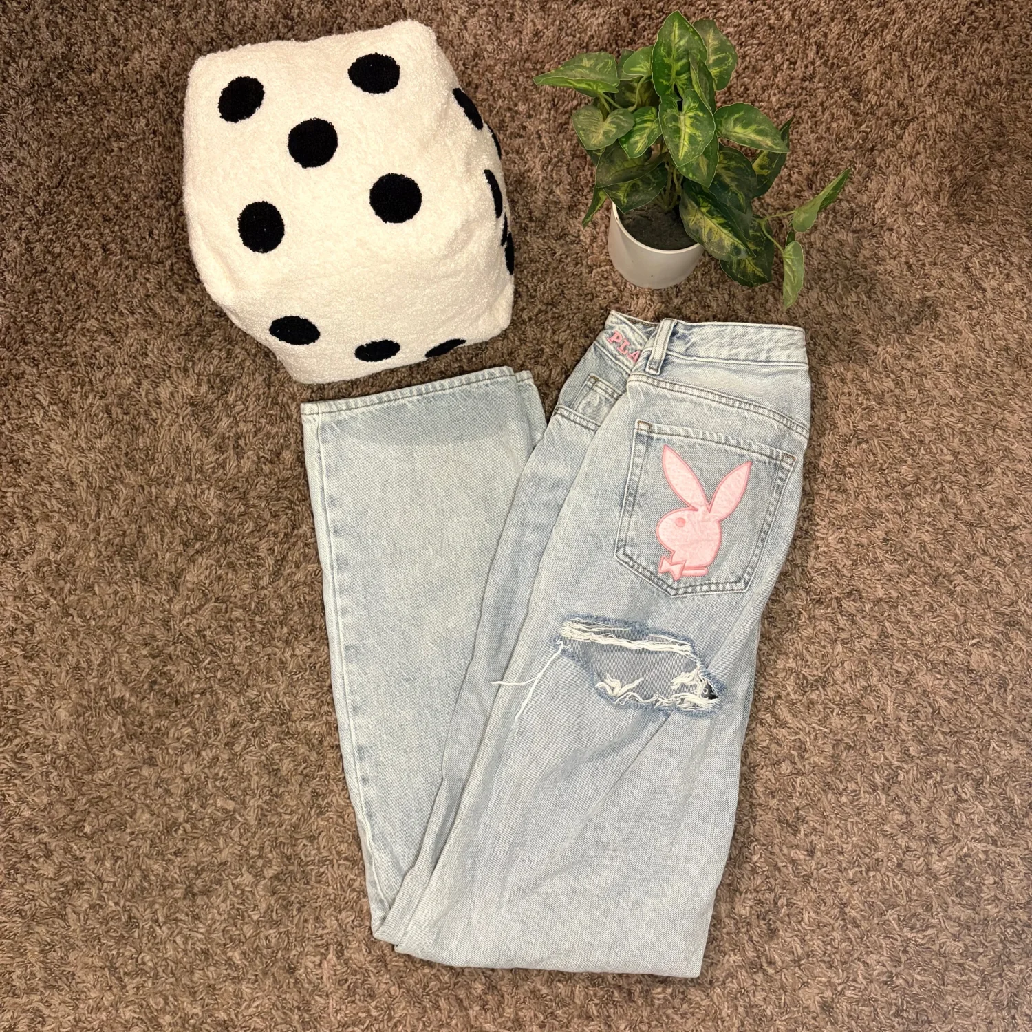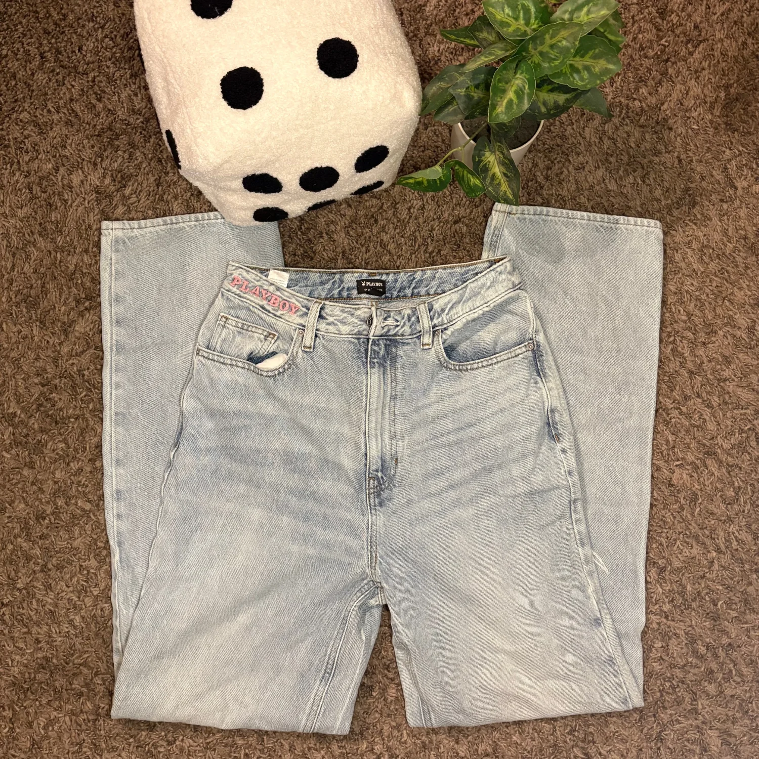 Playboy x PacSun High‑Rise Dad Jeans Size 29 | Light Wash | Relaxed Fit Such a cute and iconic collab 🩷 These high‑rise dad jeans feature a soft faded wash, relaxed straight leg, and a pink embroidered Playboy bunny patch on the back pocket. “PLAYBOY” stitched across the waistband adds the perfect branded detail. Distressed back pocket for that lived‑in Y2K vibe. • High‑rise fit • Pink bunny patch + pink waistband embroidery • Distressed back pocket detail • Light wash denim • Made in Vietnam • Size 29 Easy to style with baby tees, cropped knits, or oversized hoodies. Bundle to save — my closet is full of curated Y2K + vintage pieces.