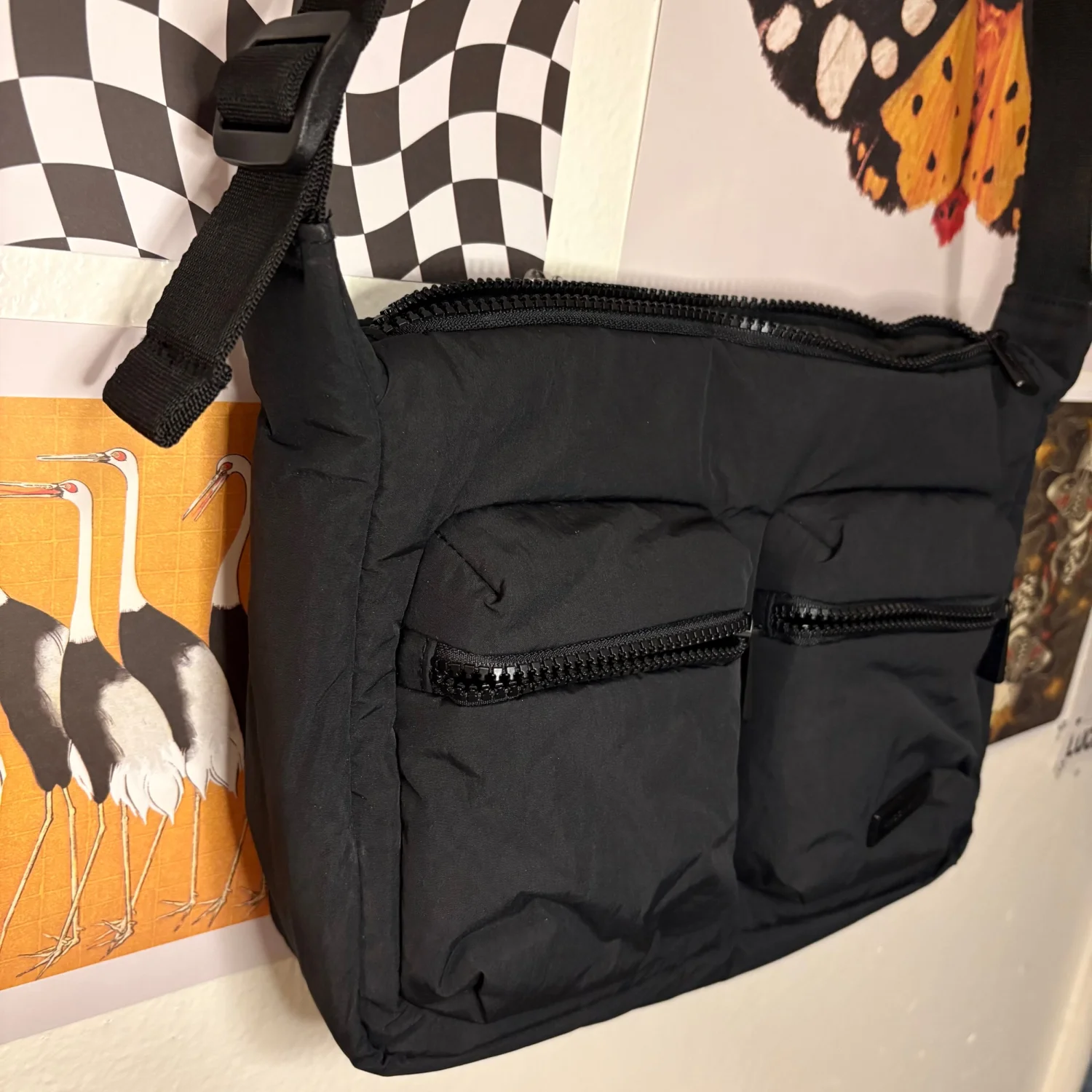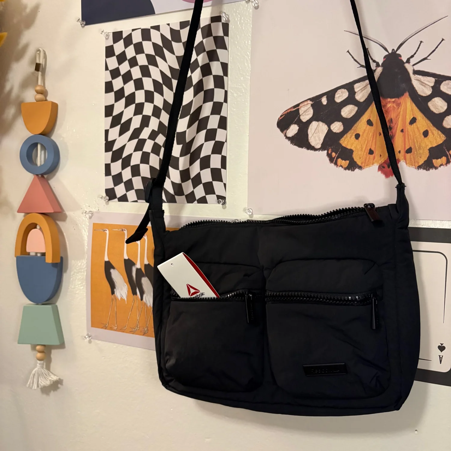 Reebok EVE 5L Puffy Crossbody Bag š¤ Sporty nostalgia meets modern utility ā this Reebok shoulder bag has a padded, puffy silhouette that feels like Reebok meets Baggu. Crafted in black nylon with dual zip compartments, tonal branding, and an adjustable strap with buckle. Interior features Reebok logo lining and a stitched pocket. ⢠Capacity: 5L ⢠Dimensions: H8ā x W12ā x D4ā ⢠New with tags (tags included but not attached) ⢠Excellent condition ā zippers smooth, lining pristine Perfect everyday size ā fits phone, wallet, water bottle, and more. A versatile piece that works for streetwear styling or casual daily carry.