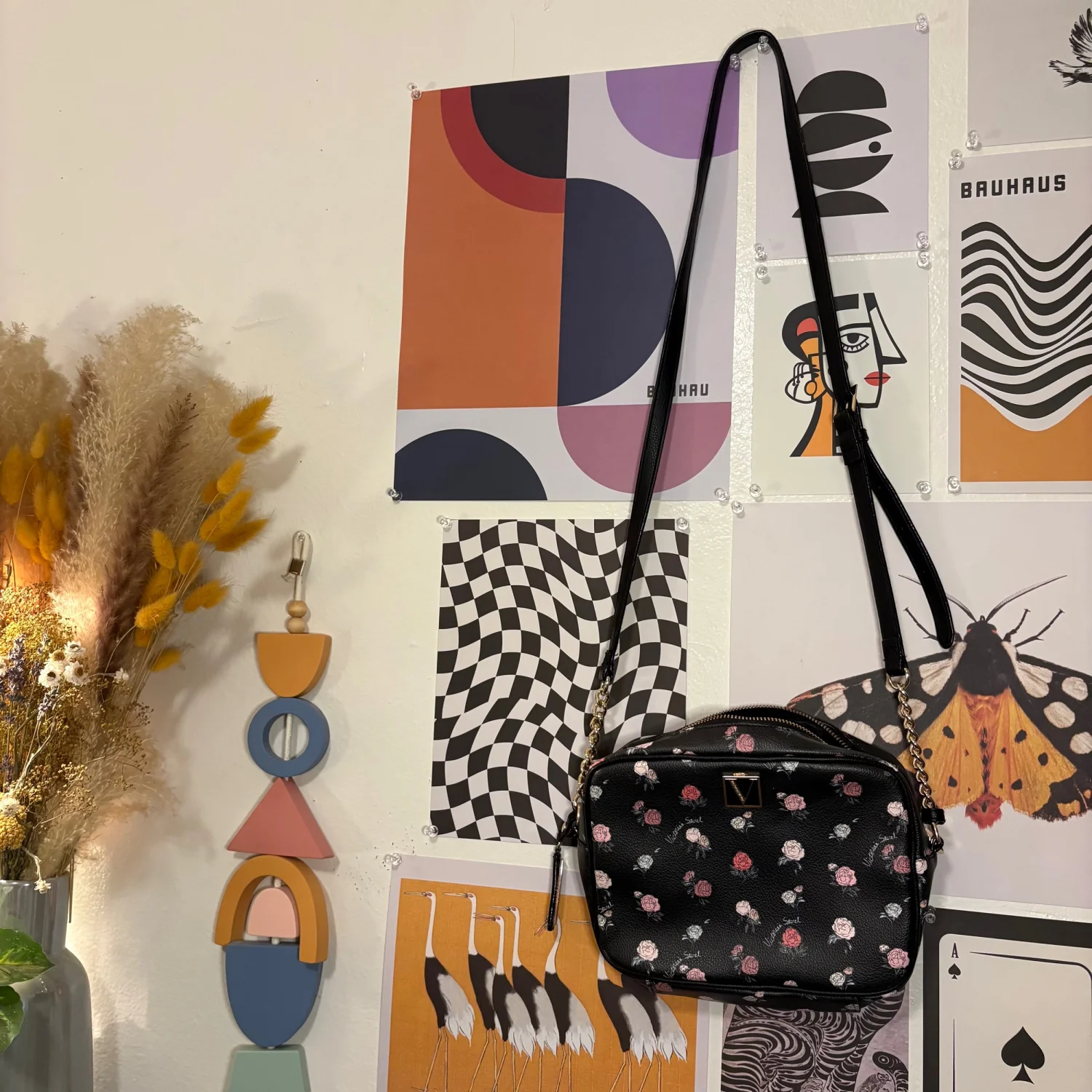 🖤 Victoria’s Secret Bond Street Floral Crossbody 🖤 Romantic meets rock chic in this black faux leather crossbody, blooming with blush and ivory roses. Features gold-tone chain strap, zip closure, and signature “V” emblem with rhinestone accents. Interior lined with stripe print for a luxe surprise. ✨ Branded with “Victoria’s Secret Bond Street London” metal tag — a nod to its elevated design roots. ✨ Perfect size for essentials: phone, wallet, gloss, and a little attitude. ✨ Excellent condition with minimal wear; ready to turn heads. Style tip: Pair with a leather jacket and vintage denim for a dreamy-meets-edgy vibe.