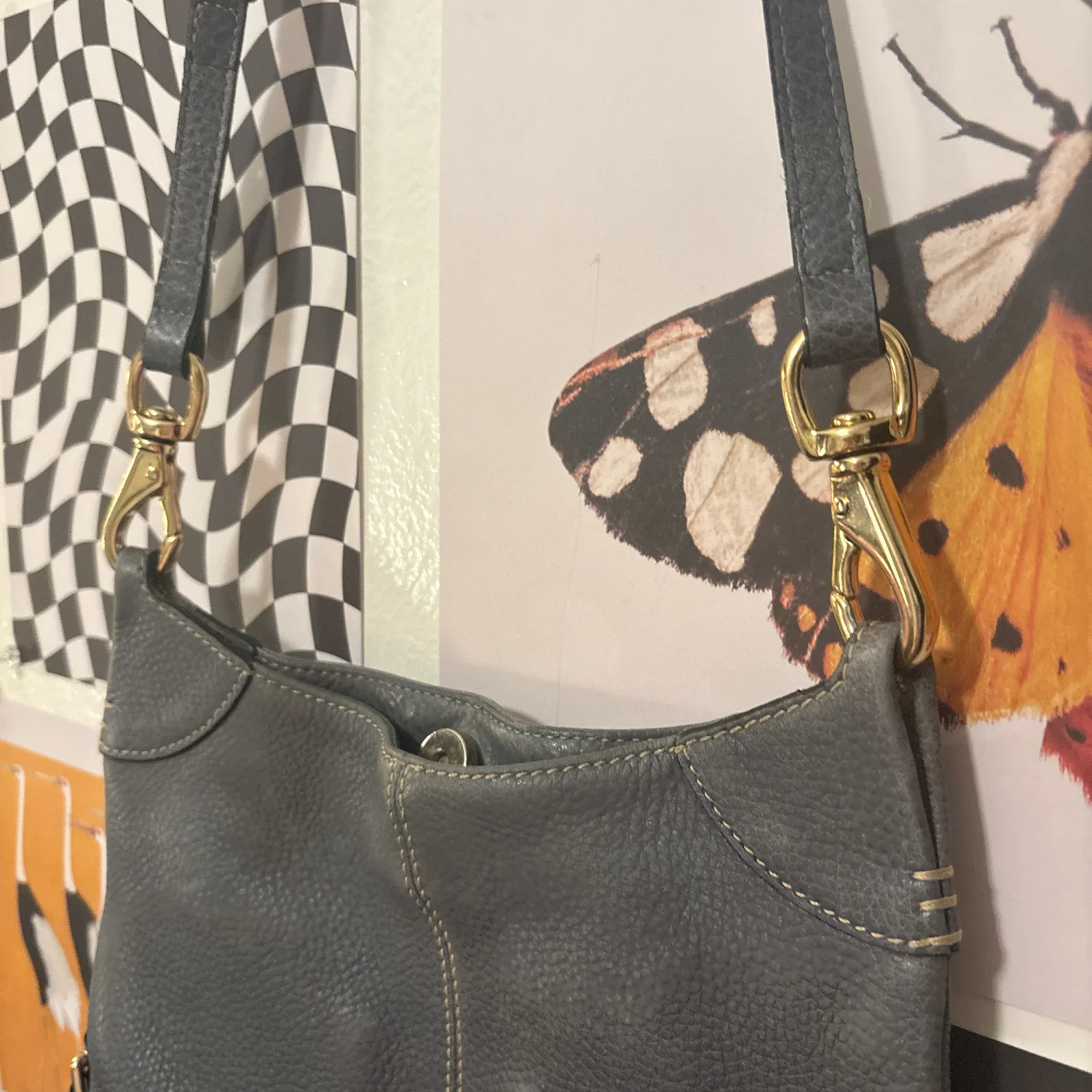 Vintage Dooney & Bourke blue shoulder bag with gold hardware #preppy #dooneybourke #vintage #vintagepurse #vintagebag Gorgeous vintage Dooney & Bourke in a rich blue with shiny gold hardware ✨ Classic structured shape with that timeless D&B logo and sturdy adjustable strap. Perfect size for everyday – fits your phone, wallet, keys, and a few extras without feeling bulky. Details: • Deep blue exterior with gold-tone hardware • Vintage Dooney logo + charm • Zip closure to keep everything secure • Inside pockets for easy organizing Such a cute piece for Y2K, preppy, or classic vintage vibes. Light vintage wear only (handle and throughout body), tons of life left. 💙 measurements (taken flat) • length - 10.5 inches • depth - approx. 2 inches • height - 9 inches • strap drop (currently) - 23 inches royal blue, structured handbag, gold accents, vintage charm, zip closure, organizational pockets, classic silhouette, retro style, everyday bag, timeless design