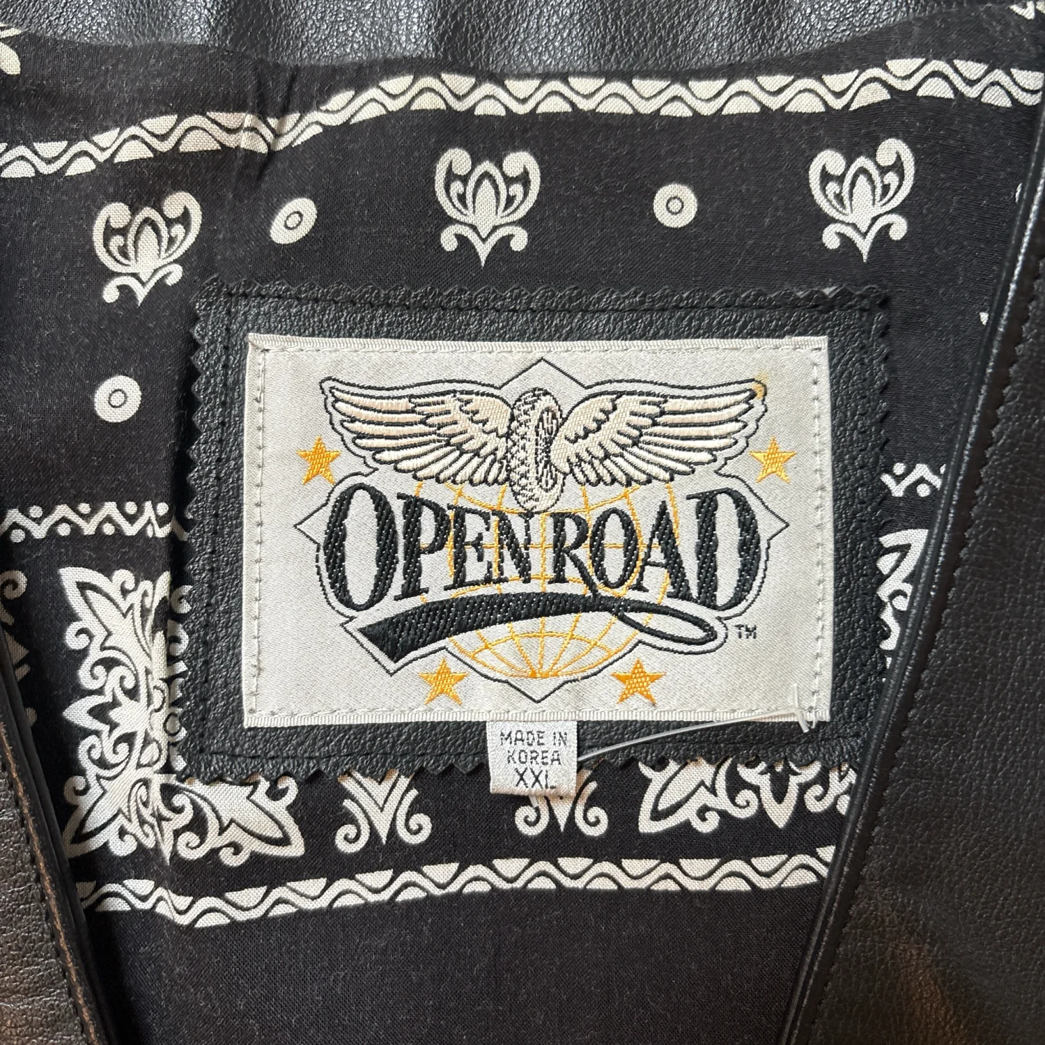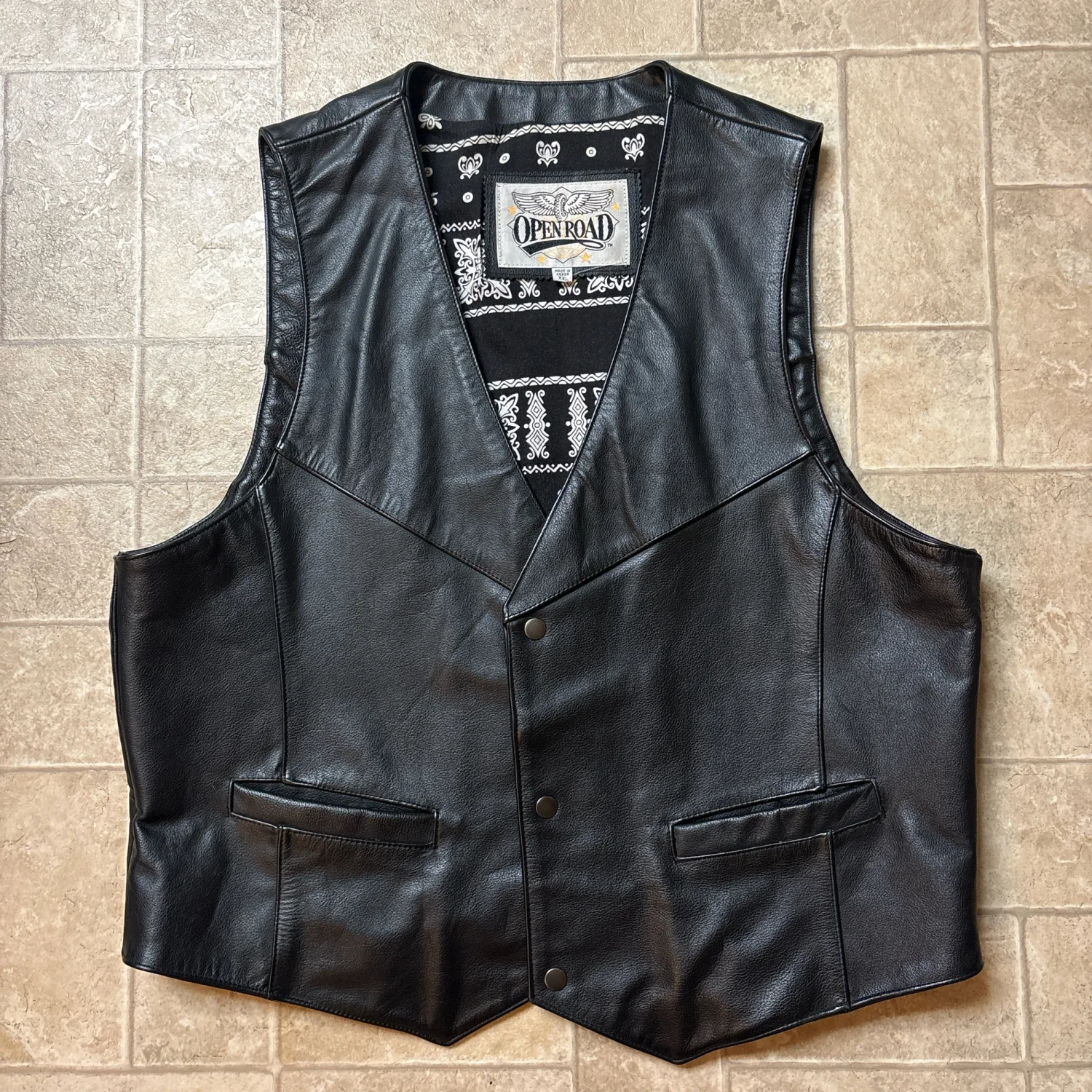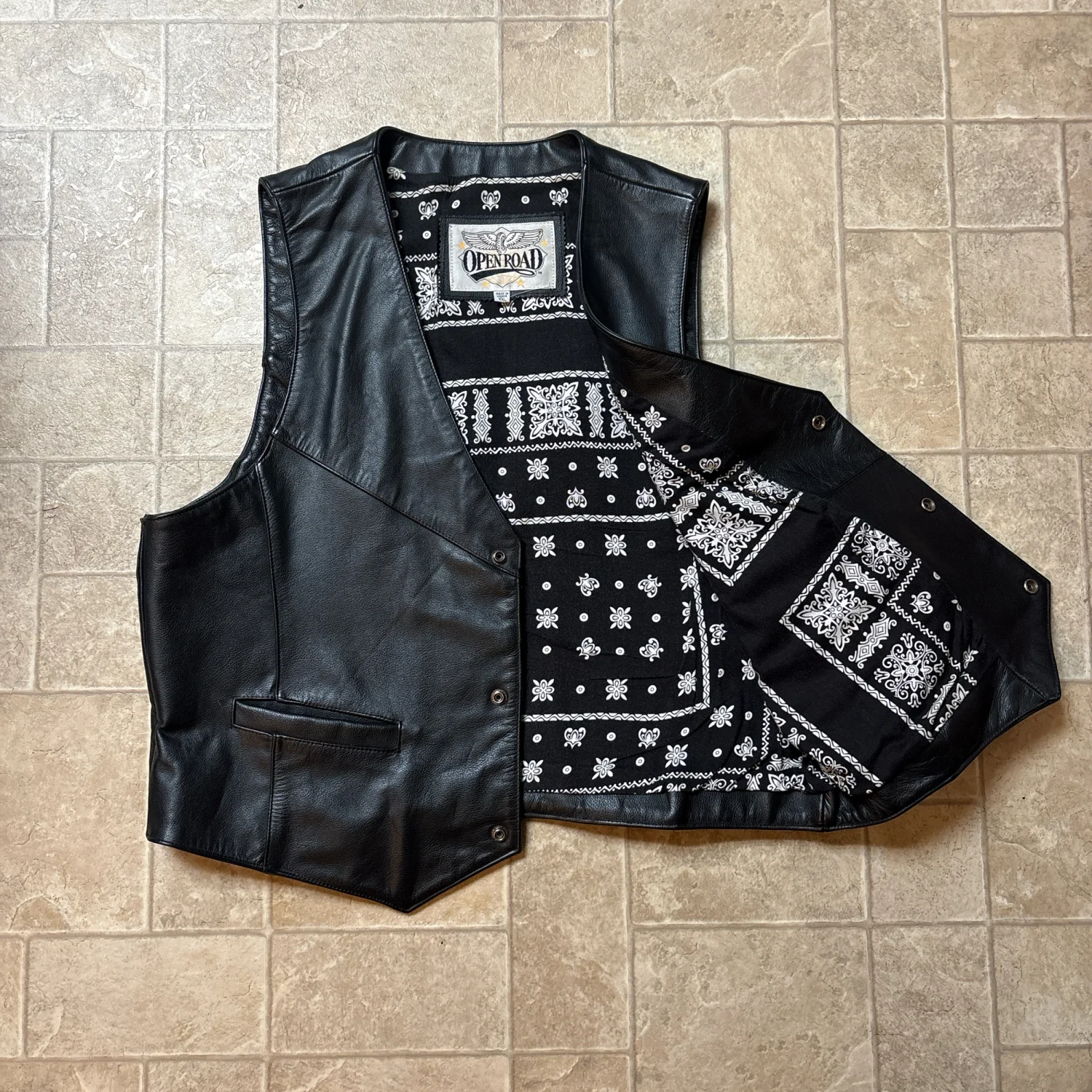 Vintage Open Road Leather Vest — Bandana Lining & Snap Buttons