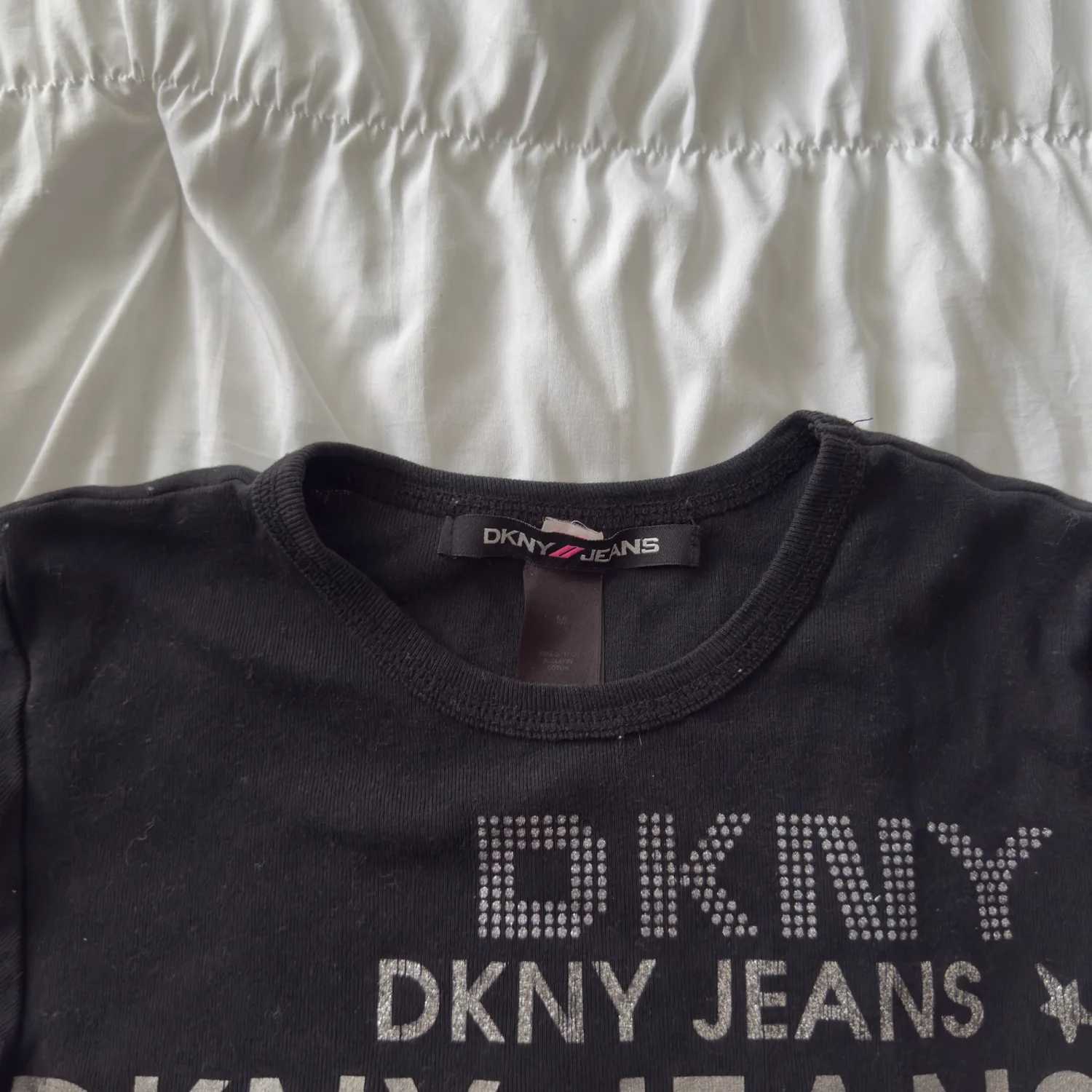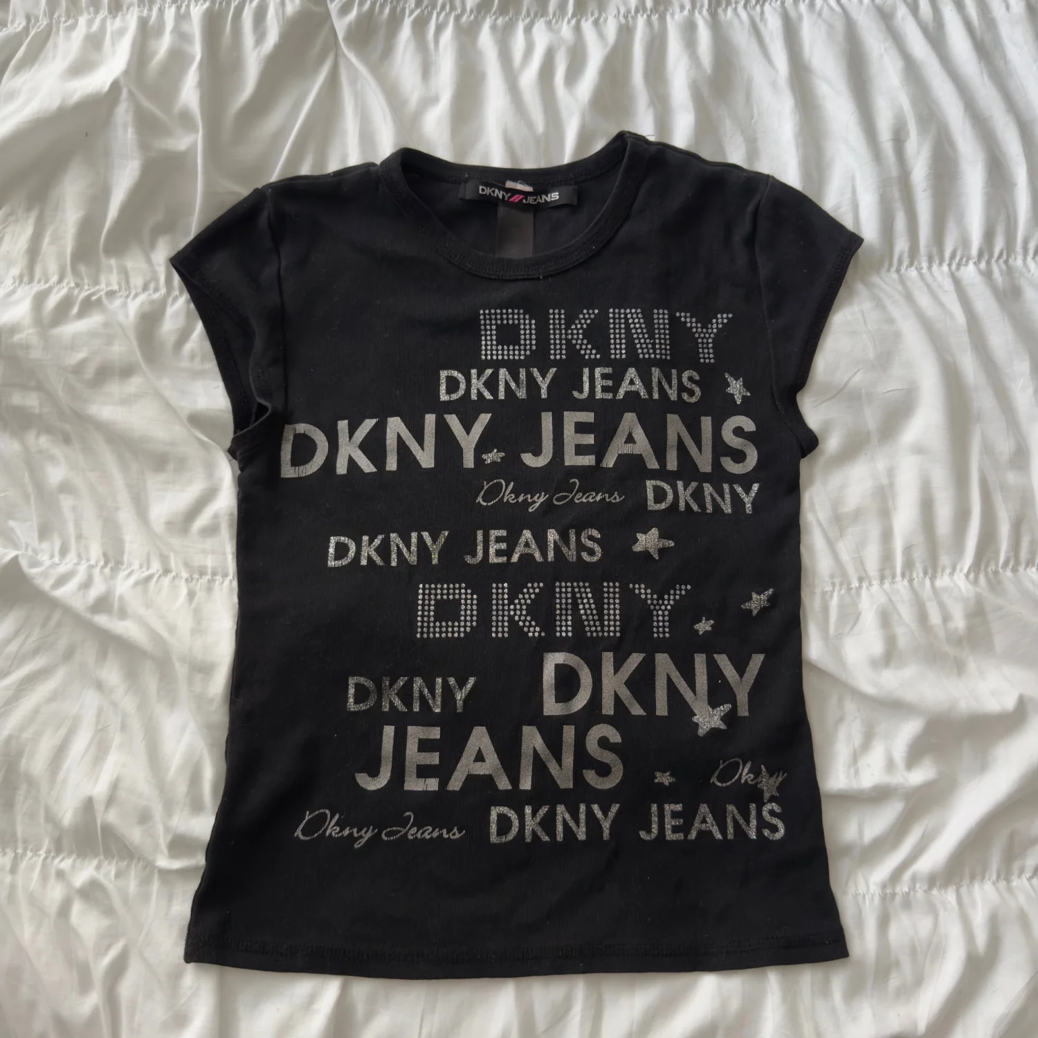 DKNY black baby tee with silver rhinestone logo