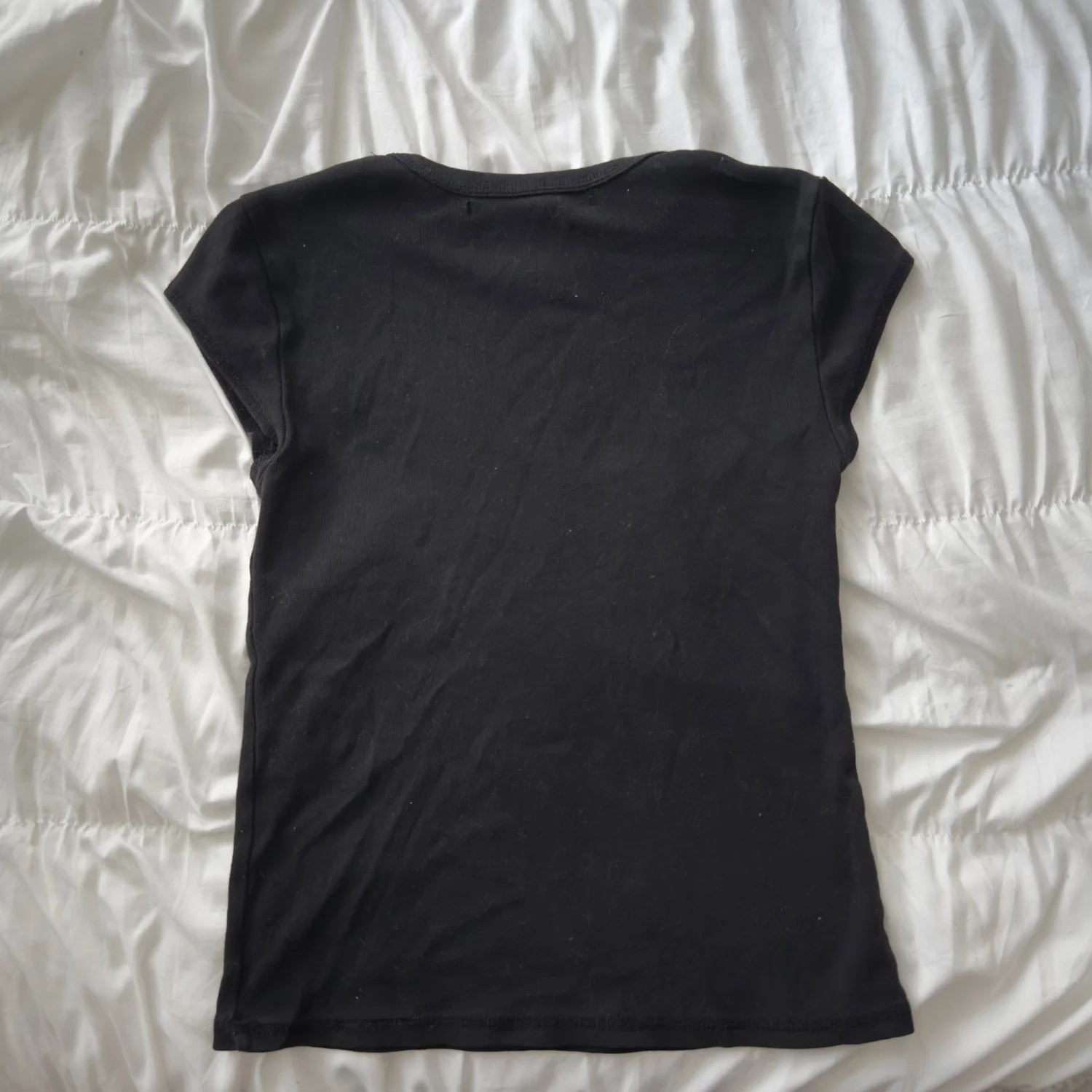 -has a hole on the tag area -has some light staining on the front -says it's a medium, fits like a small #y2k #rhinestone #modeloffduty #whimsigoth #mcbling