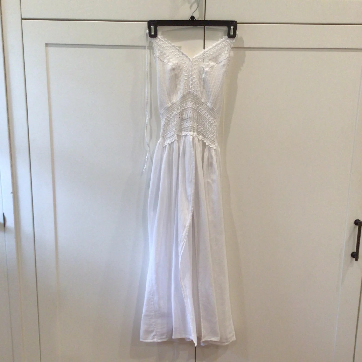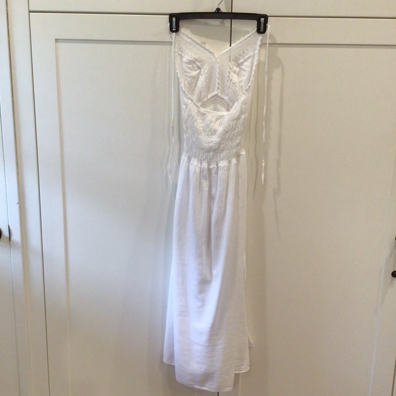 Seaspice Arabella panel high split midi dress in great, pre-owned condition. No holes no stains. 100% Peruvian cotton Crochet mesh bodice with intricate panel detailing and dual high side splits. Adjustable tie-back halter and smocked back. Size S Approx 45” length 12” chest