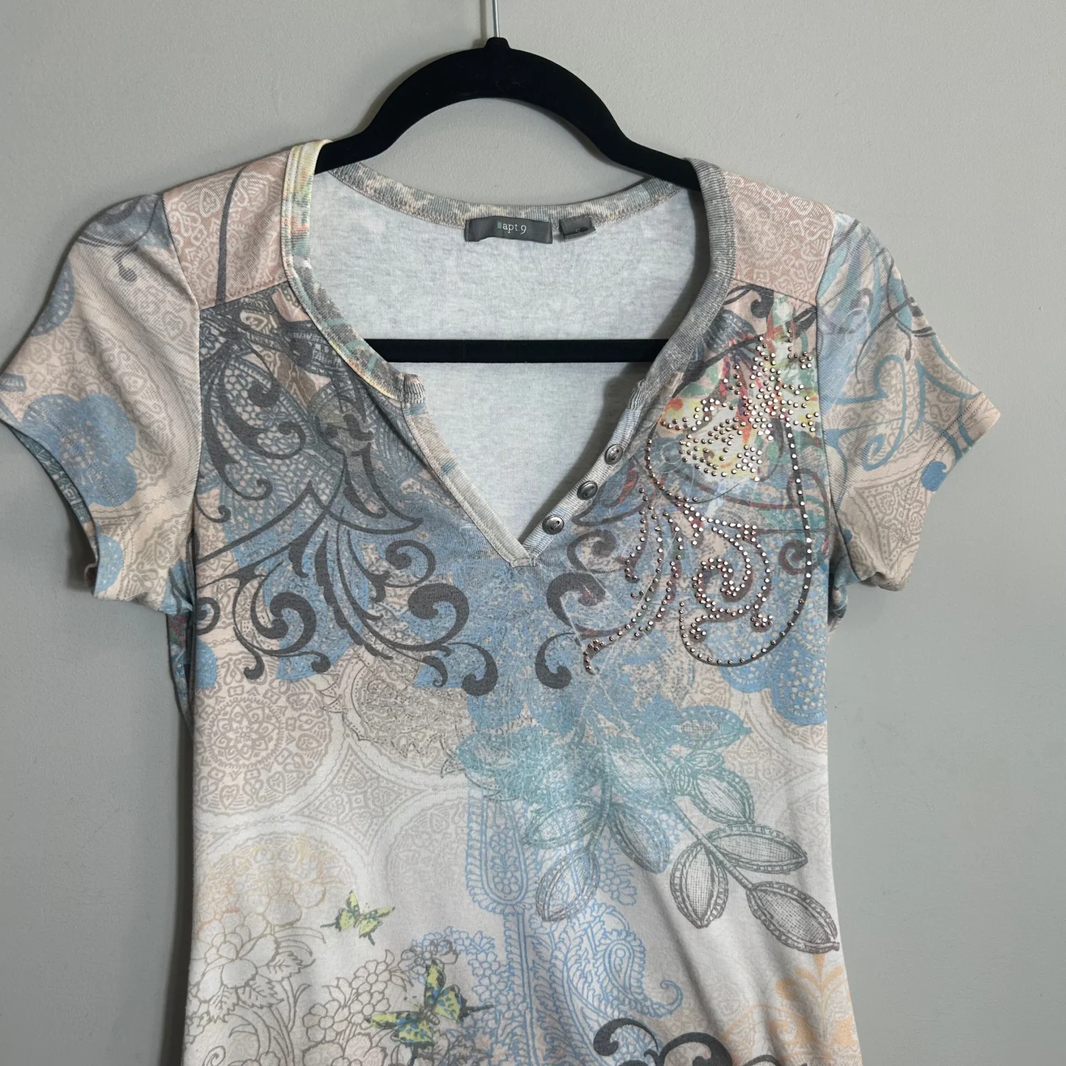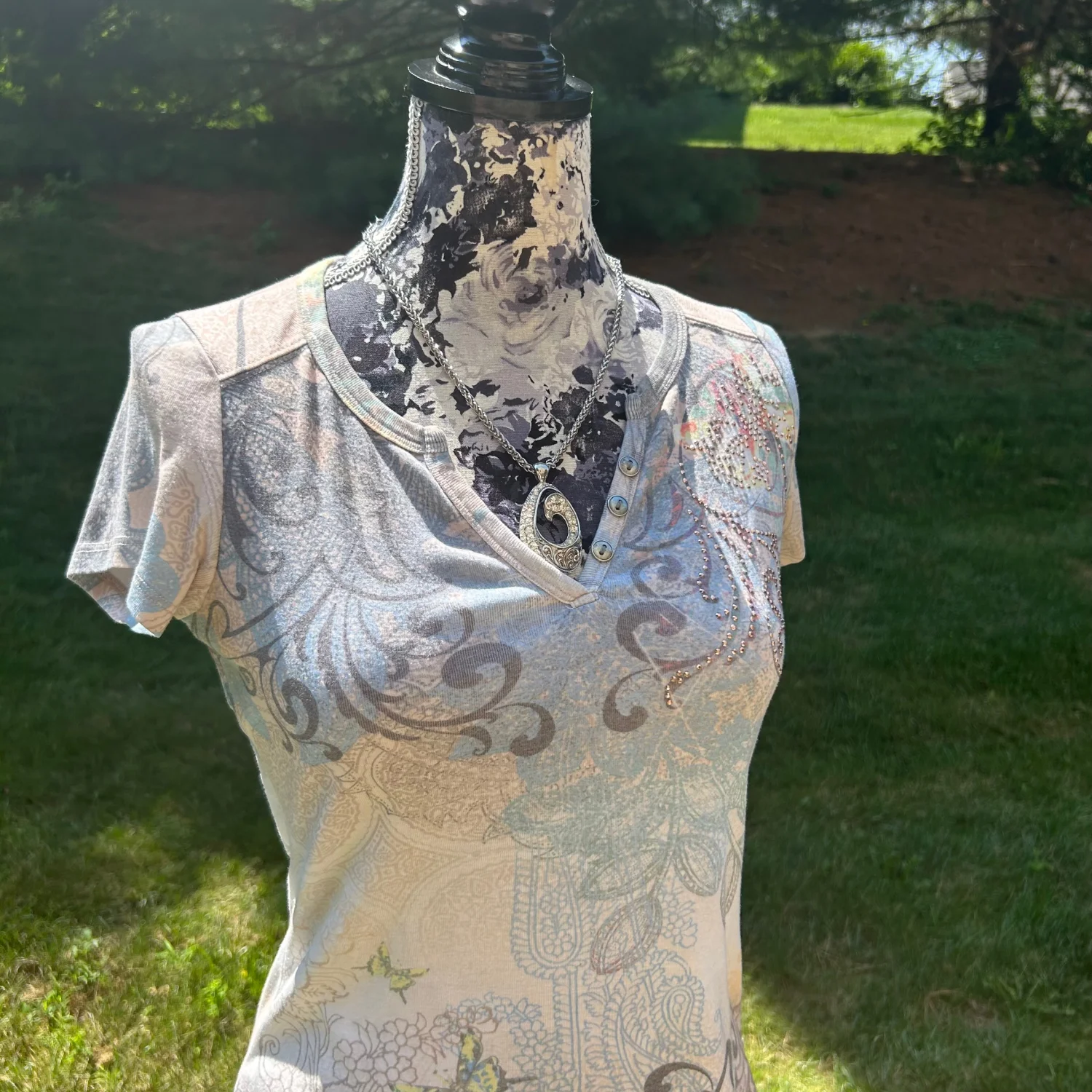 Women’s size small good condition short sleeve tattoo floral art t shirt