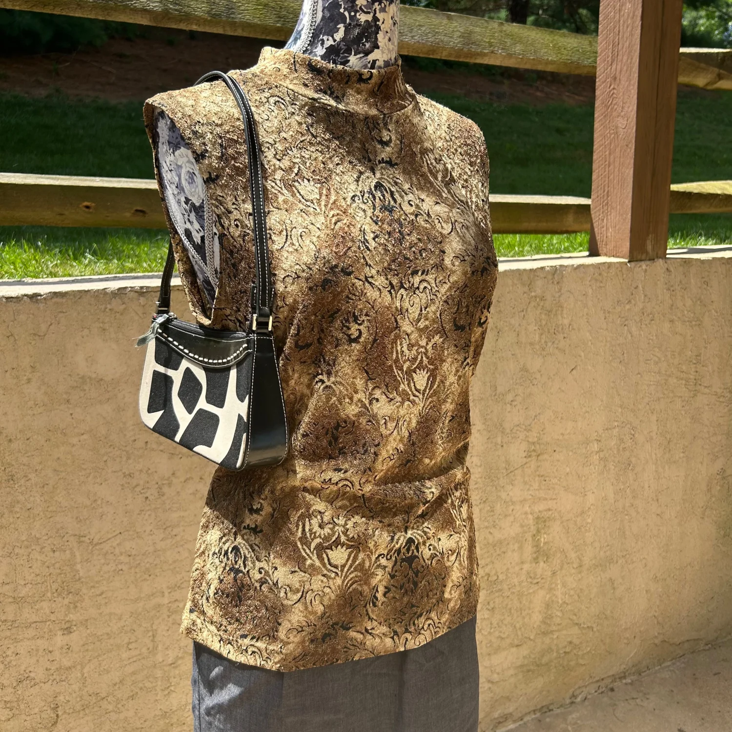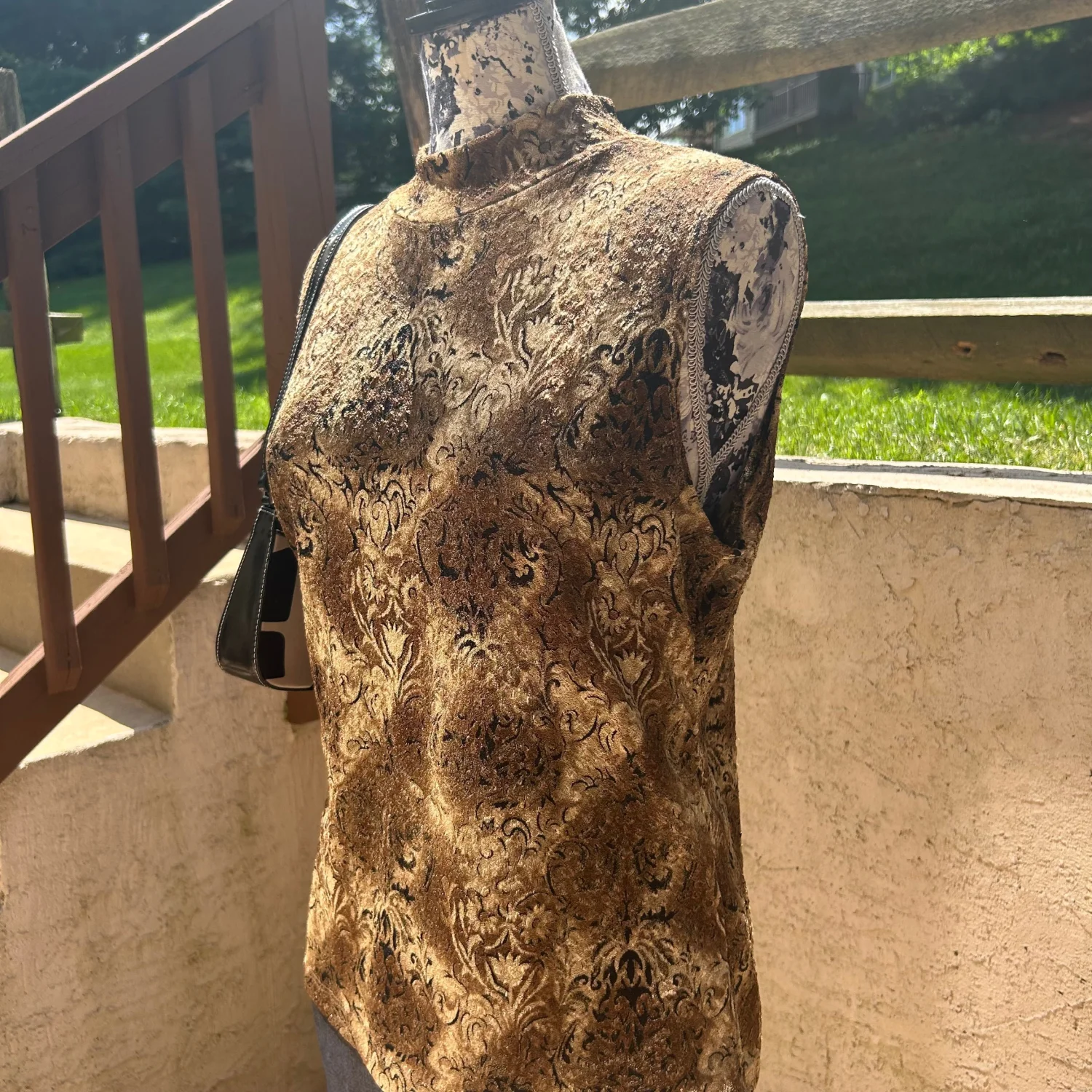 Christopher & Banks brown and black sleeveless vintage Y2K high neck top Size XL Measurements in photos