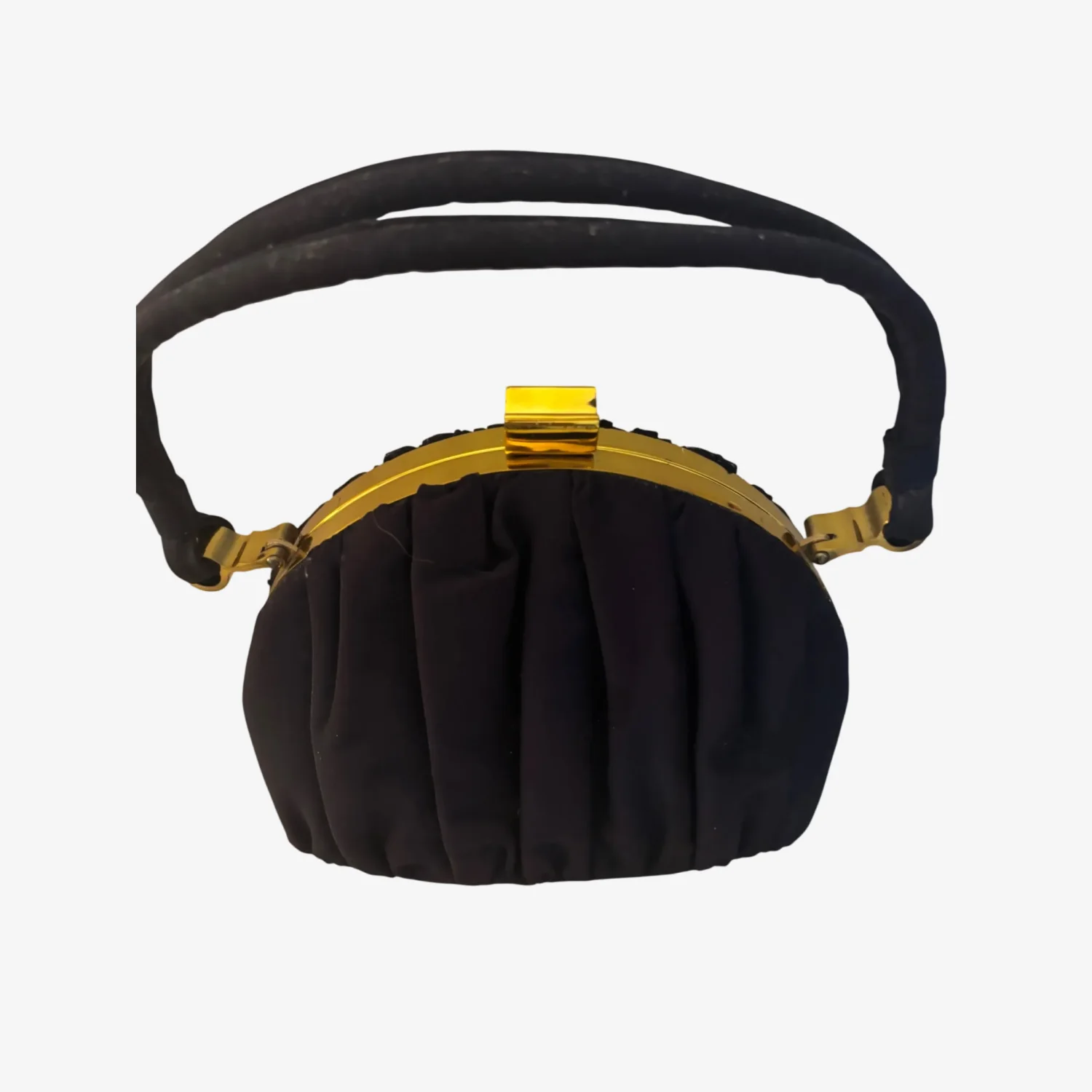 Need a statement piece!? Grab this Vintage bag by Ingber. 1940s Black Grosgrain Bag with Gold Frame and Matching Purse - #vintagepurse #ingber