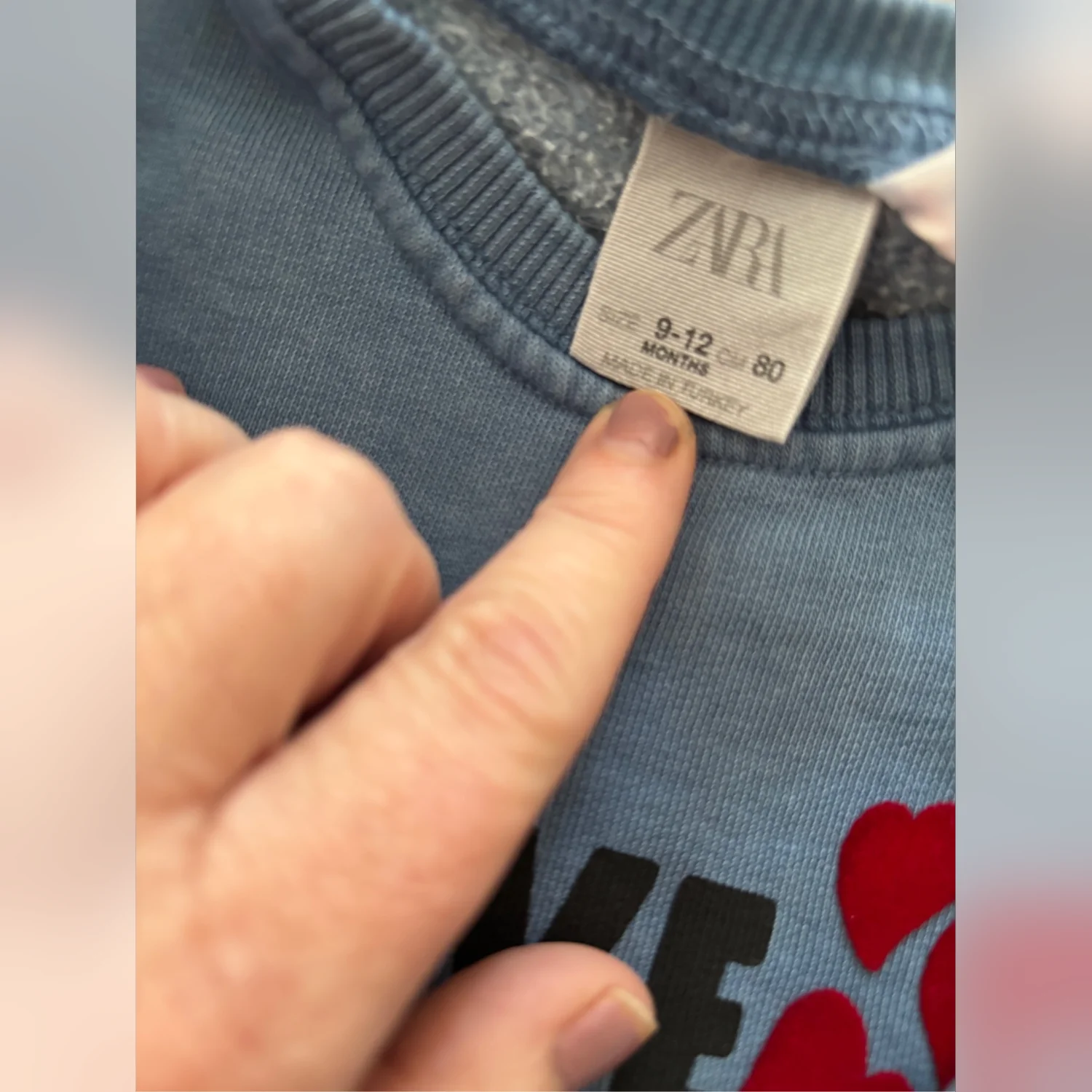 Zara Love what you care for sweatshirt with flocked hearts 9-12 Months