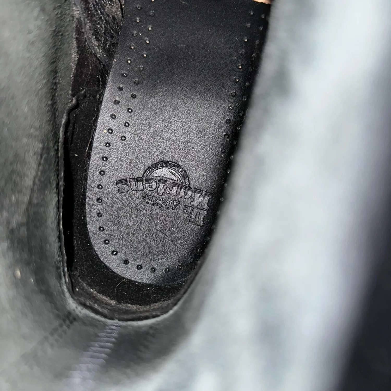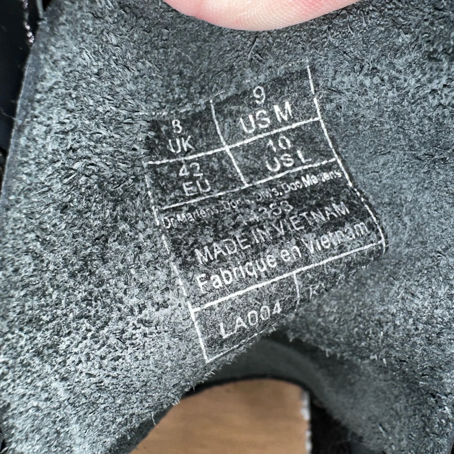 The perfect pair of Docs doesn’t exi…. Enter these 1460s in mono black. So stunning! Ordered for myself and they’ve never been worn. There is some dust on them in spots from sitting. Replacement box. Men’s 9/Women’s 10. New in replacement box.