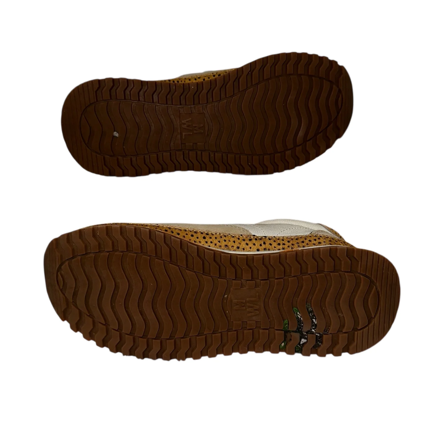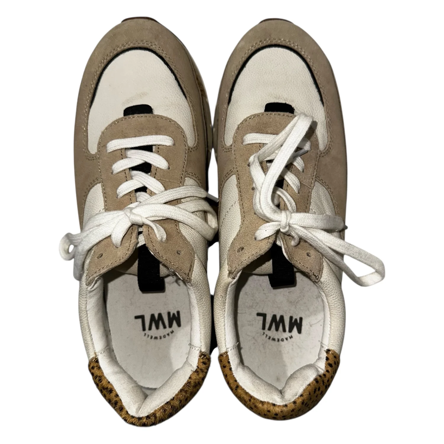 Stylish MWL sneakers featuring a beige and white color scheme with spotted calf hair accents m. These lace-up casual shoes are perfect for everyday wear, offering both comfort and a trendy look. Made from a combination of suede and canvas materials. Ideal for a fashion-forward casual outfit. #casual #calfhair #leather #preppy #unisex