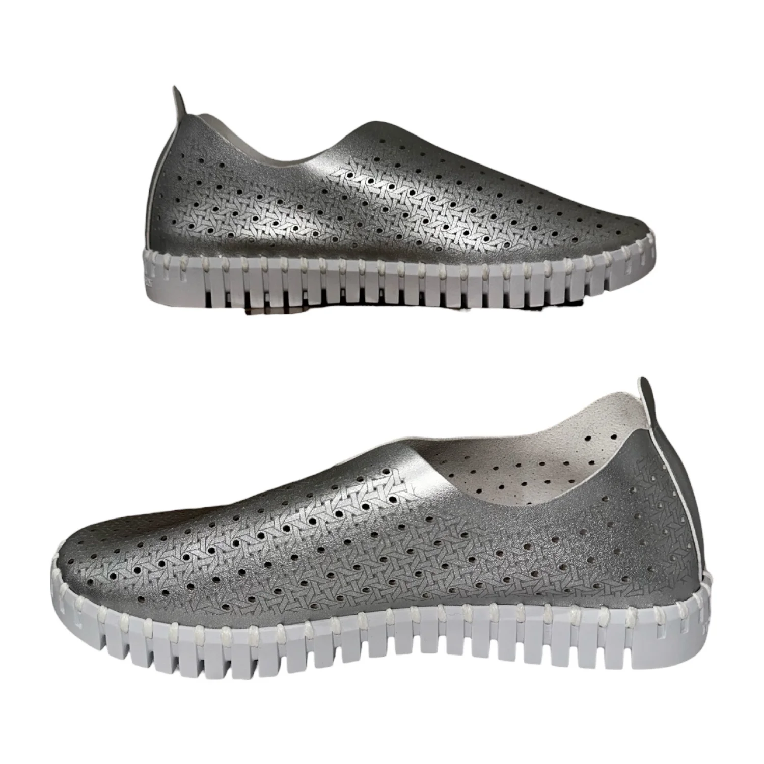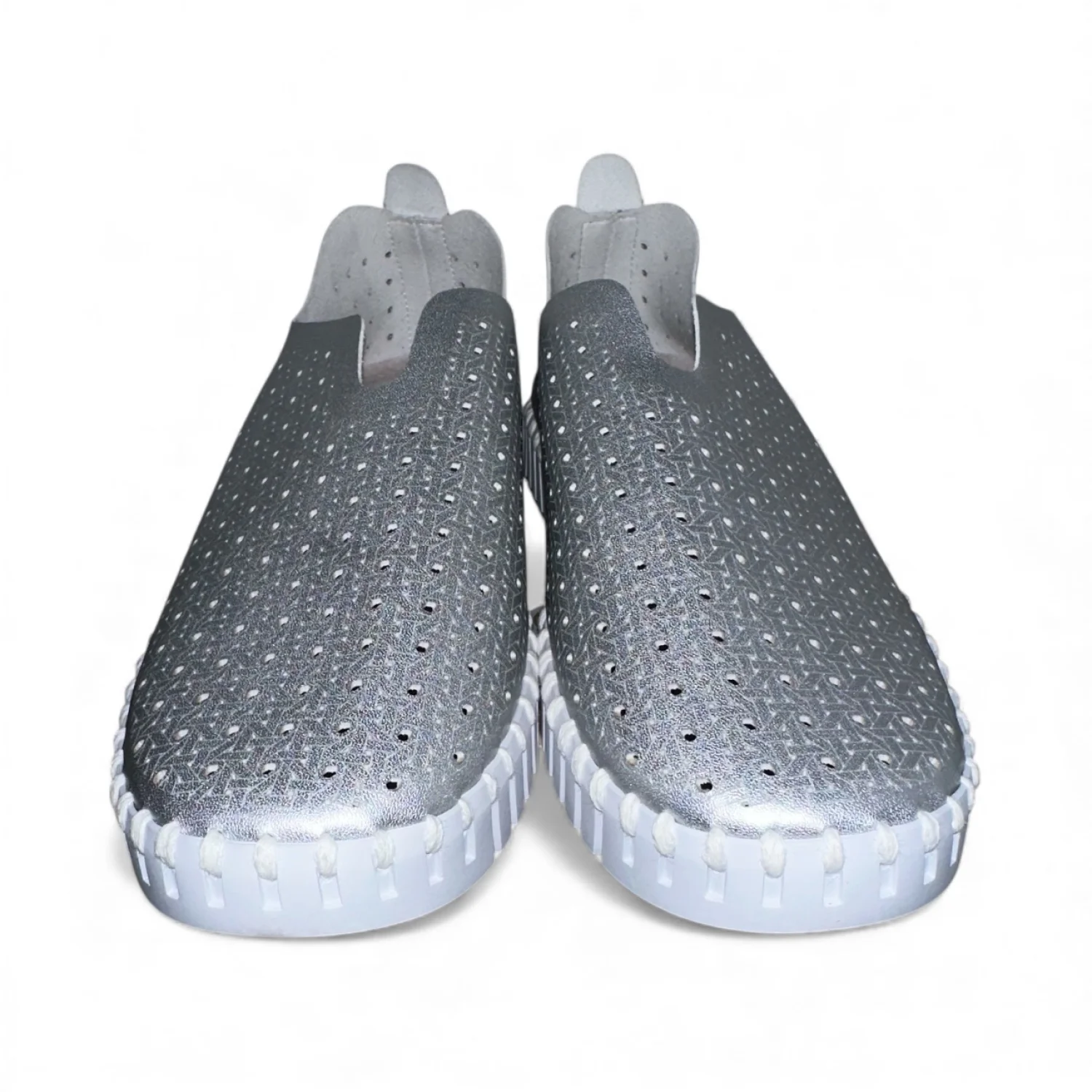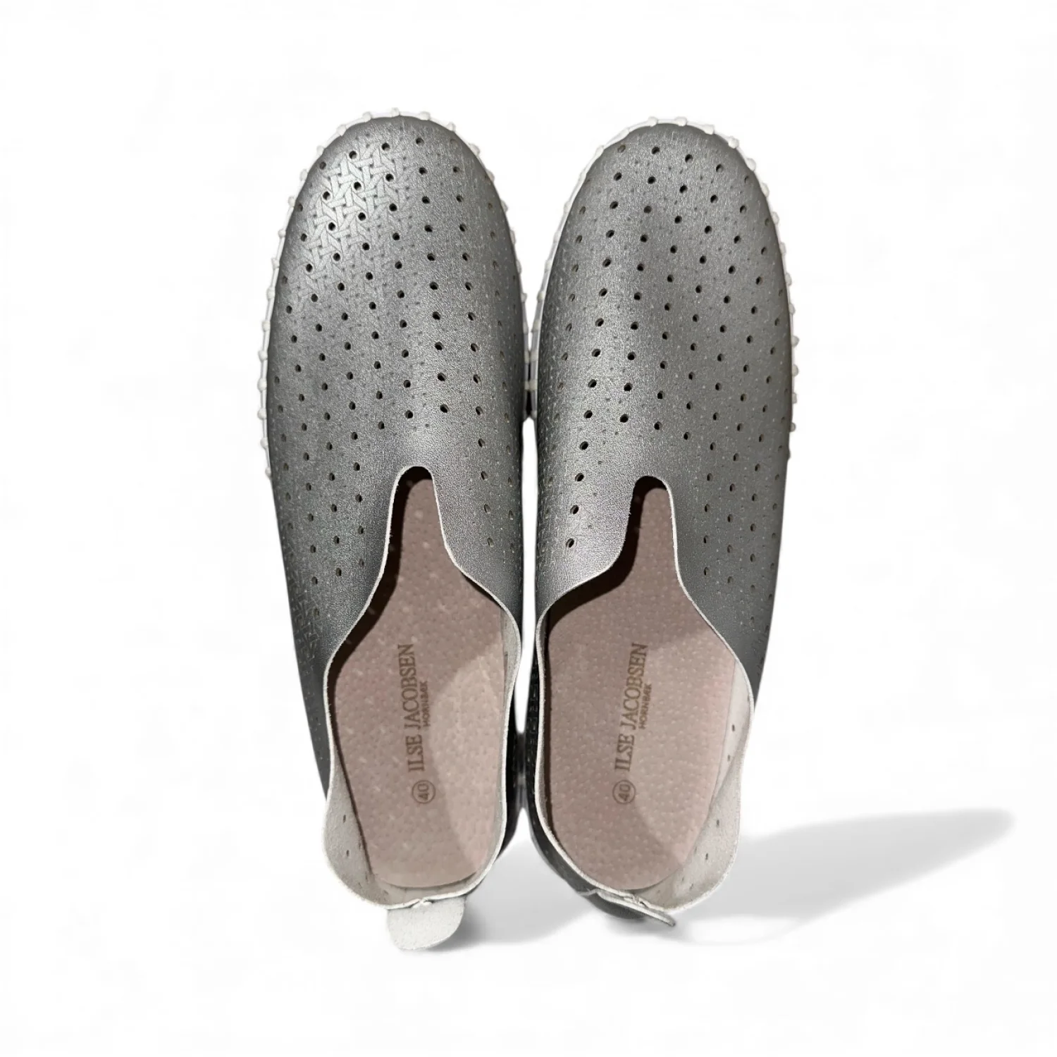 NWOB ILSE JACOBSEN Tulip Perforated Slip-On Metallic Silver EU 40/US 9.5-10