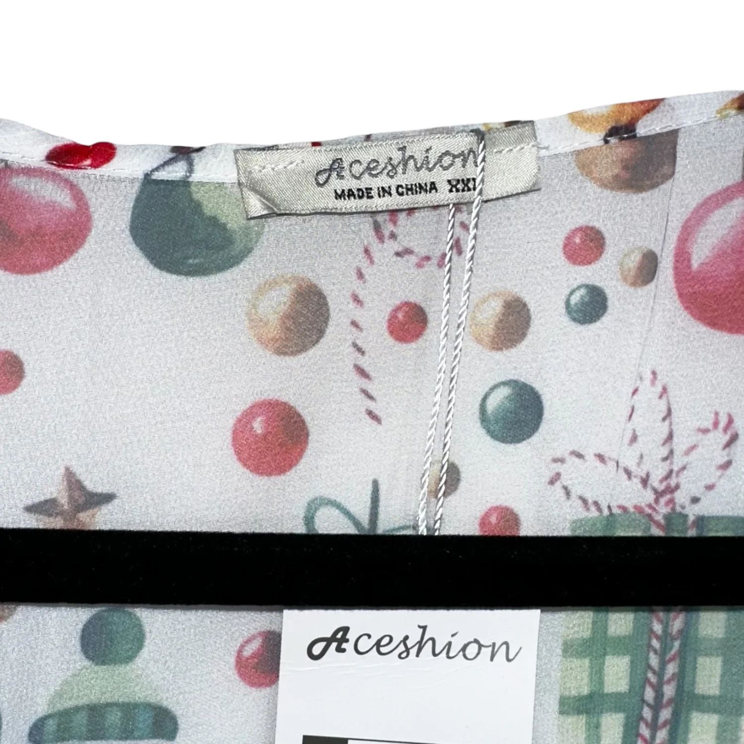 NWT ACESHIONS White Sheer Christmas Kimono - XXL