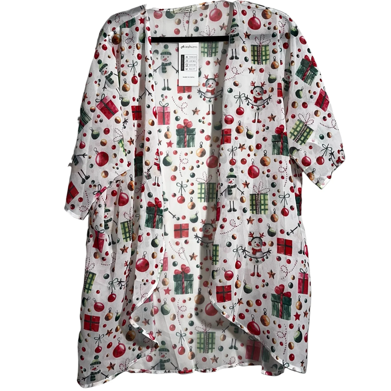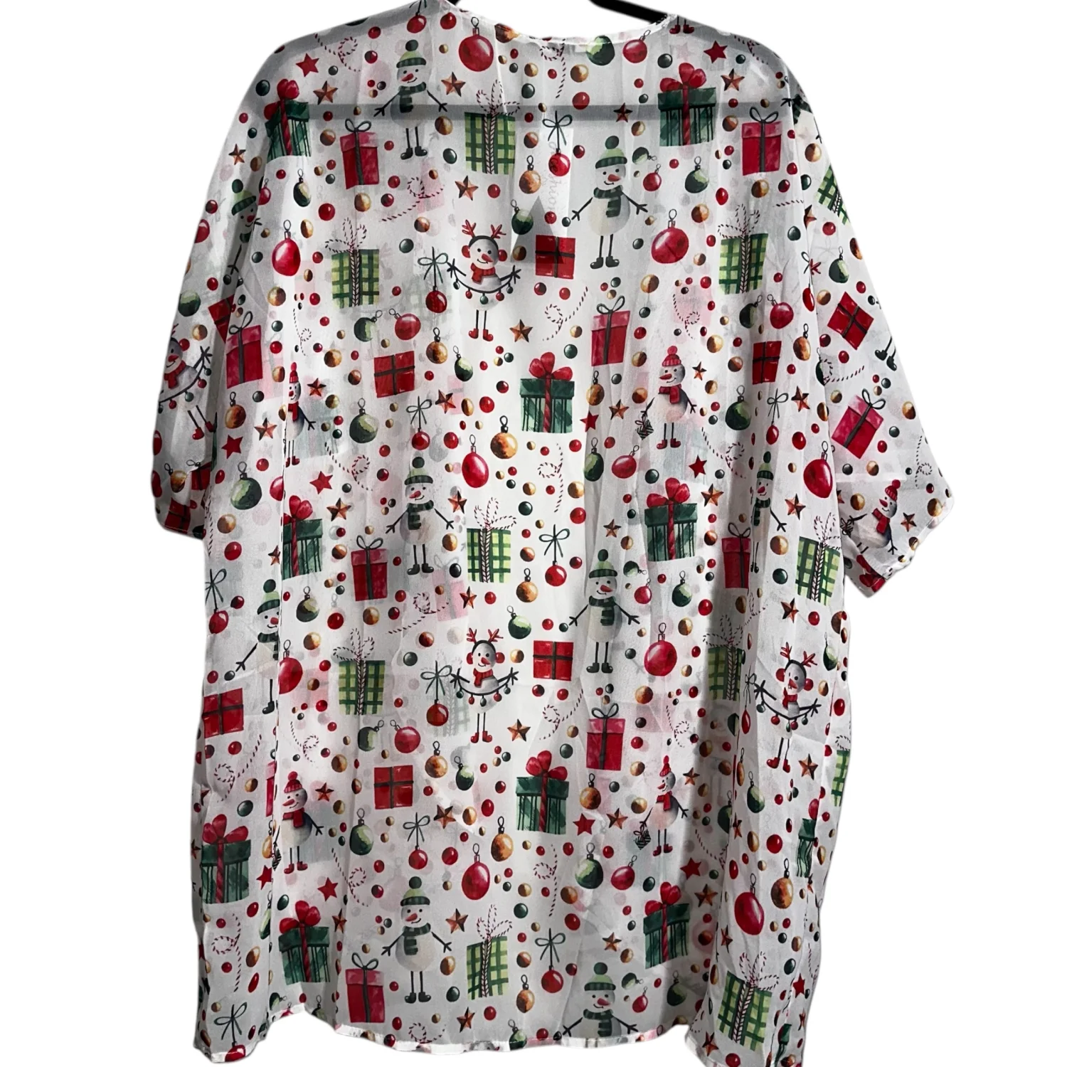 Adorable white sheer open-front kimono featuring a Christmas design. Size XXL. New with tags.