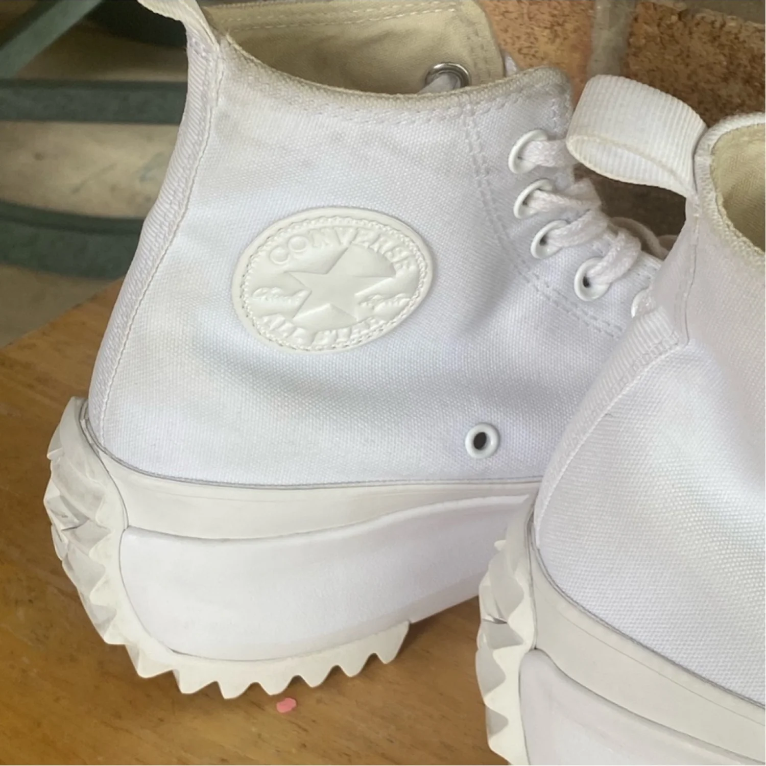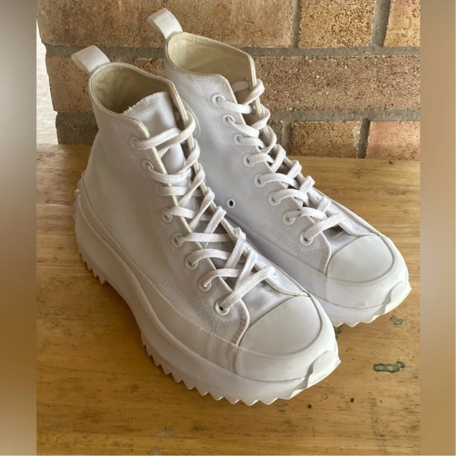 Converse Run Star Hike All White Monochrome High Top Shoes Women’s 9 Men’s 7.5. Great condition! Worn once. I little dirty at ankle, nothing major. See all pics. Canvas upper and rubber sole, cushioned removable insole. Step up your sneaker game with these bold Converse Run Star Hike Platform High Tops in crisp white. A modern reimagination of the classic Chuck Taylor, this pair combines heritage style with edgy streetwear vibes. Designed with a sturdy canvas upper, cushioned platform midsole, and the signature jagged rubber outsole, these sneakers deliver both comfort and standout style. Perfect for everyday wear, casual street looks, or adding height with a fashionable twist. Non smoking home 0707090912290423 2lbs #Activewear, #Athleisure, #Performance, #Breathable, #Lightweight, #Moisture-wicking, #Comfortable, #Gym wear, #Casual, #sporty, #workout, #jogging, #running, #exercise, #leisure, #yoga, #weight training, #lifting, #school, #back to school, #unisex, #retro, #preppy, #preppie, #classic, #summer, #versatile, #neutral, #wardrobe essential, #closet staple, #casual, #sleek, #chic, #modern, #minimalist, ##clean, #effortless, #sophisticated, #chuck taylors