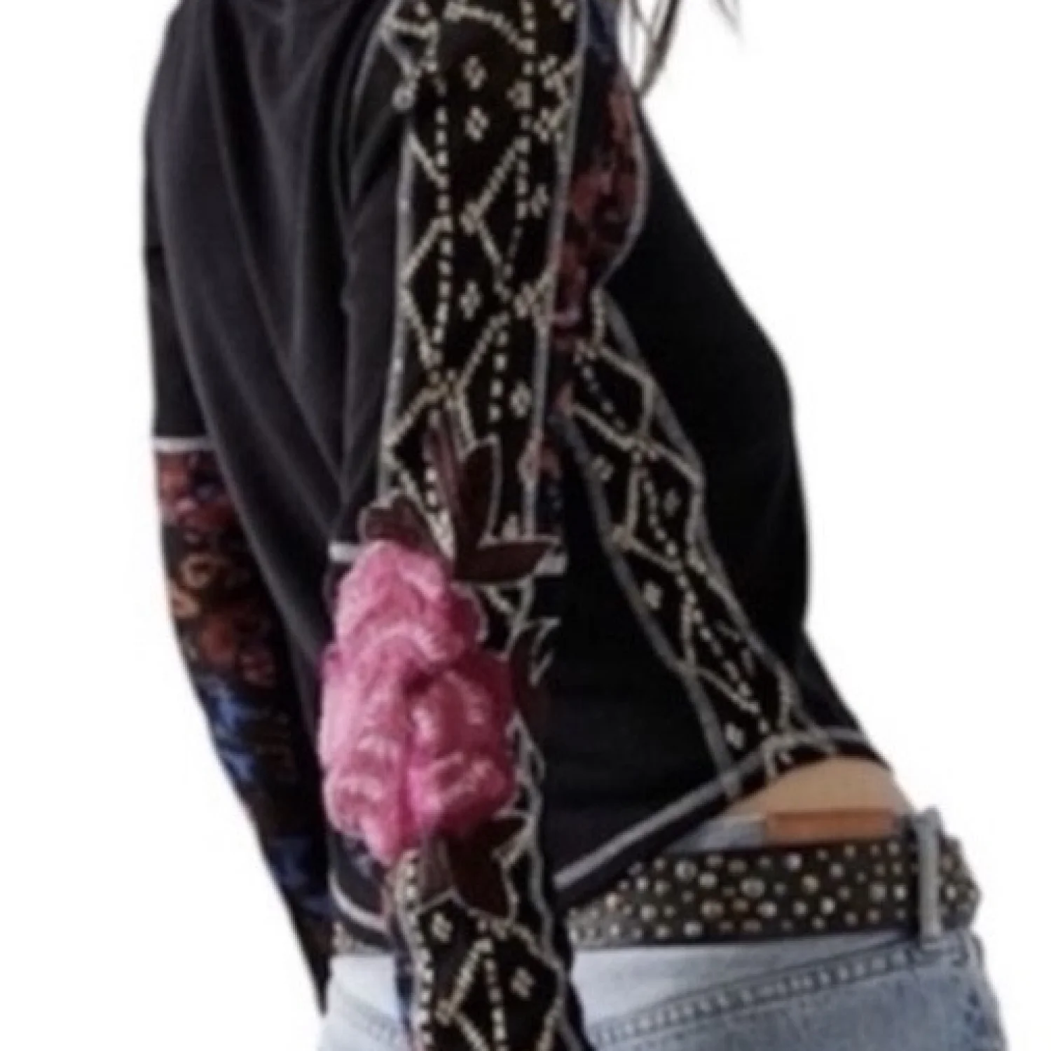 Free People Amara Black Embroidered Floral Gold Foil Sleeve Thermal Top XL. Great used condition! Cotton spandex blend. V-neckline, long sleeves, thermal texture. Pullover Free People Amara thermal top, featuring intricate floral embroidery and luxe gold foil detailing along the sleeves for a touch of shimmer. Designed in a versatile black colorway, this cozy yet lightweight waffle-knit thermal offers a relaxed fit that’s perfect for layering or wearing solo. The long sleeves and soft stretch fabric provide comfort and warmth, while the romantic, artisanal details bring a free-spirited, feminine vibe. Pair it with denim, skirts, or boots for an effortlessly chic, festival-ready look that transitions seamlessly from day to night. Bust 40” Hem 39” Length 24” Non smoking home 01210423 9oz D05 , boho chic top, waffle knit thermal,festival fashion, romantic style, vintage inspired, cozy casual, fall fashion, artisan aesthetic, modern bohemian, statement sleeve, boutique style, feminine fashion, free spirited vibe, whimsigoth, cottagecore edge, celestial vibes, moonchild style, indie aesthetic, soft grunge, poetic style, heirloom look, textured fabric, luxe casual, elevated basics, transitional seasons, cozy core, fashion forward, style staple, everyday essential, date night outfit, brunch look, travel outfit, weekend wear, neutral palette, romantic casual, subtle shimmer, bohemian luxe, vintage boho, statement top, boutique find, influencer style, Pinterest fashion