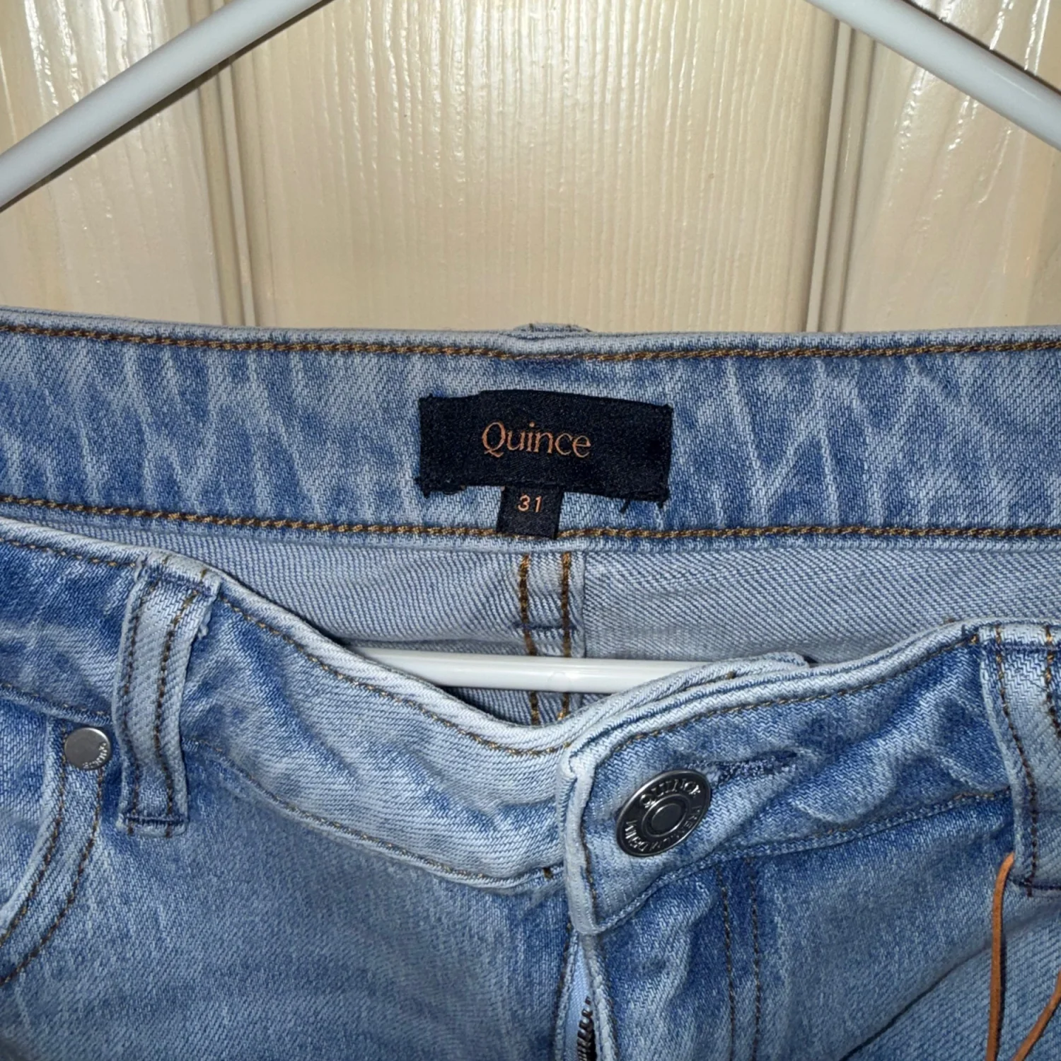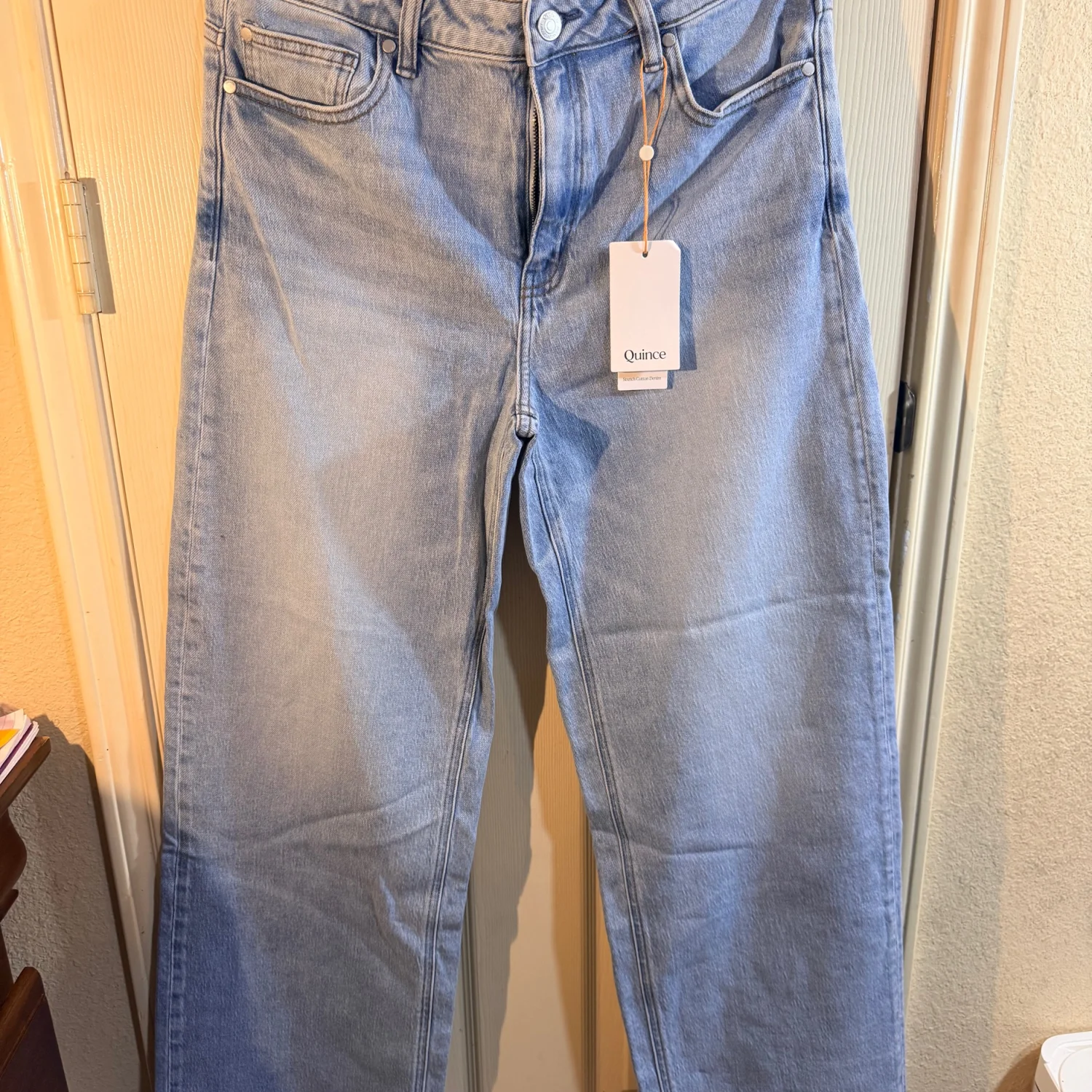 These Quince light blue wide-leg jeans feature a classic five-pocket design and a comfortable fit. They're brand new with tags, perfect for a casual day out. Made from durable denim fabric. Tags: #Quince #Denim #Casual #StraightLeg