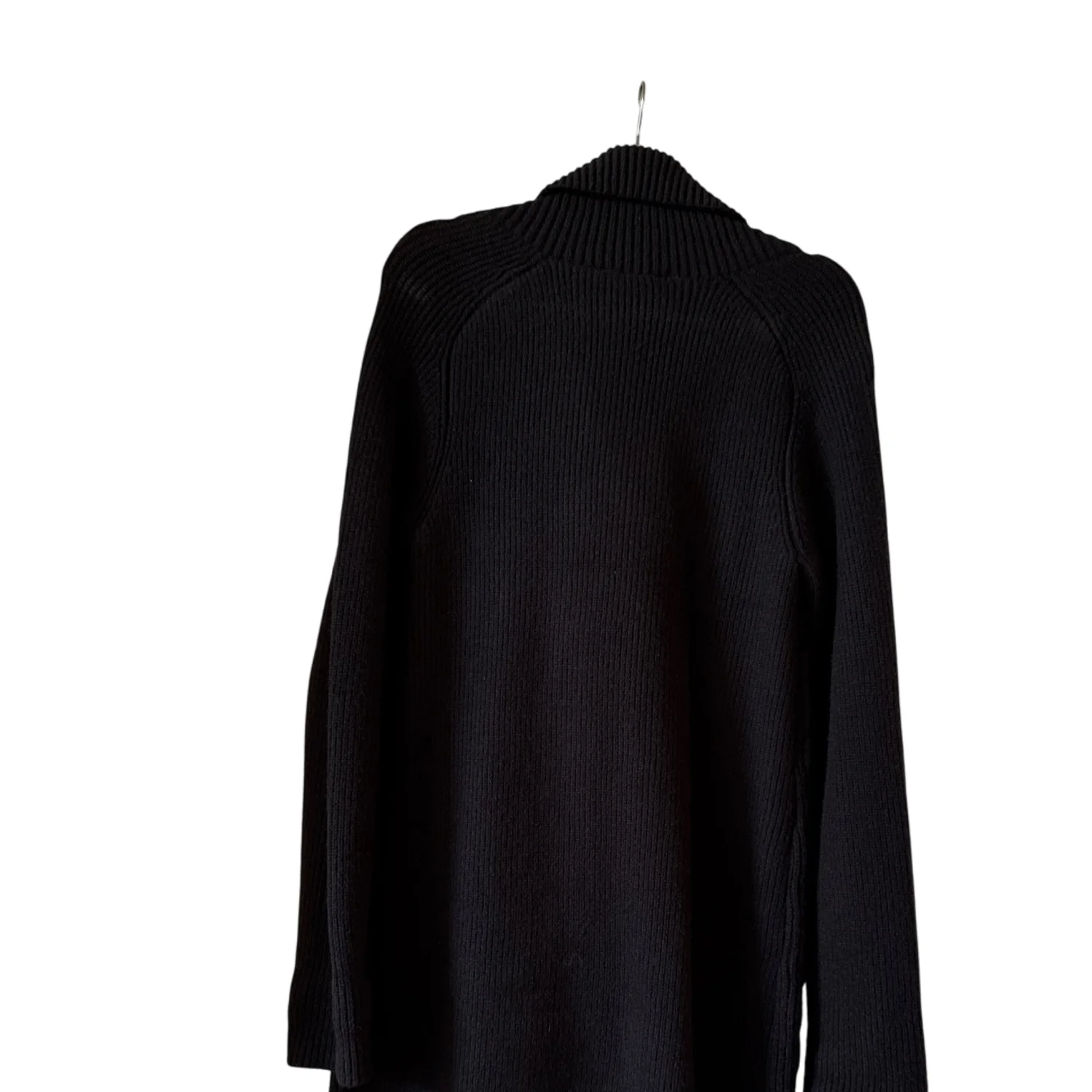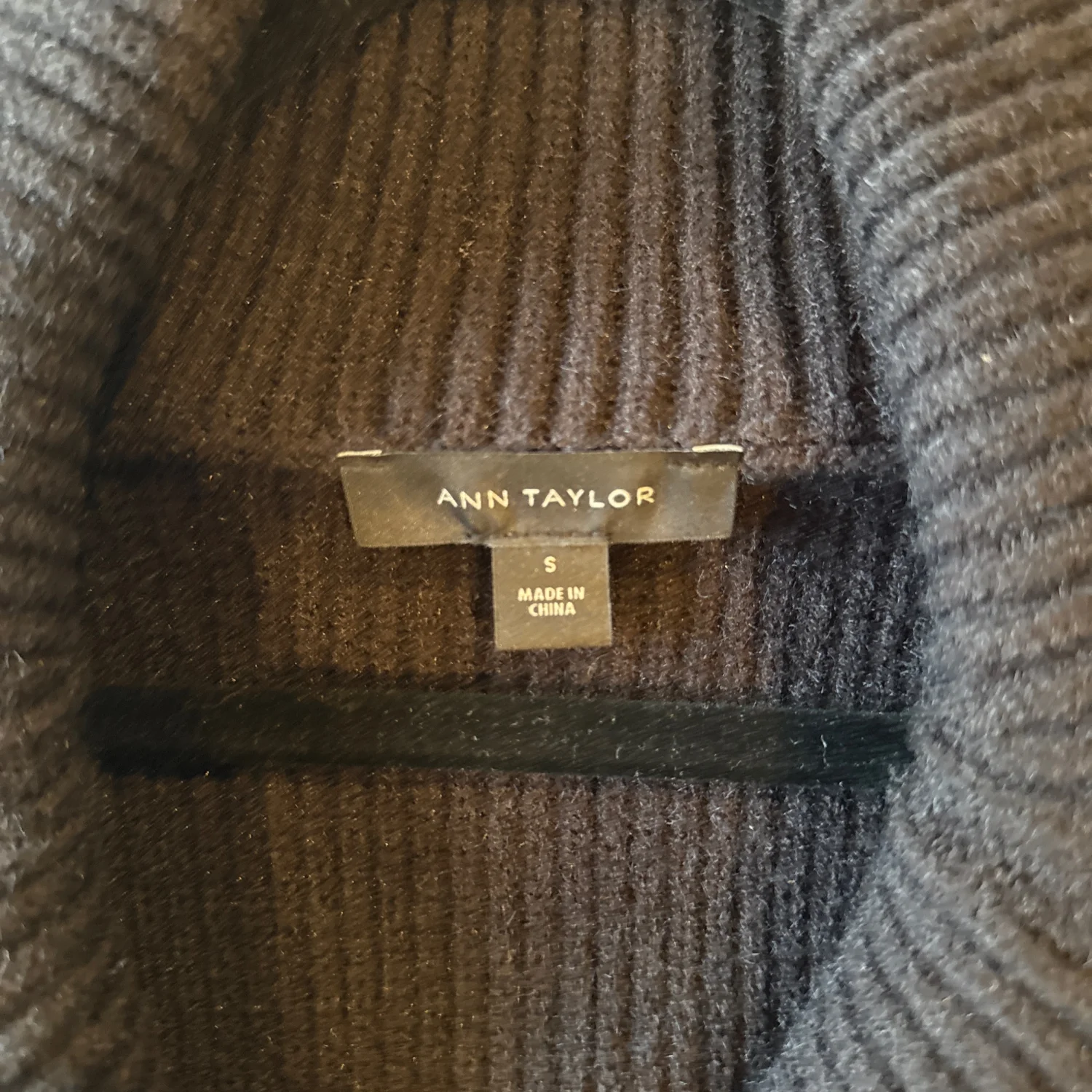 This Ann Taylor black knit cardigan coat features a double-breasted design with cable-knit detailing and pockets. Made from a comfortable fabric blend, it's perfect for layering in cooler weather. Size S, this cardigan offers a tailored, stylish fit. Ideal for both casual and formal settings. #AnnTaylor #Cardigan #Knitwear