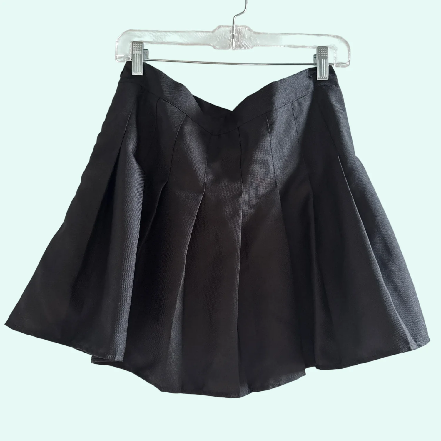 This stylish black skater skort features a flattering pleated design. Crafted from 100% polyester, it provides a comfortable fit perfect for casual outings, or a night out. The skort is tagged as size L (155/72A). It's an essential piece for versatile styling. #skirt #pleated #black #fashion