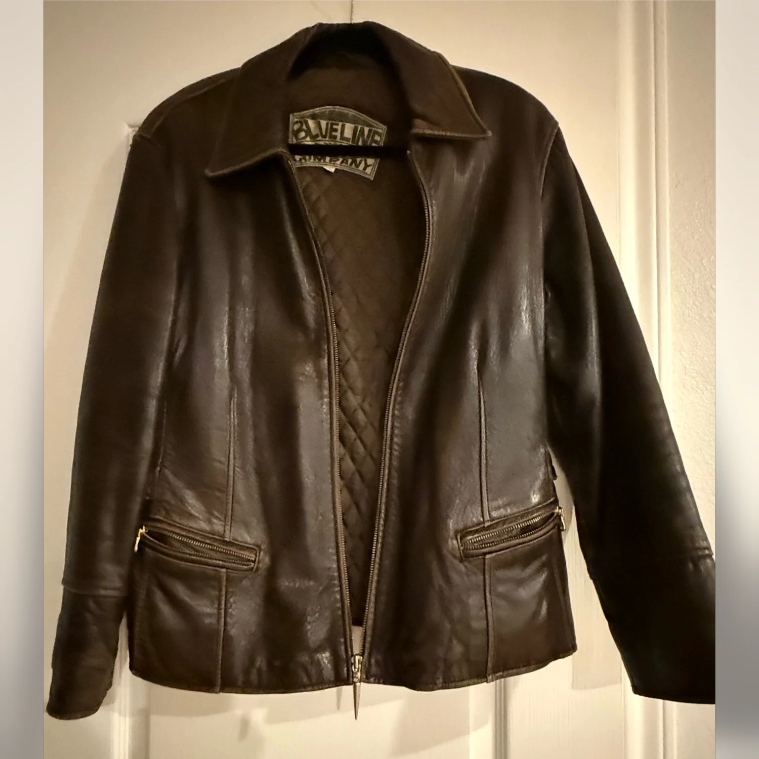 Vintage leather jacket. Soft buttery leather. Quilted lining. Unfortunately the zipper doesn’t work, but looks great open. Being sold AS IS.