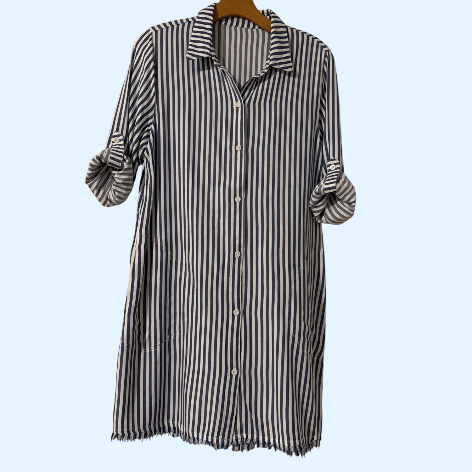 Tommy Bahama women's striped shirt with long sleeves and a button-up front. The shirt appears to be in excellent condition.