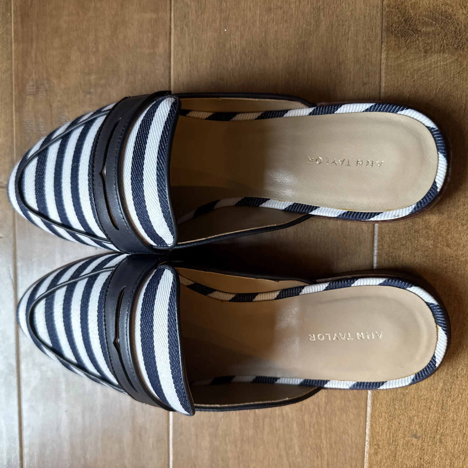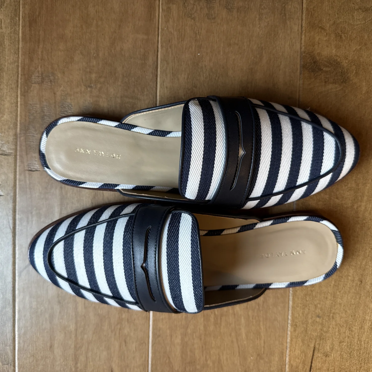 Brand New Ann Taylor striped loafer slides. Preppy and chic!