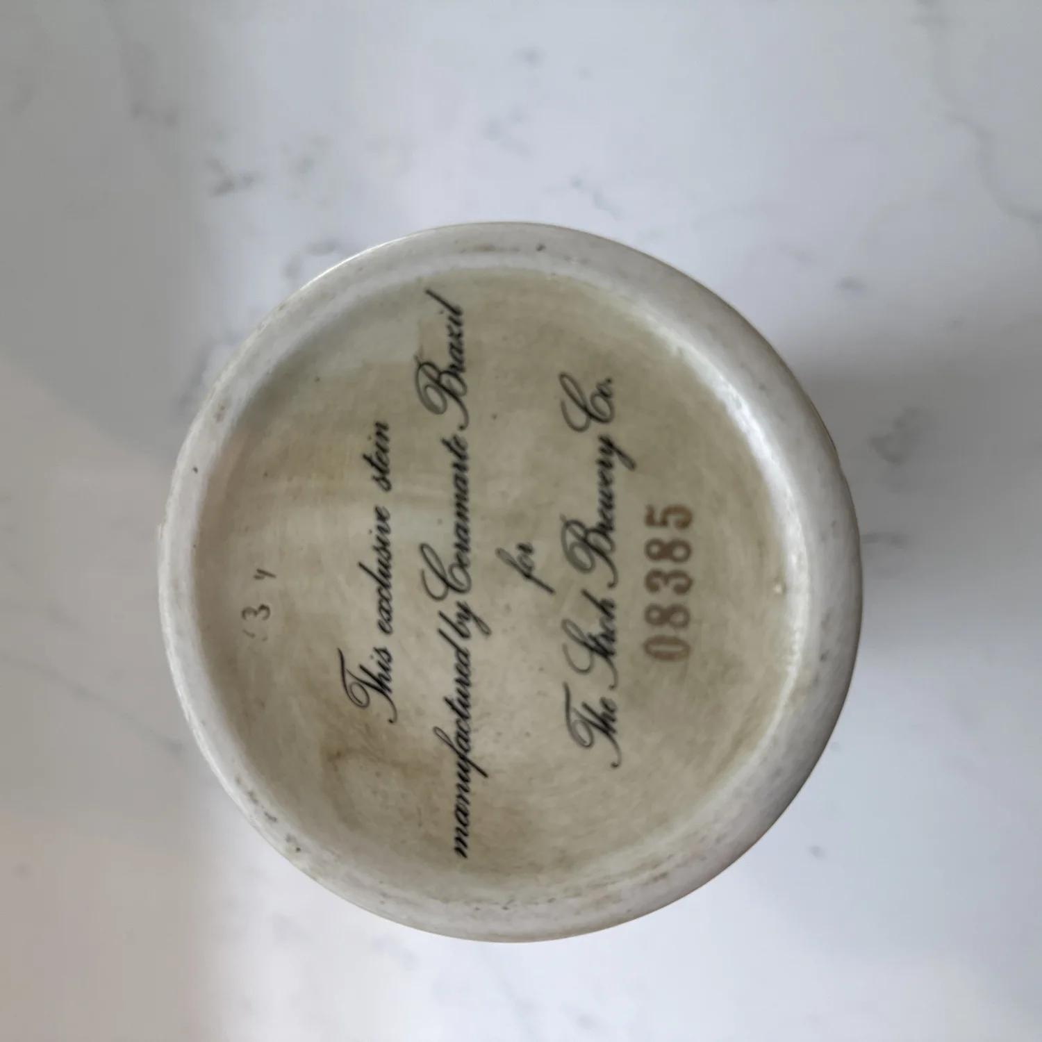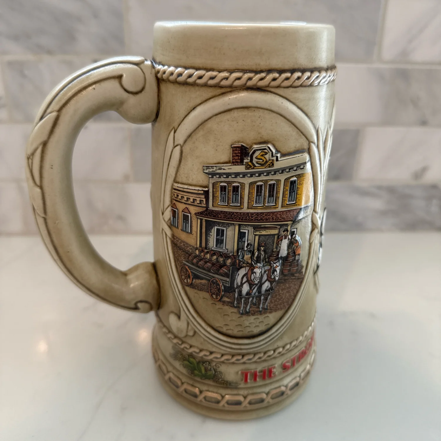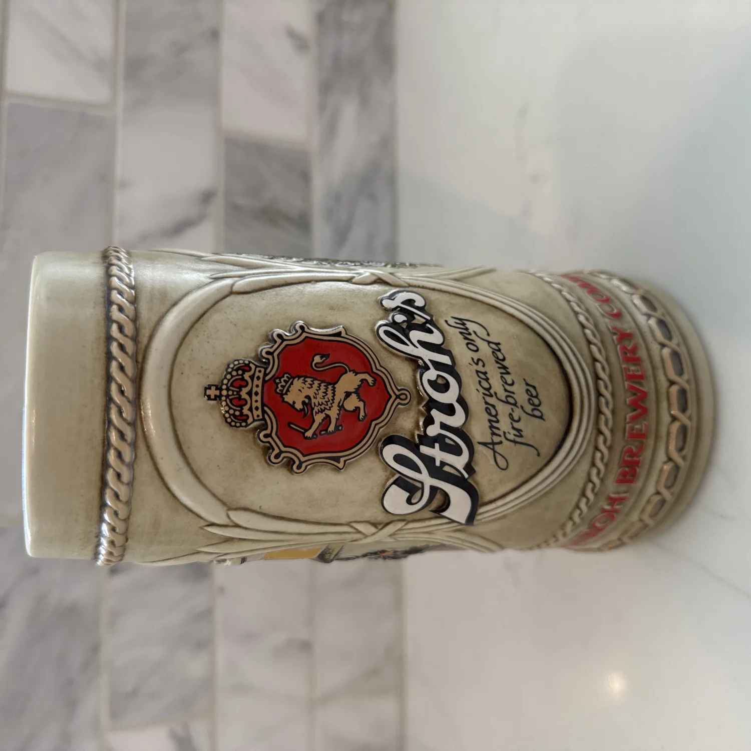 Stroh's beer stein, a collectible mug, produced by Ceramarte in Brazil for the Stroh Brewery Company.