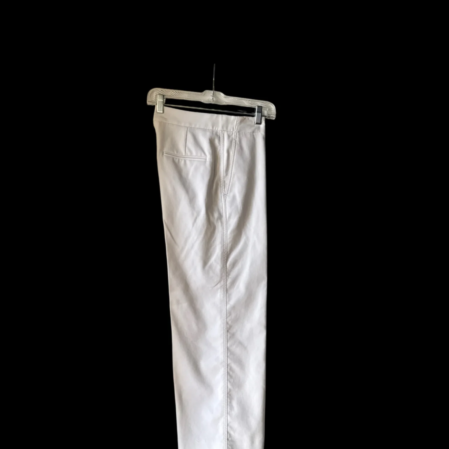 Beautiful white ankle crop pants from Ann Taylor offer a sleek and elegant look. Made from a comfortable fabric, they are perfect for both casual and formal wear. The pants feature a concealed hook and bar closure, zip fly, and side pockets. They are in excellent condition with minimal signs of wear. #AnnTaylor #WhitePants #CasualWear