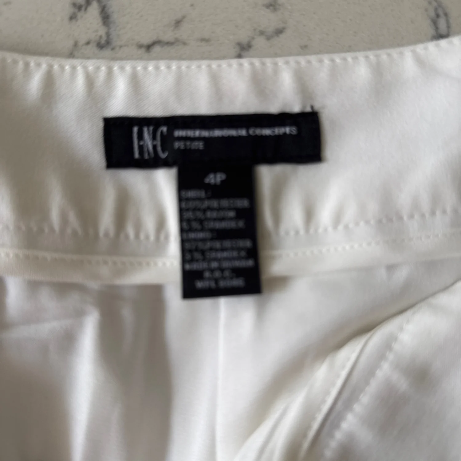 Elegant white dress pants by INC International Concepts. Features a sleek design with a secure button closure and a comfortable fit. Perfect for professional or semi-formal occasions. These pants are labeled as size 4P Low rise and are made from quality materials for a smooth finish. #dresspants #white #officewear