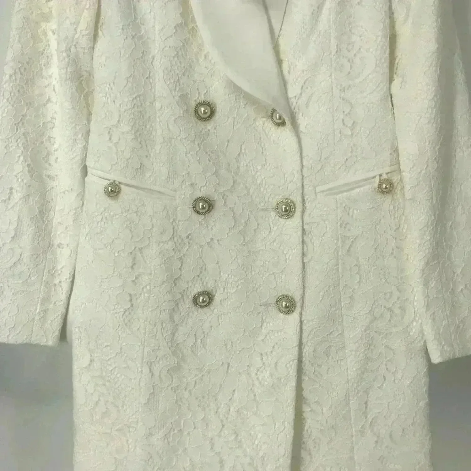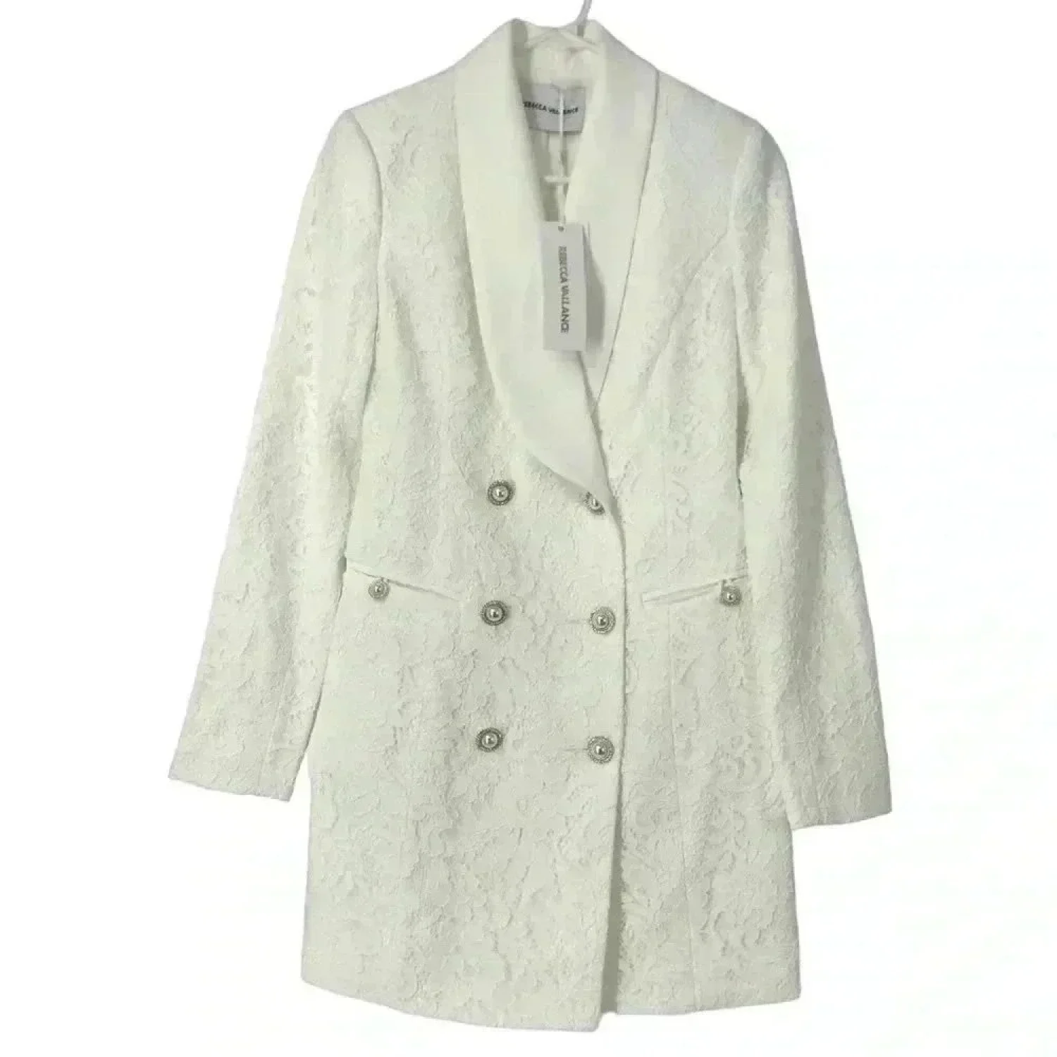 Modern bridal chic ✨ The Rebecca Vallance Harriet Blazer Mini Dress features ivory floral lace, a tailored double-breasted front, and signature pearl-detailed buttons. A perfect choice for courthouse weddings, receptions, rehearsal dinners, bridal showers, or engagement photos. Details: • Size: Women’s 4 (true to size) • Color: Ivory • Style: Lace blazer mini dress • Features: Shawl collar, pearl buttons, lace overlay, structured fit • Fabric: 70% Nylon / 30% Cotton • Lining: 97% Polyester / 3% Spandex • Condition: NWT – new with tags • Retail: $752 A rare, high-fashion bridal mini that photographs beautifully and sells out across retailers. Ships next day ✅ Smoke-free, pet-free home ✅ #RebeccaVallance #HarrietDress #IvoryMiniDress #BridalMiniDress #WeddingDressAlternative #CourthouseBride #ReceptionDress #BridalShowerDress #EngagementDress #BlazerDress #LaceMiniDress #DesignerDress #NWTDress #BridalFashion #ModernBride #PearlButtons #WhiteDress #WeddingOutfit #BridalLook #IvoryLaceDress • ivory lace blazer mini dress • modern bridal mini dress • courthouse wedding outfit • Rebecca Vallance white dress • structured blazer style dress • bridal reception mini dress • pearl button blazer dress • elegant ivory cocktail dress • rehearsal dinner dress idea • bridal shower dress lace • engagement photo outfit white
