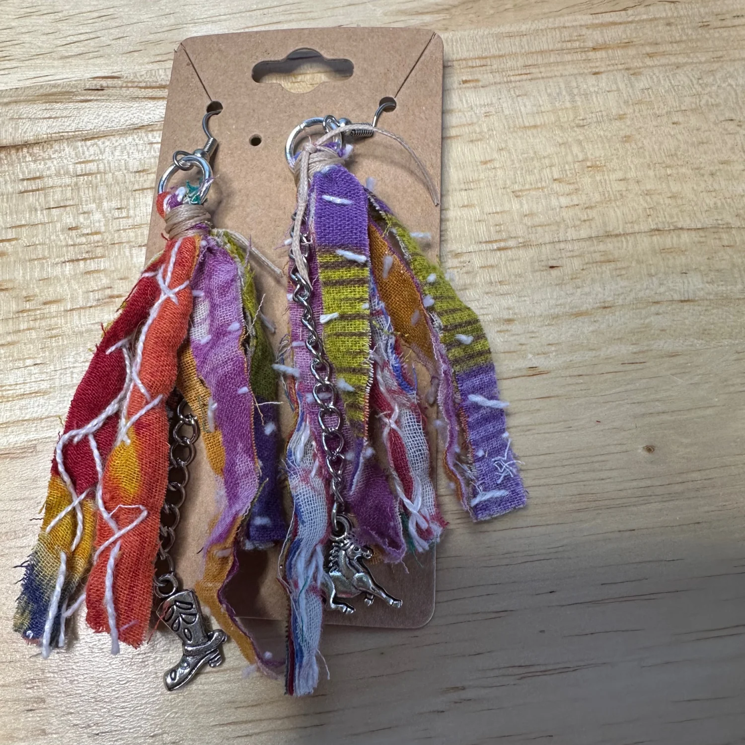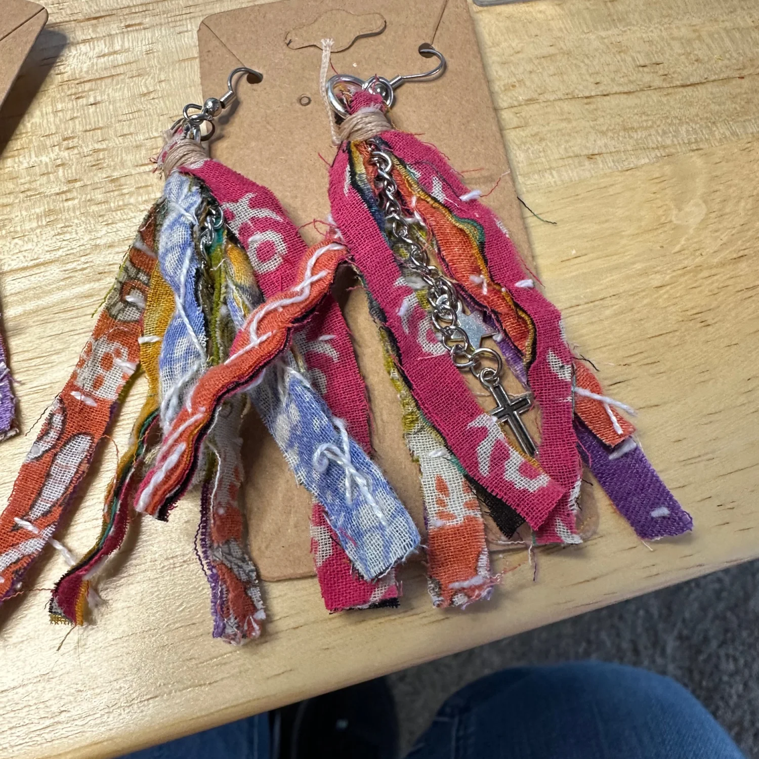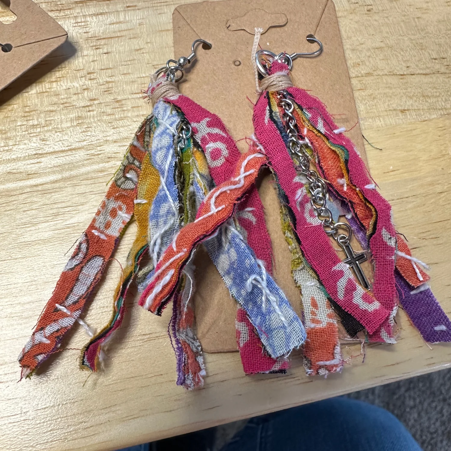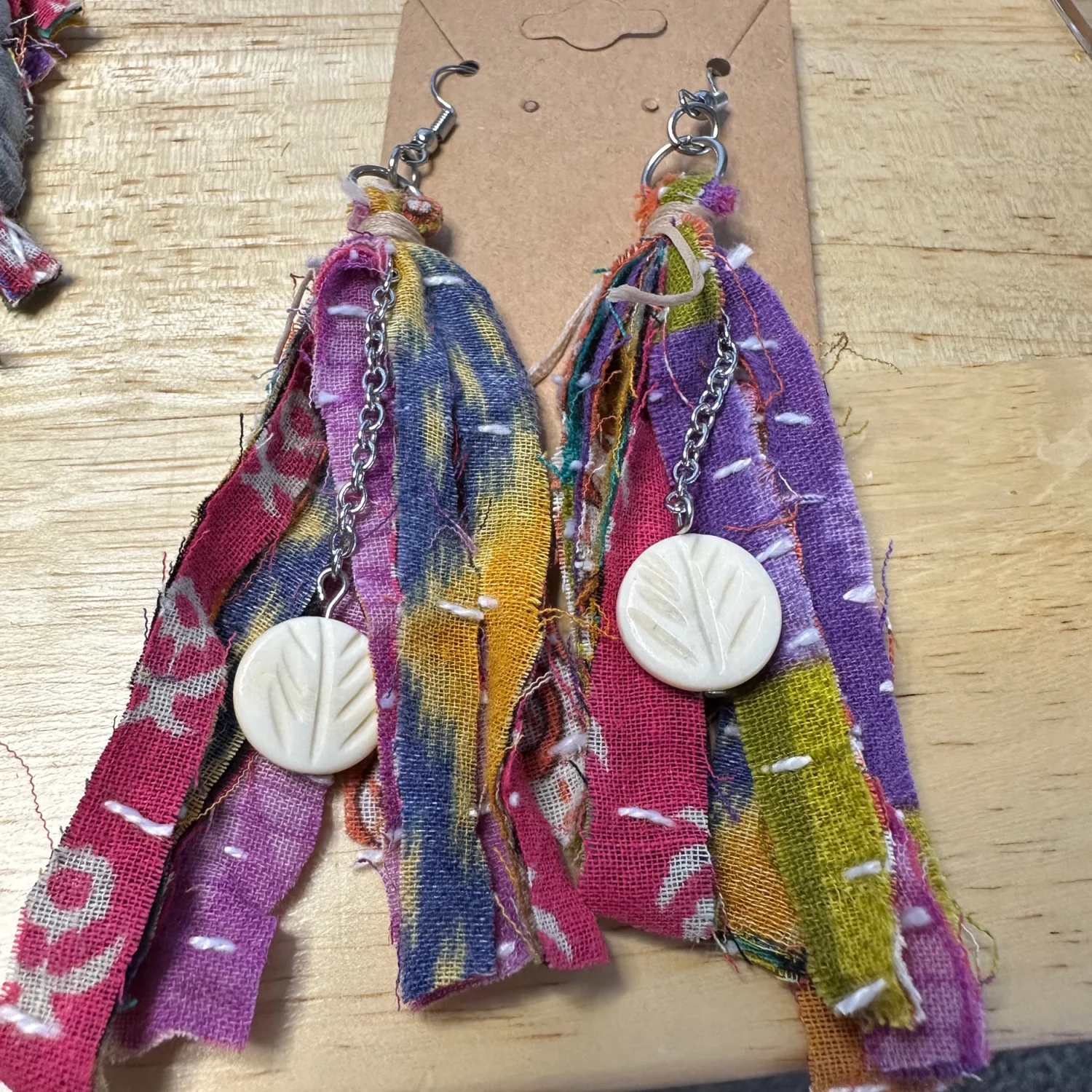 These one of a kind earrings are Mae from kantha strips. Some have beads or charms and some are plain. Listing is for 1 pair.