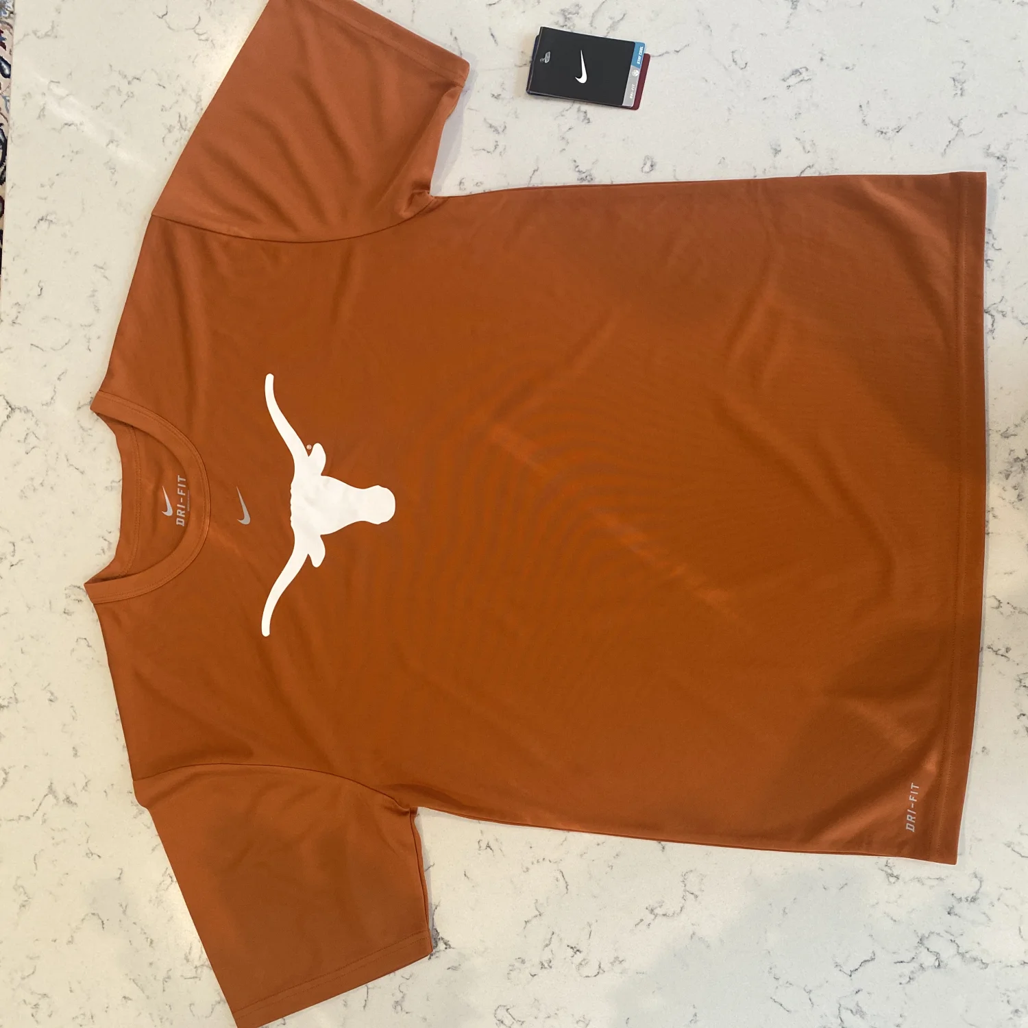 A Nike men's t-shirt with a white bull logo on the front. The shirt is made of a lightweight, breathable fabric and features a round neckline and short sleeves. It is designed to be comfortable and durable, making it suitable for everyday wear or athletic activities.